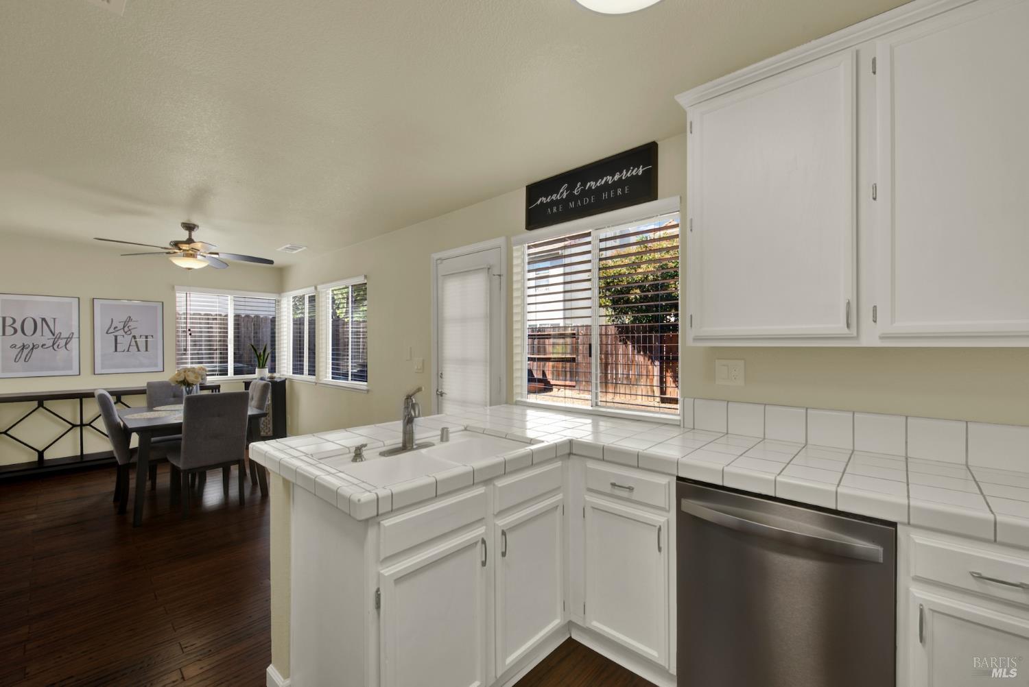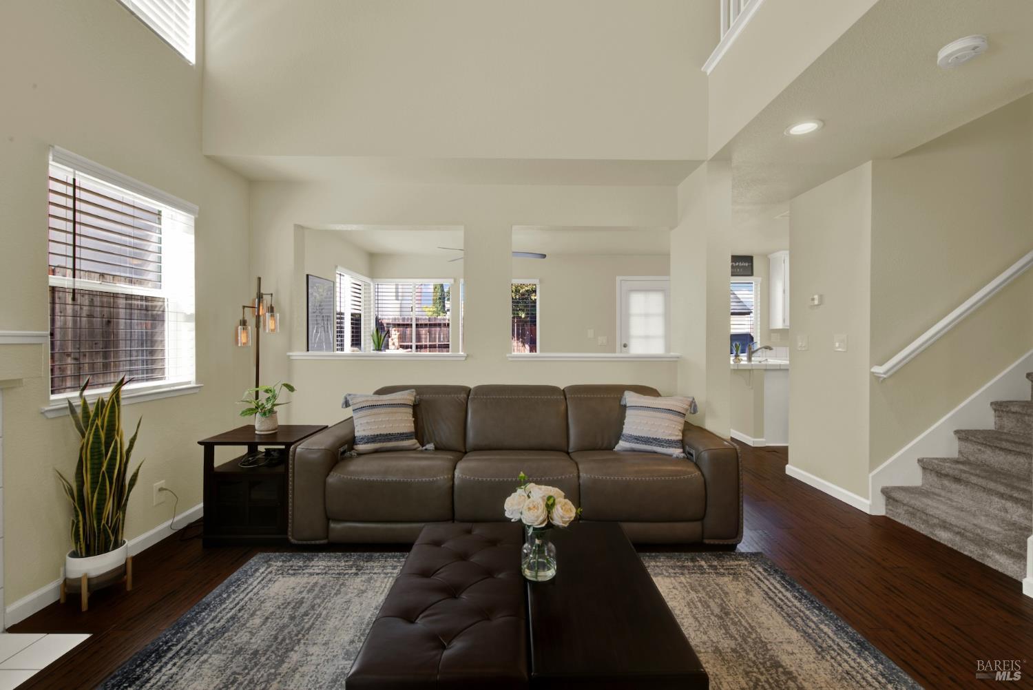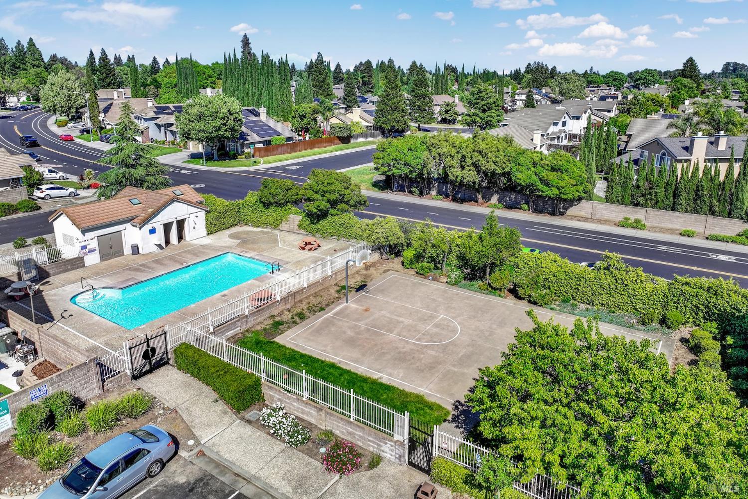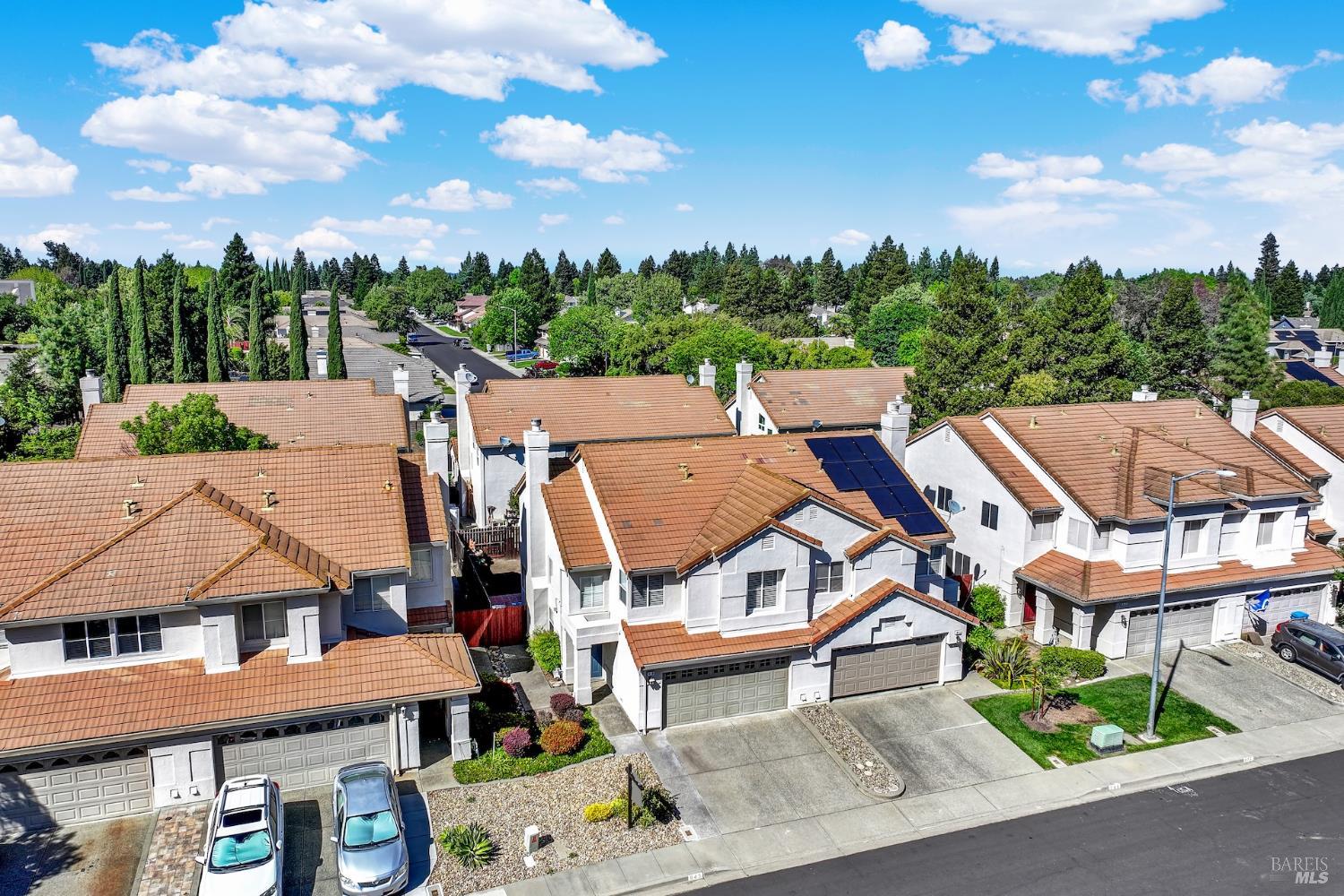 Move right into this absolutely delightful home filled with an abundance of natural light and high ceilings. This desirable attached single-family residence is part of a homeowner-run HOA, offering a welcoming community feel. Enjoy 3 bedrooms, along with a cozy living room featuring a fireplace, updated wood flooring, and soaring cathedral ceilings. The bright kitchen is equipped with a gas range, microwave, and dishwasher, and opens to a spacious area perfect for a dining room or a family room. There is also a half bath perfect for visitors. Upstairs, the primary suite offers generous closet spaces and a private bath, while two additional bedrooms and a full bathroom provide plenty of room for family or guests. You will love the open airy space. In the garage you'll find a well organized space perfect for all the gadgets and a Tesla wall charger/adapter already installed and ready to go! Step outside to a private yard with a shed, ideal for BBQs and entertaining. Enjoy the nice community pool or basketball court on the warm summer days. The HOA takes care of your front yard work and the roof, and wonderful benefit of this unique community. Conveniently located near shopping, desirable schools, and freeway access, this home truly has it all.