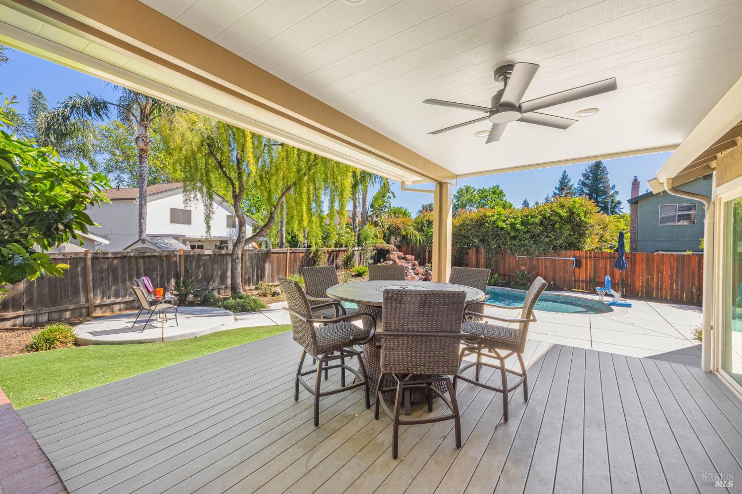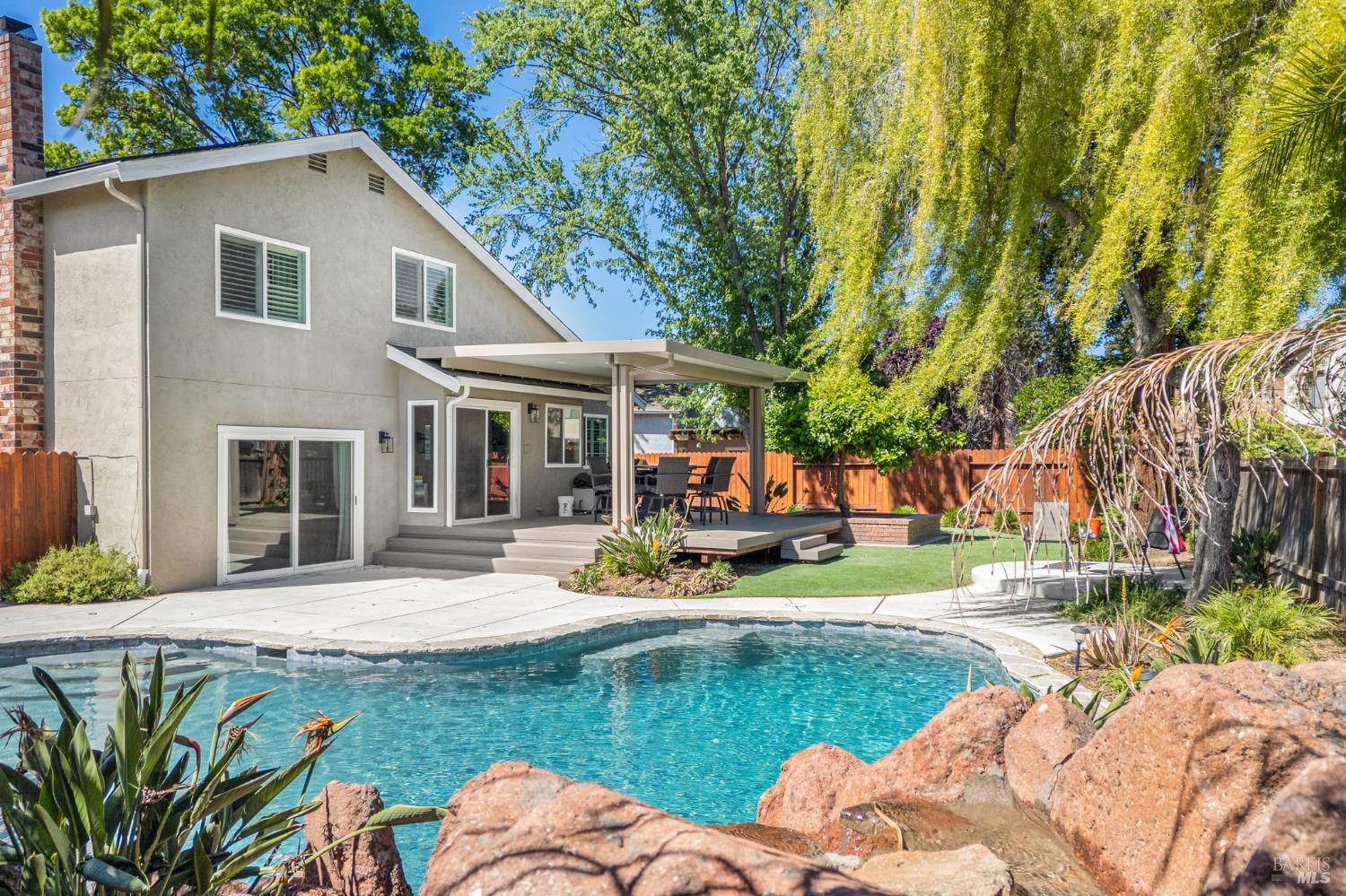 Step inside this beautiful 4-bedroom, 3-bath home and immediately feel the perfect blend of space, style, and upgrades. The formal living room, family room, and versatile loft give everyone space to spread out. The remodeled kitchen, updated flooring, and plantation shutters add style and function, while thoughtful upgrades including solar for the home and pool, a water heater, and updated interior doors make everyday living effortless and efficient. Tucked at the back of a court on almost a quarter-acre lot, the backyard is pure paradise. The fully reimagined outdoor space features a remodeled pool, synthetic lawn, new concrete, and updated irrigation. A raised deck and covered patio provide the ultimate setting for entertaining or relaxing in style year-round. This turnkey home is packed with 'WOW' factor and is the NextHome you've been dreaming of.