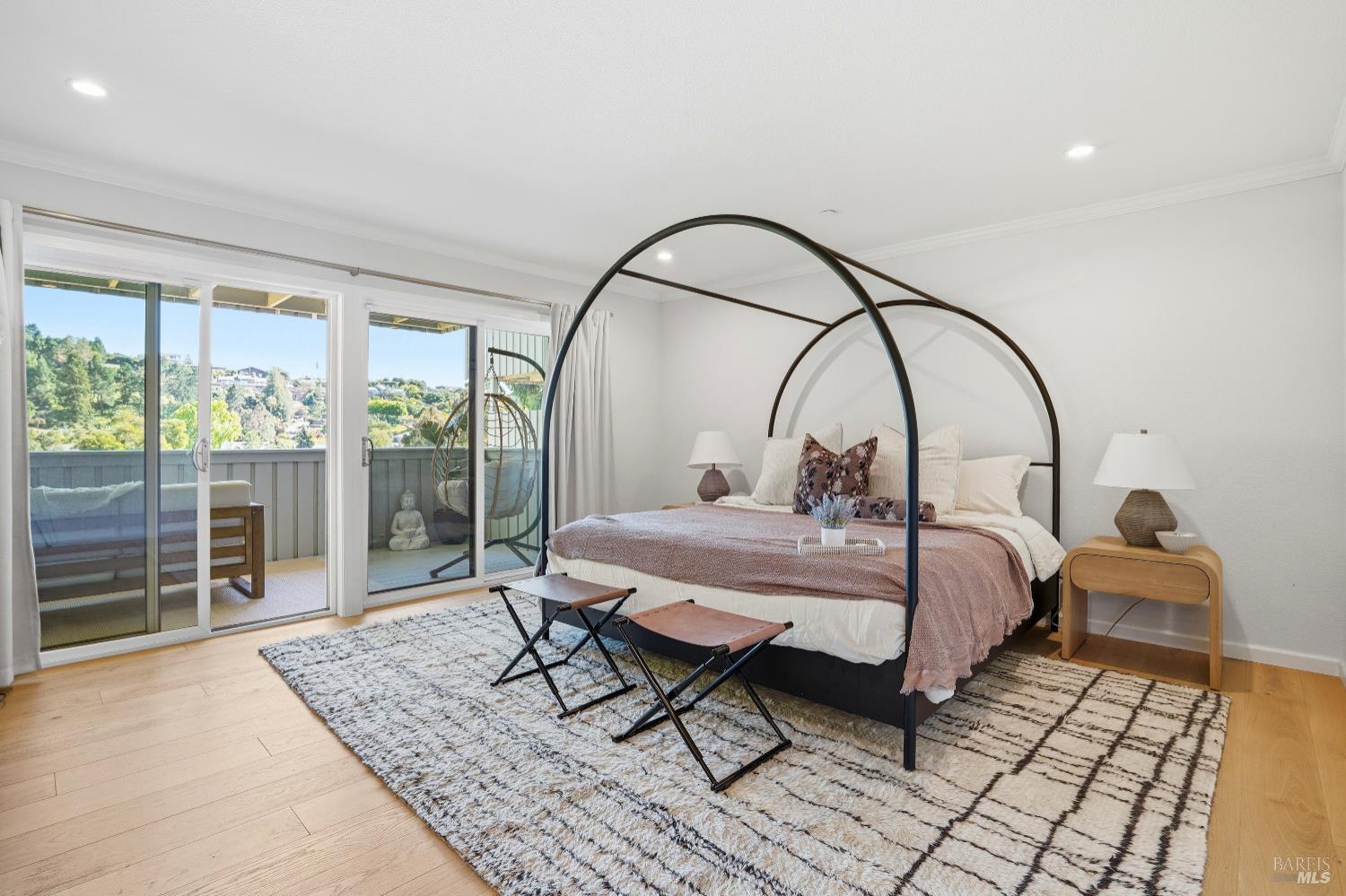 LIGHT, BRIGHT and delightful throughout. Excellent floor plan with designer worthy upgrades! Enjoy fantastic views and abundant natural light in this beautiful home. The open‑concept living and dining area flows seamlessly to a private large view deck perfect for relaxing and entertaining. A well‑designed kitchen with custom cabinetry and generous counter space complete the main level, along with two spacious bedrooms and a stylish full bath room. Downstairs, the spacious primary suite offers true retreat living with a built-in vanity, a walk‑in closet, a spa‑inspired bath, and its own spacious view deck. 2-car garage, and abundant closet/storage space. HIGHLIGHTS: Floor to ceiling windows offer exceptional views, dual-pane sliders throughout, terrific indoor-outdoor flow, over-sized decks on both levels, hardwood floors throughout, high-end Bosch appliances. A+ locations just minutes from Peacock Gap's golf course, McNear's State Park with outdoor pool, China Camp State Park, amazing trails, Loch Lomond Marina & Andy's Market. and Marin's natural beauty!!