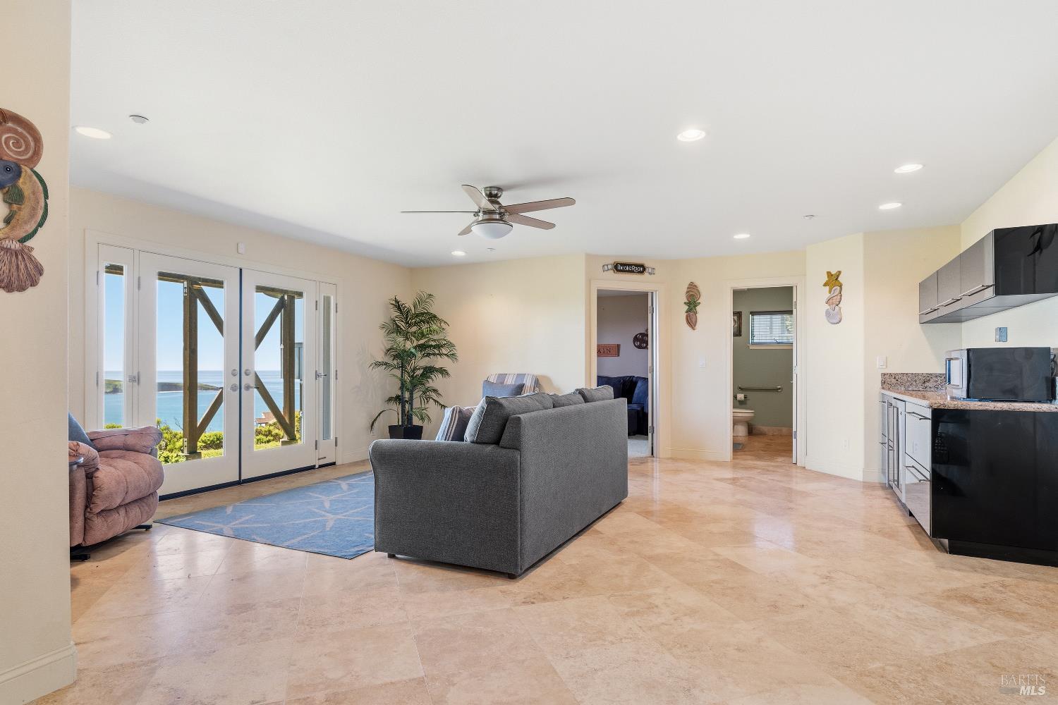 Stunning luxury beach home with sweeping views of Dillon Beach, Tomales Bay, Point Reyes, and the Pacific Ocean. This beautifully designed residence features an open-concept floor plan filled with natural light and breathtaking coastal and wide-open ocean views. The gourmet kitchen is a true showpiece, complemented by high-end appliances. Enjoy main-level living, with a spacious primary suite with panoramic views, a fireplace, a walk-in closet, and a spa-inspired bath. The lower level offers a private guest suite with a full bath and sauna, a media room, and a generous secondary living space with a wet barperfect for entertainingplus an additional storage room for beach gear and more. Radiant heated floors add comfort and sophistication throughout. Step outside to expansive decks designed for entertaining, where the views are simply unforgettable. Complete with a two-car garage, this exceptional home is a rare offering in Dillon Beach.