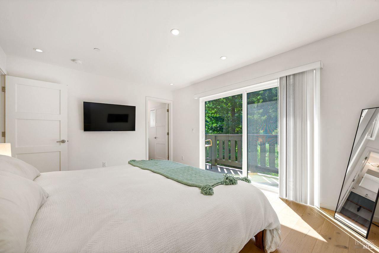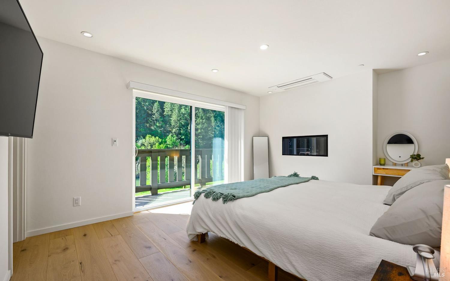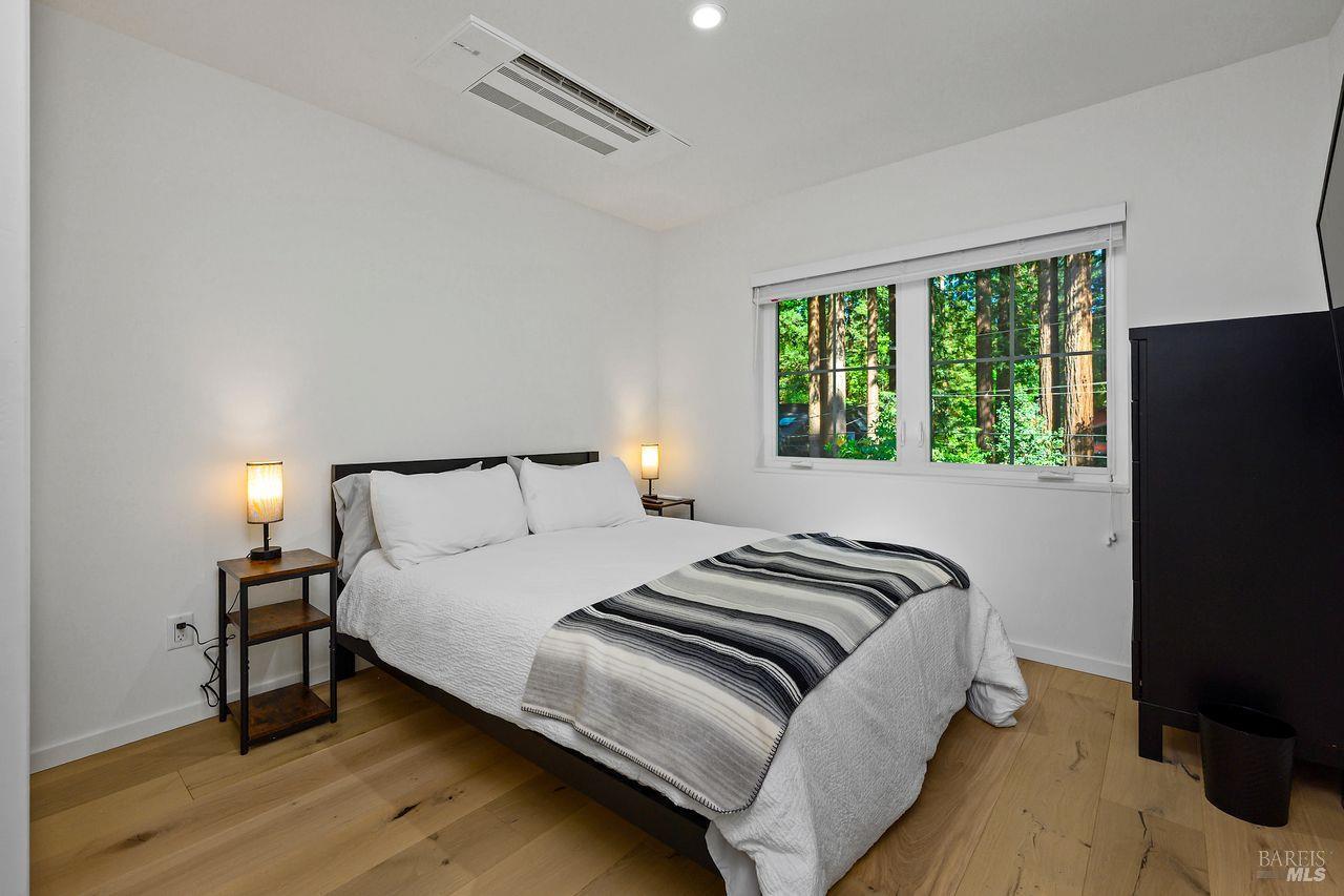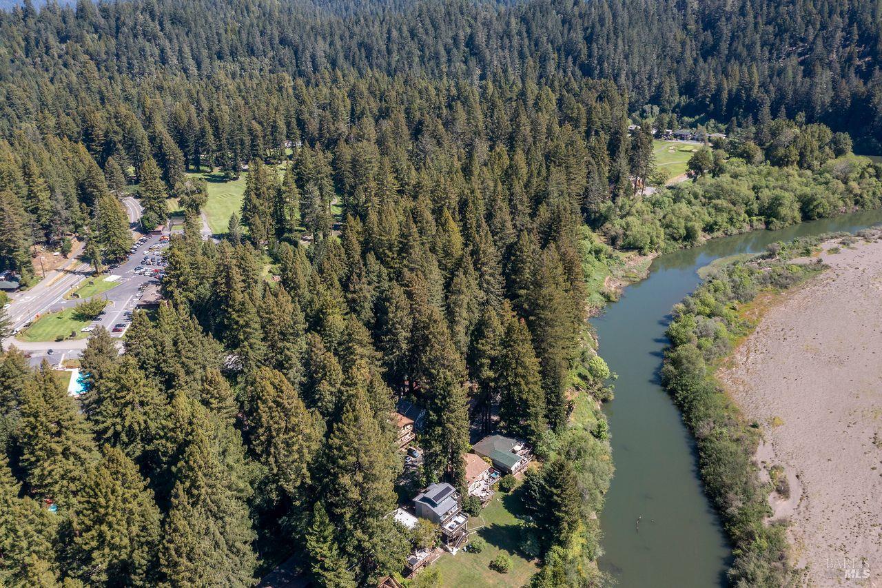 Modern Riverfront Sanctuary. Experience the pinnacle of riverfront living in this stunning, fully electric architectural masterpiece completed in 2023. Perched above the 100-year flood level, this two-bedroom, 2.5-bathroom home blends cutting-edge resilience with sophisticated design. The entire home is light filled. Large sliders and Walls of windows invite the beauty of the Russian River indoors. Enjoy hardwood floors throughout, custom tile work, mesmerizing water vapor fireplace and a sleek wet bar with a wine fridge. A perfect set up for entertaining. The primary suite features a private deck with River views and a walk-in closet. Ascend to the third-story loft, complete with a Juliet balcony offering unmatched views of the water. The living area opens to the ultimate outdoor oasis with large expansive attached deck. Enjoy the steaming hot tub while taking in the serene river atmosphere. Additional features include an EV charging station in the garage, steel frame and a grid concrete pier foundation, a Ring alarm system, exterior cameras, and an interior fire sprinkler system. Offered turnkey and fully furnished