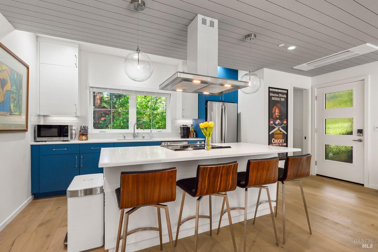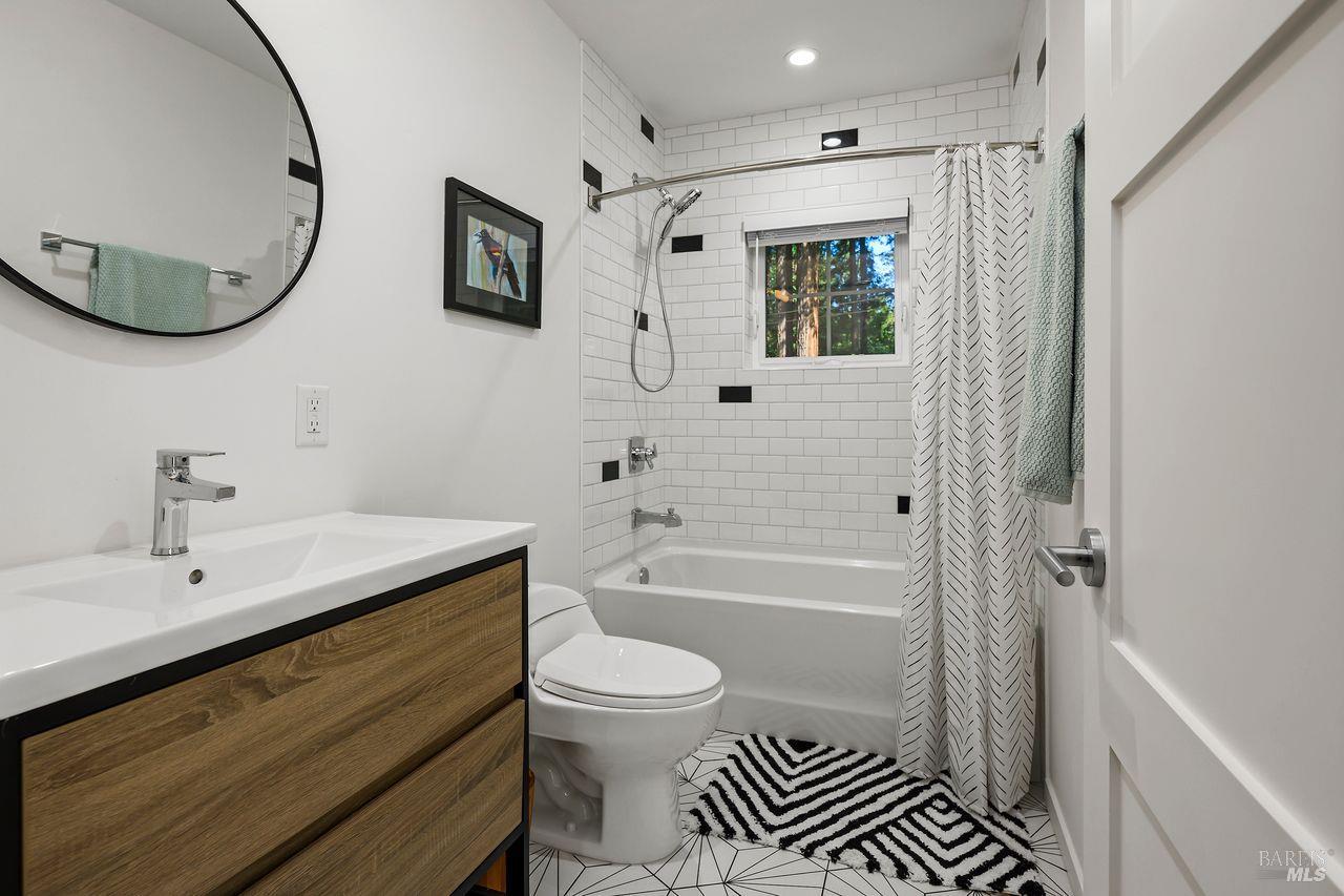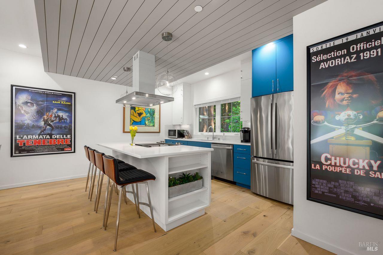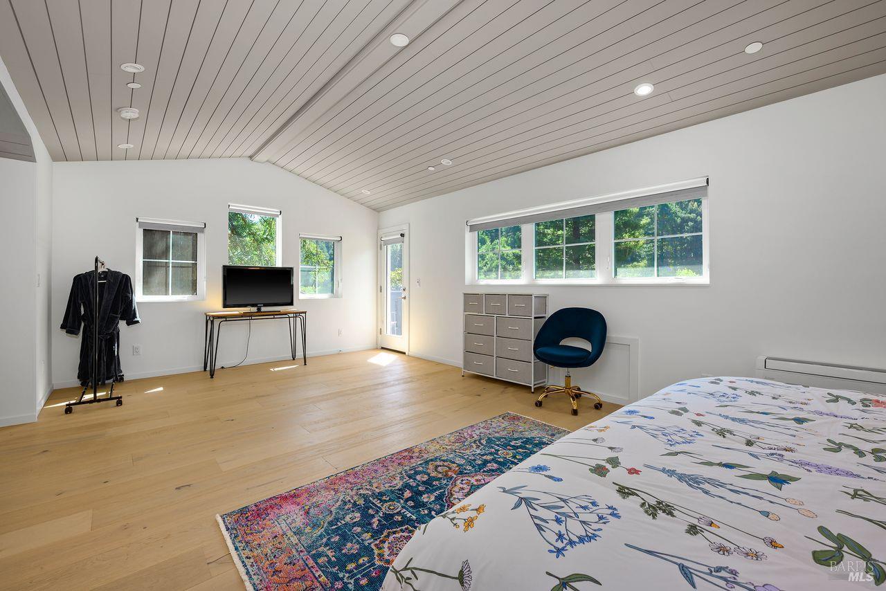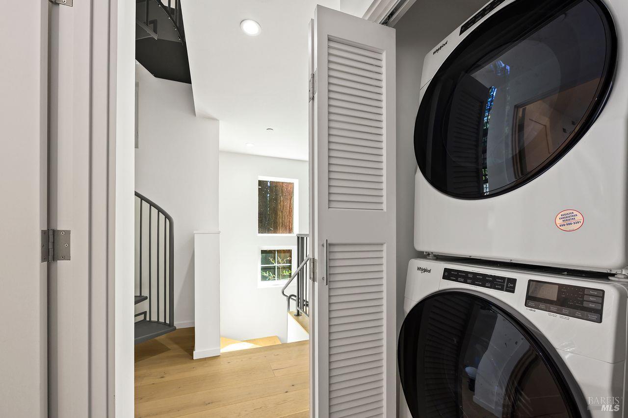 Modern Riverfront Sanctuary. Experience the pinnacle of riverfront living in this stunning, fully electric architectural masterpiece completed in 2023. Perched above the 100-year flood level, this two-bedroom, 2.5-bathroom home blends cutting-edge resilience with sophisticated design. The entire home is light filled. Large sliders and Walls of windows invite the beauty of the Russian River indoors. Enjoy hardwood floors throughout, custom tile work, mesmerizing water vapor fireplace and a sleek wet bar with a wine fridge. A perfect set up for entertaining. The primary suite features a private deck with River views and a walk-in closet. Ascend to the third-story loft, complete with a Juliet balcony offering unmatched views of the water. The living area opens to the ultimate outdoor oasis with large expansive attached deck. Enjoy the steaming hot tub while taking in the serene river atmosphere. Additional features include an EV charging station in the garage, steel frame and a grid concrete pier foundation, a Ring alarm system, exterior cameras, and an interior fire sprinkler system. Offered turnkey and fully furnished