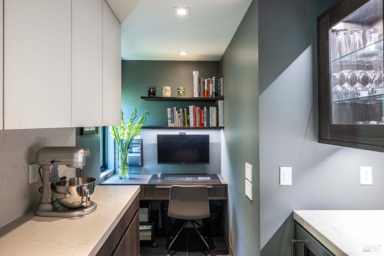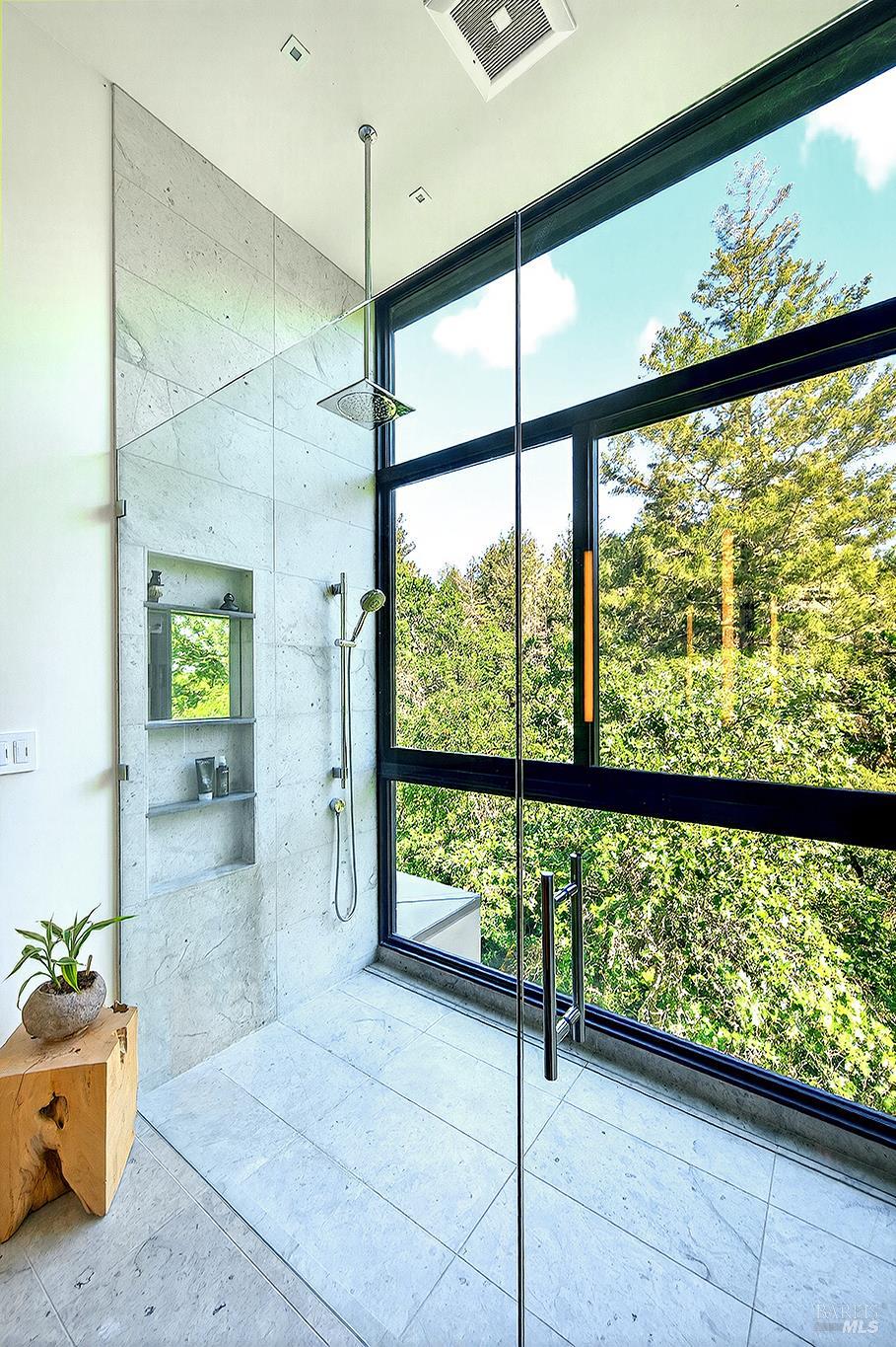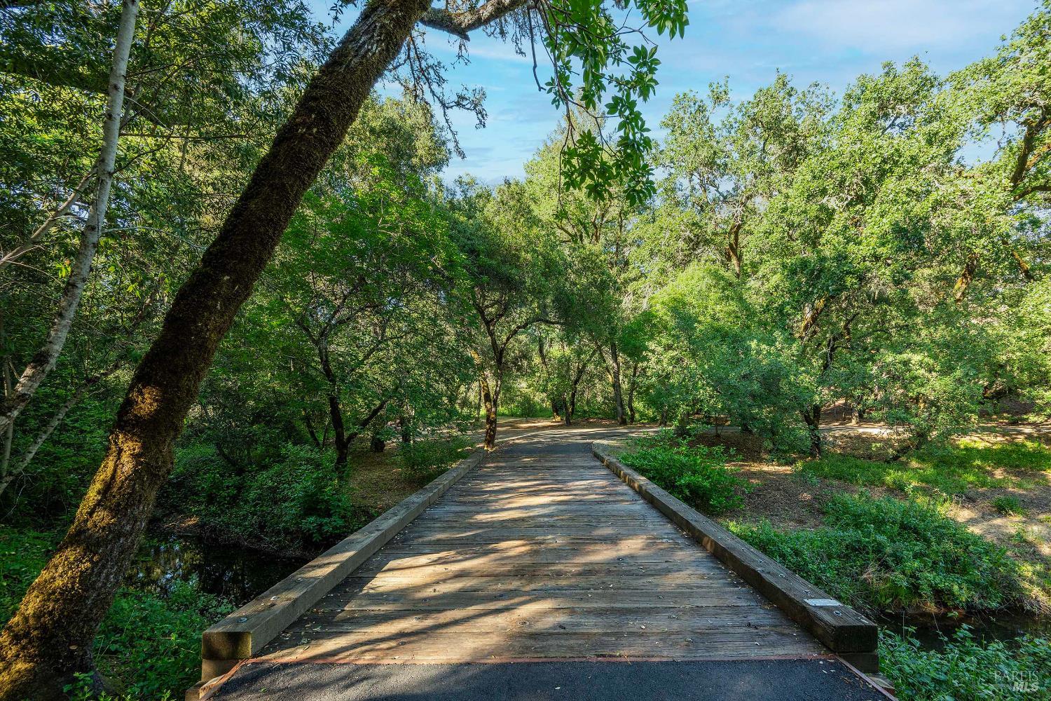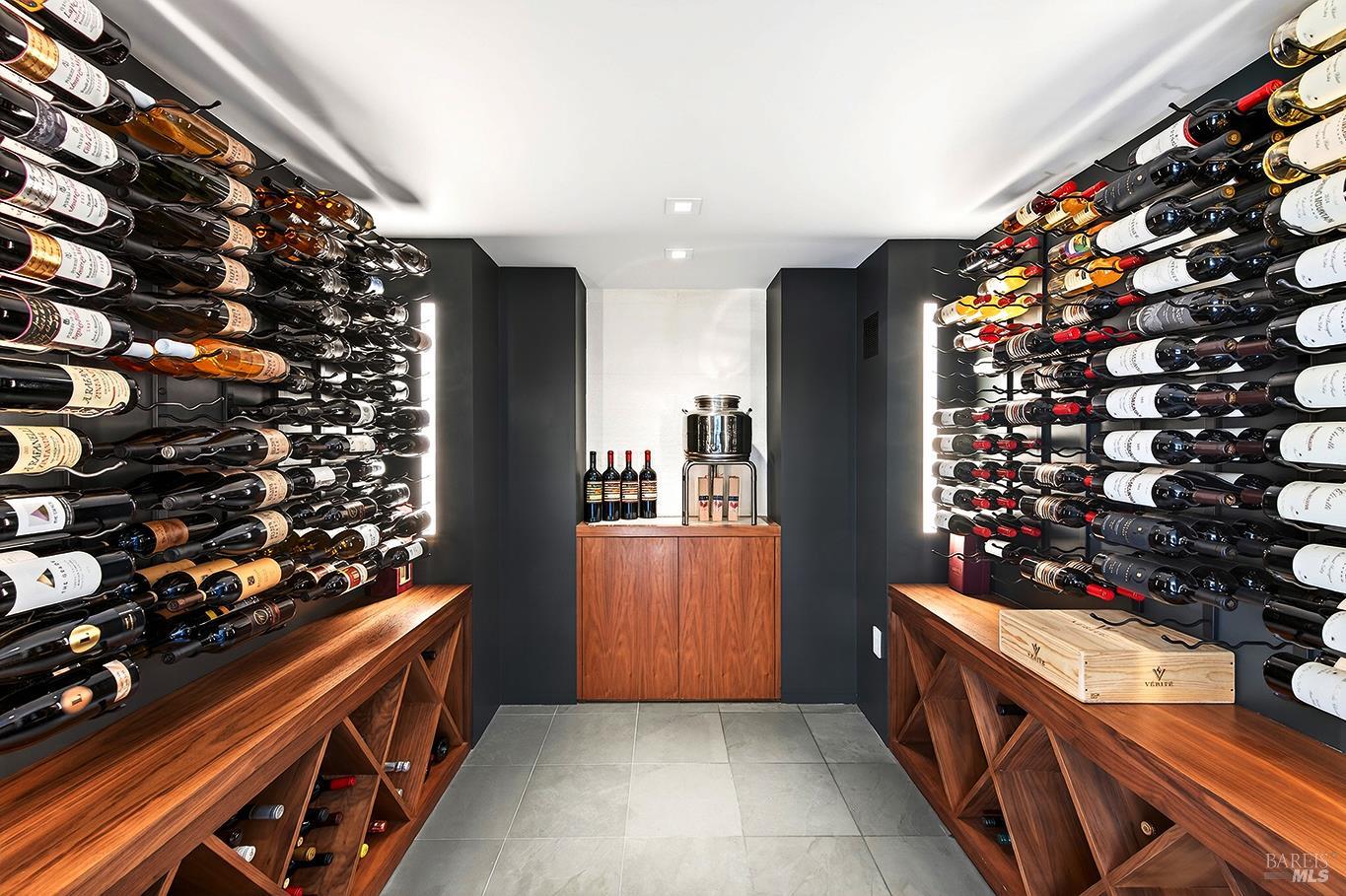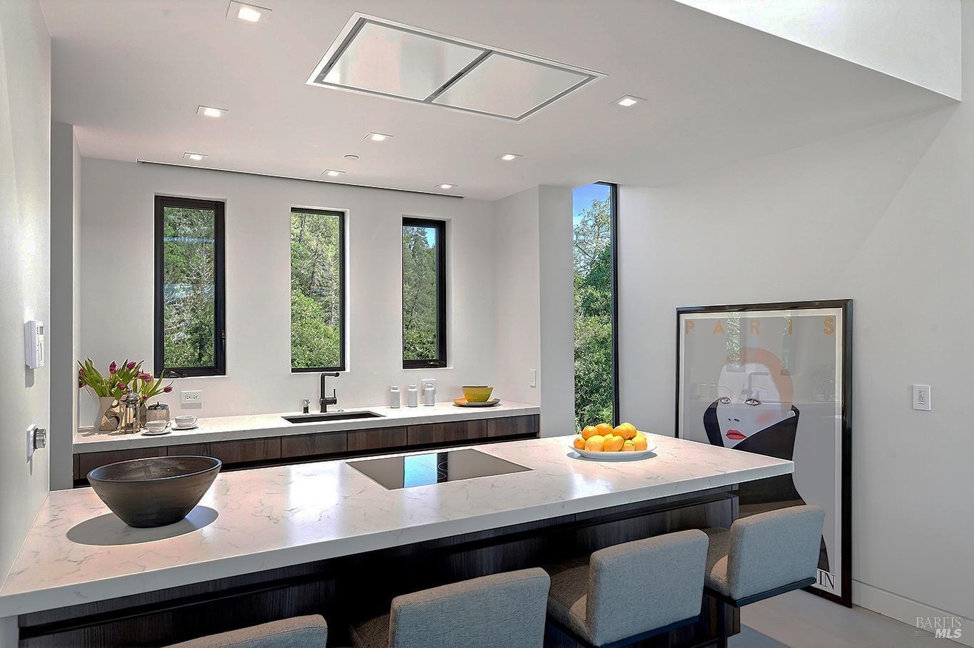 Thoughtfully designed & extensively reimagined, this striking contemporary home blends architectural precision w/warm modern materials & refined livability. A tiered approach creates a dramatic sense of reveal of the residence, framed by curated landscaping and soft, integrated lighting. An earthen-hued stucco facade pairs with natural wood panels and expansive glass, forming a timeless interplay of geometry, scale, and light. A sun-filled great room with 14' ceilings anchors the home, centered around a striking see-through fireplace set against a book-matched granite wall. Expansive folding doors create seamless indoor-outdoor flow, while a sculptural floating staircase with thick wood treads and glass railings serves as a functional work of art. Custom interiors feature quarter-sawn white oak floors and curated walnut casework. Integrated technology includes Control4 automation, Lutron lighting, electric shades, and Sonos sound throughout. The kitchen delivers serious performance; outfitted with Miele appliances, including induction cooktop, multiple ovens, and coffee system, along with Thermador refrigeration, Leicht cabinetry, and quartz surfaces, all complemented by a generous pantry and workspace. A den and media room with 20' ceilings and wood-burning fireplace adds versatility, while the private primary suite displays exposed ceiling trusses, with integrated LED uplighting, custom walnut built-ins, and a tailored closet system. Outdoor living unfolds across a heated three-season screened porch, resort-style lap pool and Caldera spa, and an enclosed dining terrace with built-in grill, pizza oven, and pergola. Fire pit, fountain, and curated landscaping create an immersive setting for relaxation and entertainment. A companion structure, beautifully finished to the same standard as the main residence, offers a 2BR/2BA ADU with private deck and views. The lower level includes a private office, gym with full bath & laundry, and a 3-car garage with storage. Completing the property is a modern agricultural barn with workshop, loft, additional home office and rainwater collection, set among an olive orchard producing estate oil, fruit and citrus groves, raised garden beds, greenhouse, & walking trails. With PV solar, backup generator, private wells and entire property automation, the estate performs equally as a full-time or a lock-and-leave retreat. Ultimate in wine country living...elevated, intentional, and deeply connected to the land.