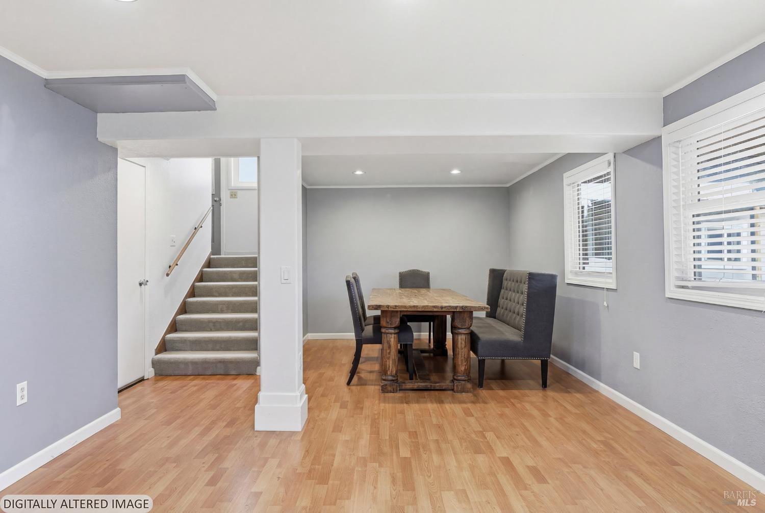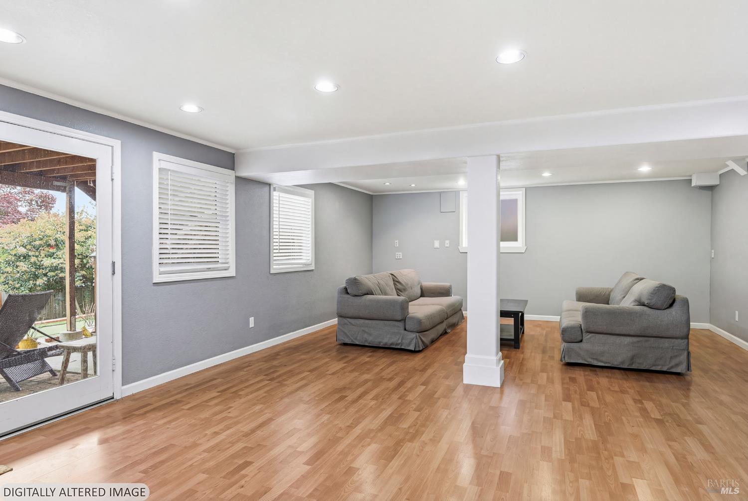 Welcome home to desirable West Petaluma! Beautiful views of Petaluma and the vintage charm of a well-cared for home built in 1955 with 2 bedrooms, 1.5 bathrooms, 2,099 square feet of living space (per iGuide) located on a 5,300 square foot lot close to downtown Petaluma. Open living room with fireplace, built-in book shelves and a formal dining room with city views, two large bedrooms and hardwood floors. Bright sunny kitchen with vintage charm, stainless-steel appliances, a breakfast nook and a sliding glass door leading to a deck with incredible views and access to the backyard. Features include: HUGE room downstairs (could be additional bedroom(s) with backyard access leading to a covered brick patio, plus a, additional room off the kitchen, large yard with storage shed, air-conditioning, owned solar system installed in 2019, dual pane windows, less than 1 year-old composition shingle roof, reverse osmosis water filter, ceiling fans, fiber internet, recessed lighting, window blinds, multiple storage closets and one-car garage. Mature landscaping, lawn area, brick patio and retaining wall, putting green, storage shed and a covered porch plus a large deck on the upper level with incredible views! Close to downtown Petaluma, shopping, restaurants, parks, schools, SMART Train, Sonoma Coast, wineries, Helen Putnam Regional Park and all that Sonoma County offers!