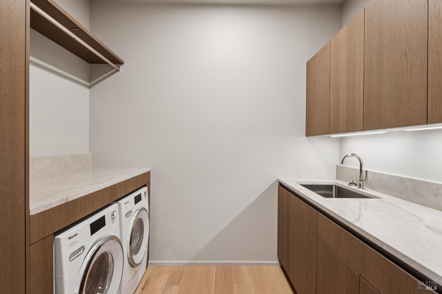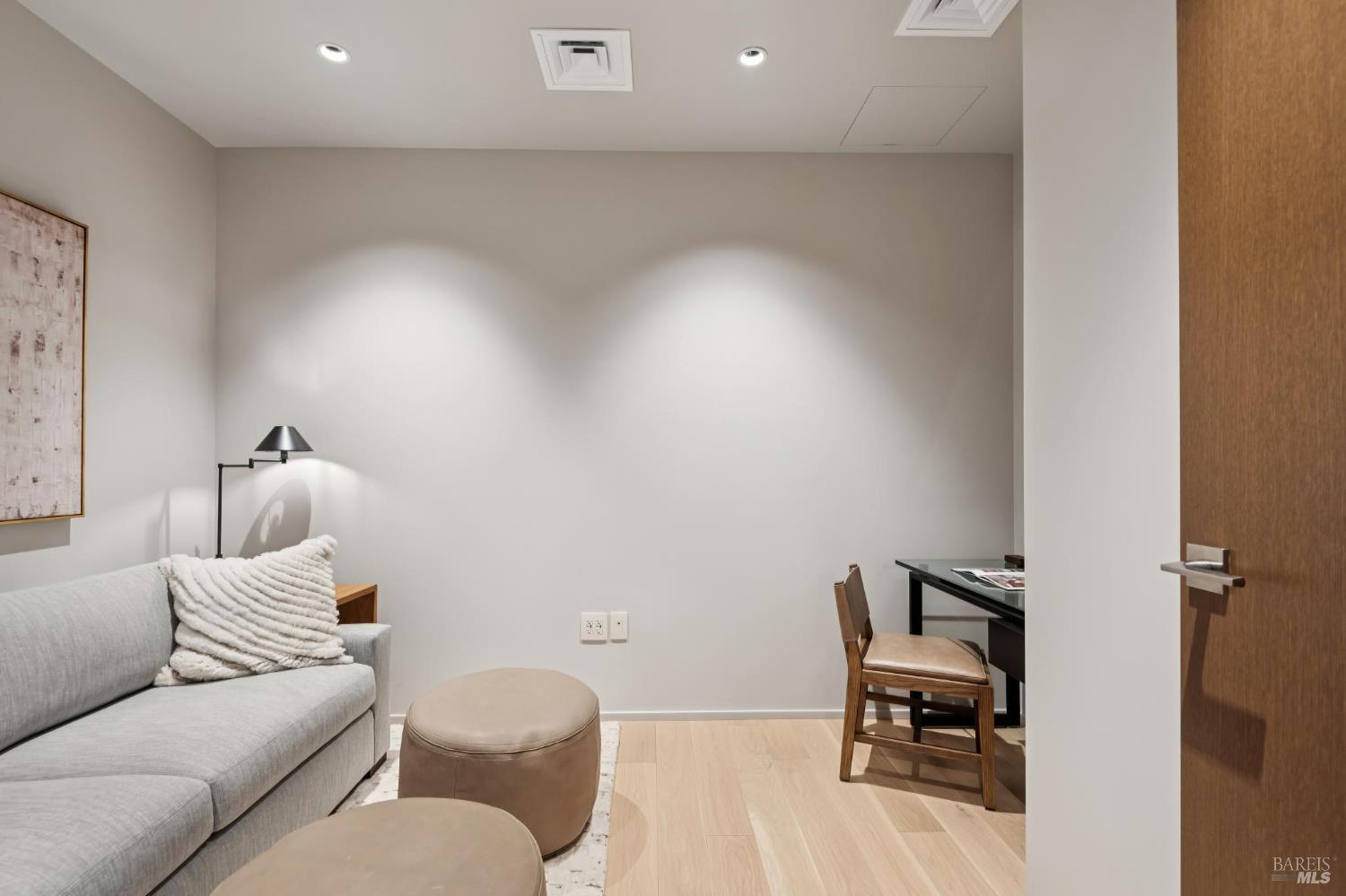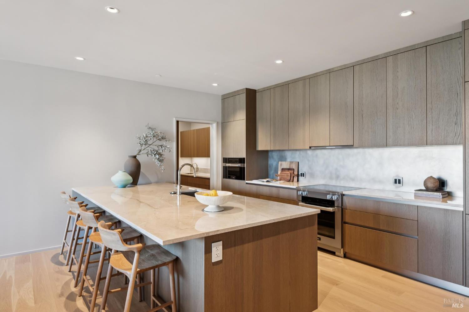 Canopy at Mill District offers a serene sanctuary designed by world-renowned AD100 architect Olson Kundig. Residence A203 is a brand-new home featuring two bedrooms, two-and-a-half bathrooms, and a versatile den, all perfectly perched on the second floor. The heart of the home is an open floor plan, with a gourmet kitchen flowing seamlessly into the living and dining areas. Large floor-to-ceiling sliding doors lead to the private balcony equipped with a built-in BBQ, making it the perfect place for morning sunrises and effortless indoor-outdoor living. The interior is defined by rustic sophistication and luxurious finishes, including Italian-made cabinetry, Miele appliances, stone countertops, and temperature-controlled wine storage. The primary suite serves as a true retreat, featuring a large walk-in closet, a spa-like bathroom with a soaking tub, and a dedicated desk area. The second bedroom also offers a walk-in closet and an ensuite bathroom with a walk-in shower. For added flexibility, the den is perfect for a home office, a fitness space, or a cozy second seating area, while a pantry and laundry room off the kitchen provide additional functionality. Canopy represents a rare opportunity to enjoy a meticulously designed home in the most desirable location in wine country. The 10- acre Mill District community will also include a boutique hotel, a swimming pool, and a fitness center. Located in the heart of Healdsburg, this home blends urban vibrancy with resort-like amenities. You are just a short walk from the charming plaza, Michelin-starred restaurants, and world-class tasting rooms.