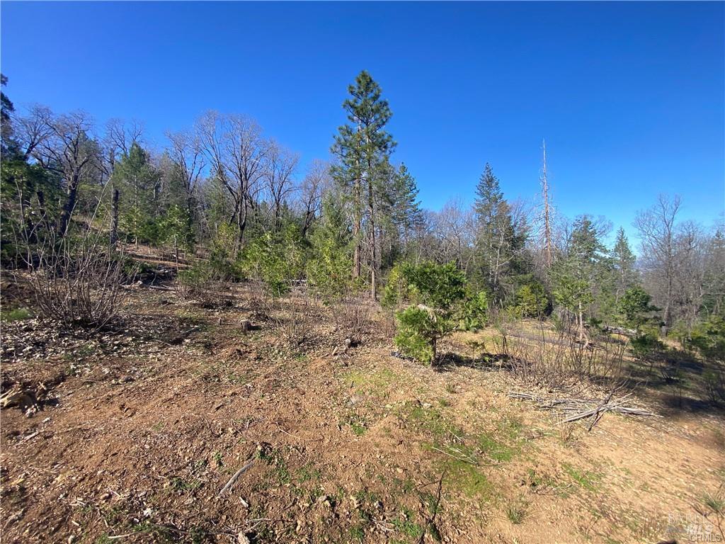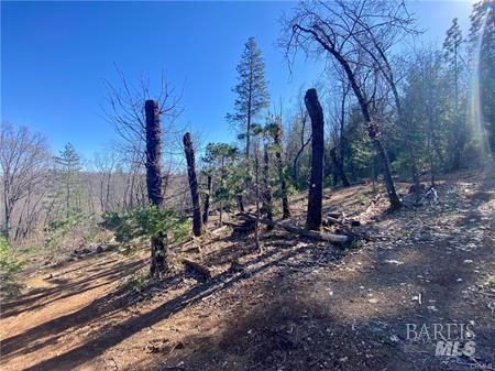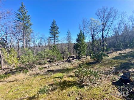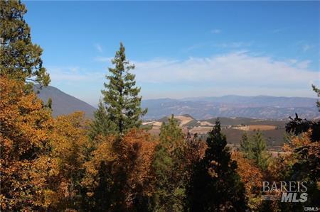 Spectacular Mountain and Vineyard Views on Private 5+ Acres. This wooded down-sloped parcel is in an ideal location for peace and quiet. The driveway winds through the property to a cleared area with a gentle slope that would be suitable for building your new home. This parcel is located only 10 minutes away from the amenities available in Clearlake Riviera and 25 minutes to Lakeport.