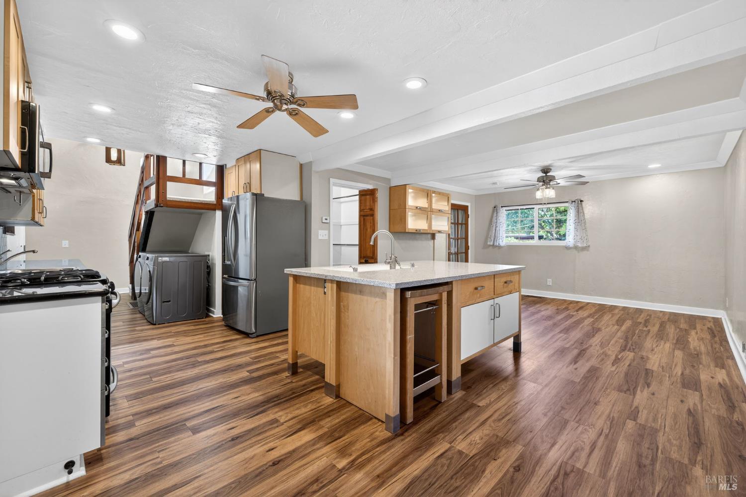 Welcome to a rare and versatile opportunity in the heart of Martinez perfectly suited for multigenerational living, income potential, or a savvy investor looking to maximize returns. This thoughtfully configured single-family residence with an attached ADU offers a total of approximately 2,556 square feet of living space on a generous 7,500 square foot lot. The main residence spans approximately 1,464 square feet and features 2 bedrooms and 1.5 bathrooms, complete with a full kitchen and convenient laundry hookups. Designed for comfort and efficiency, the home is equipped with its own furnace and a tankless water heater, providing modern functionality for everyday living. Privately situated with its own separate entrance, the attached ADU offers approximately 1,092 square feet and includes 2 bedrooms, 1 full bathroom, a full kitchen, and its own laundry hookups creating an ideal setup for extended family, guests, or rental income. The ADU also enjoys independent heating and its own tanked water heater, offering comfort and autonomy for occupants. The property is further enhanced by an owned solar system, helping to offset energy costs, while all utilities are conveniently connected to a single meter. Whether you're looking to live in one unit and rent the other, accommodate multiple generations under one roof, or expand your investment portfolio, this flexible property delivers exceptional value and opportunity. Buyer to verify all square footage and features.