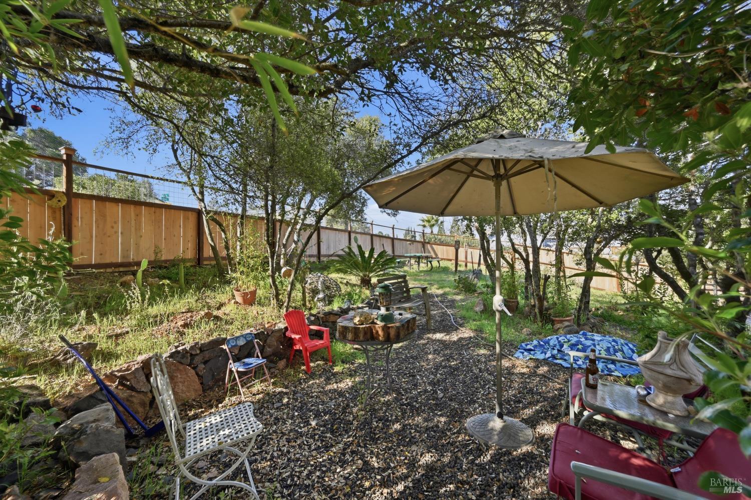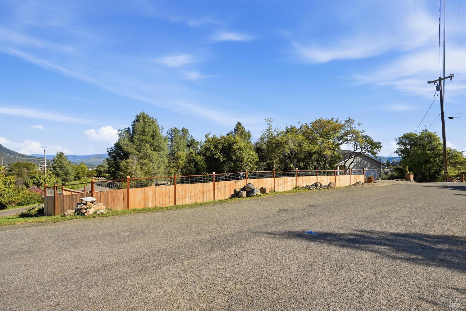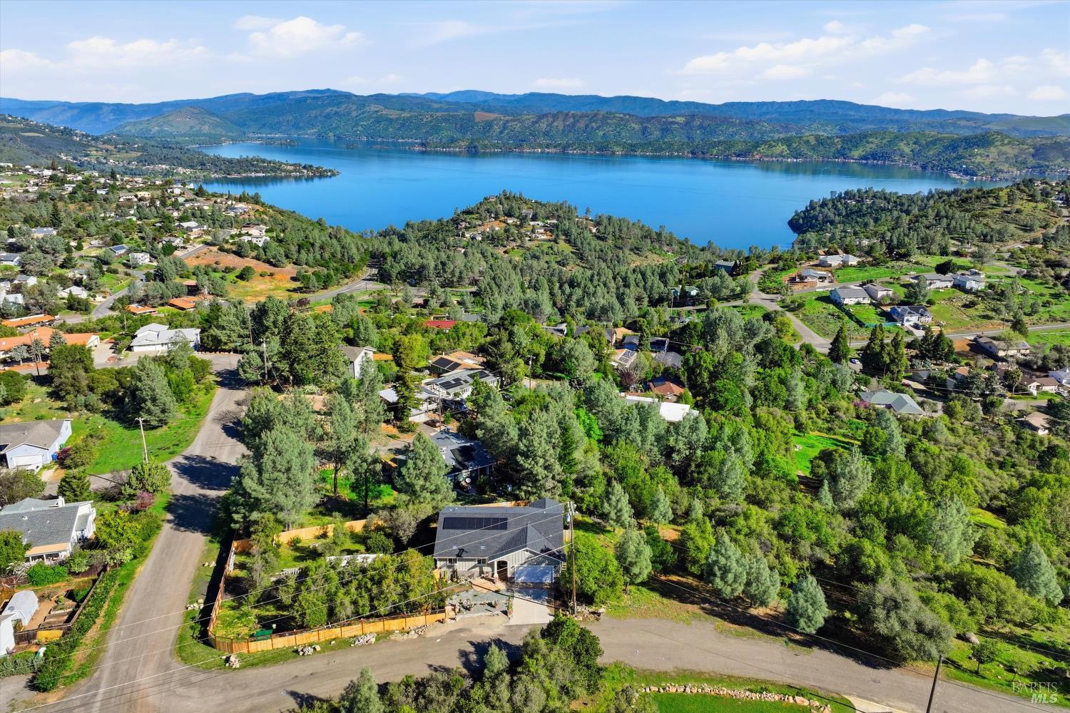 Custom built in 2022 by one of Lake County's established builders, this thoughtfully designed single story home offers comfort, space, and beautiful views of Mt. Konocti. This 1,600 sq ft home features 2 bedrooms, 2 bathrooms, and an office space. A large unfinished bonus room beneath the home provides excellent potential for storage, a workshop, or future customization. The open floor plan includes a spacious living area and a well-appointed kitchen with granite countertops, an island, custom cabinetry, and stainless steel appliances. The kitchen also includes a large walk-in pantry. Flooring includes laminate throughout the main living areas, tile in the bathrooms, and carpet in the bedrooms. The primary suite features a large walk-in closet, a sliding glass door with access to the rear deck, and a luxury bathroom with tile flooring, a jetted tub, and a walk-in shower. Bathrooms include cultured marble countertops for a clean, finished look. Set on a combined .35 acres, the property includes the adjacent corner lot and features a brand-new wood fence installed just last yearoffering additional space, privacy, and versatility. The landscaped yard features a hand-stamped decorative concrete walkway, redwood front steps, and a large full-length redwood deck in the backyardperfect for enjoying views of Clear Lake and the surrounding mountains. Located in a cul-de-sac, the home enjoys extra privacy with empty lots on both sides. Additional features include a 2-car garage, RV parking with access through the west gate, and a fully owned and installed solar system. Offering generous space, added privacy, and scenic views, this well-crafted custom home is ready for its new owners.