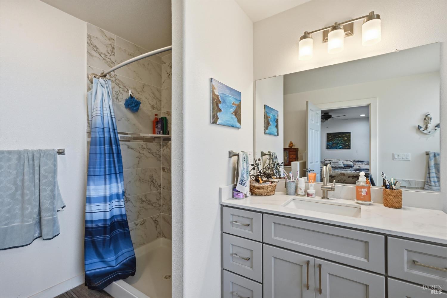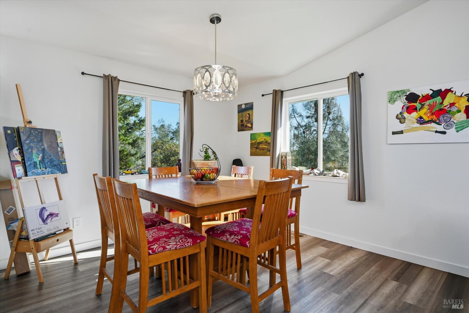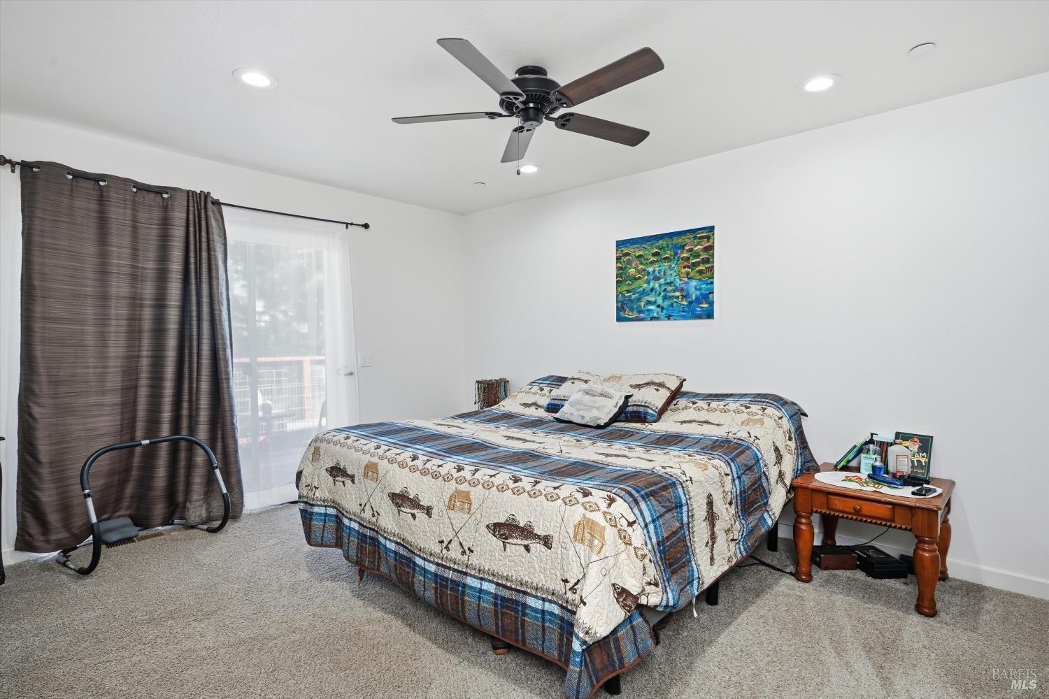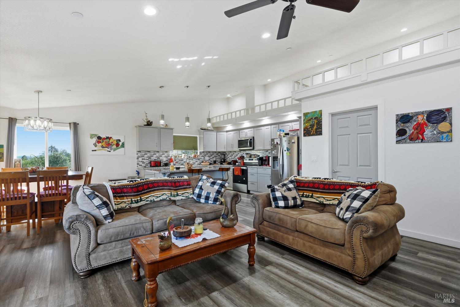 Custom built in 2022 by one of Lake County's established builders, this thoughtfully designed single story home offers comfort, space, and beautiful views of Mt. Konocti. This 1,600 sq ft home features 2 bedrooms, 2 bathrooms, and an office space. A large unfinished bonus room beneath the home provides excellent potential for storage, a workshop, or future customization. The open floor plan includes a spacious living area and a well-appointed kitchen with granite countertops, an island, custom cabinetry, and stainless steel appliances. The kitchen also includes a large walk-in pantry. Flooring includes laminate throughout the main living areas, tile in the bathrooms, and carpet in the bedrooms. The primary suite features a large walk-in closet, a sliding glass door with access to the rear deck, and a luxury bathroom with tile flooring, a jetted tub, and a walk-in shower. Bathrooms include cultured marble countertops for a clean, finished look. Set on a combined .35 acres, the property includes the adjacent corner lot and features a brand-new wood fence installed just last yearoffering additional space, privacy, and versatility. The landscaped yard features a hand-stamped decorative concrete walkway, redwood front steps, and a large full-length redwood deck in the backyardperfect for enjoying views of Clear Lake and the surrounding mountains. Located in a cul-de-sac, the home enjoys extra privacy with empty lots on both sides. Additional features include a 2-car garage, RV parking with access through the west gate, and a fully owned and installed solar system. Offering generous space, added privacy, and scenic views, this well-crafted custom home is ready for its new owners.