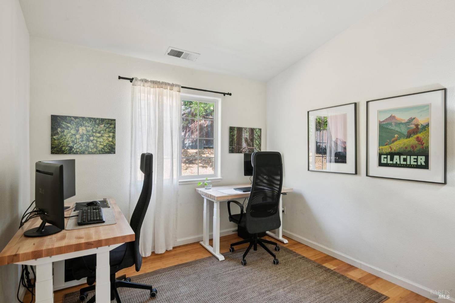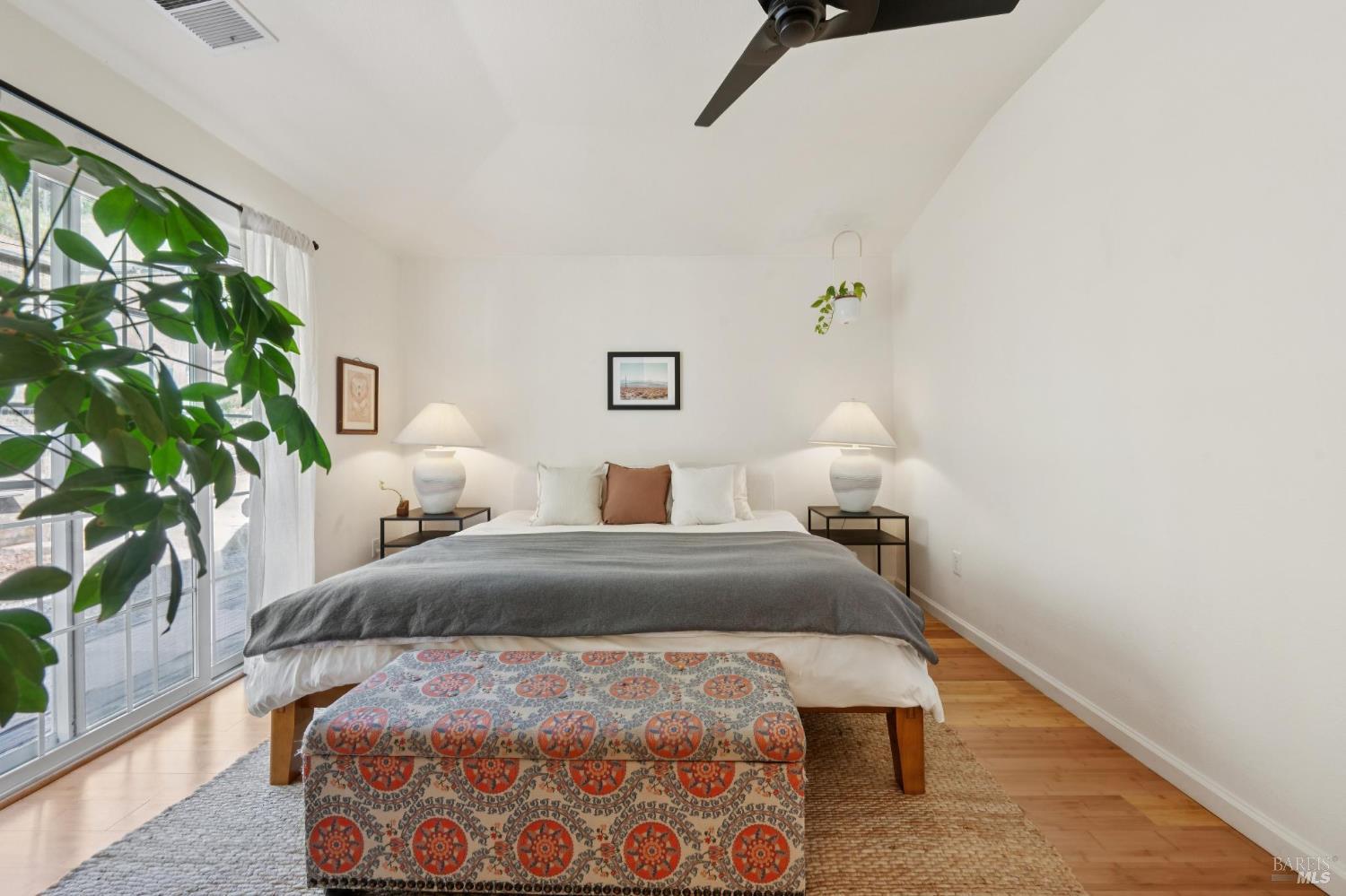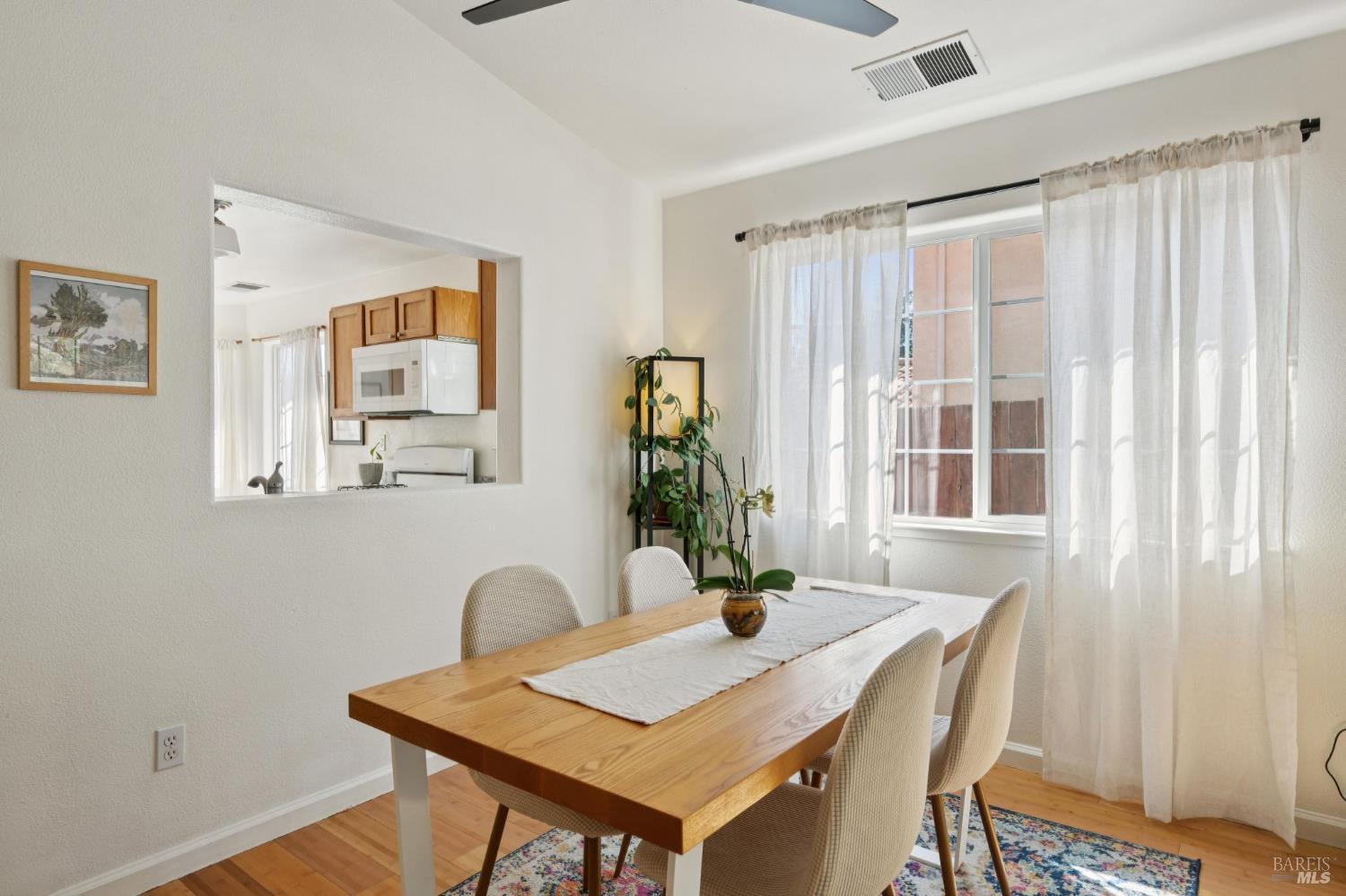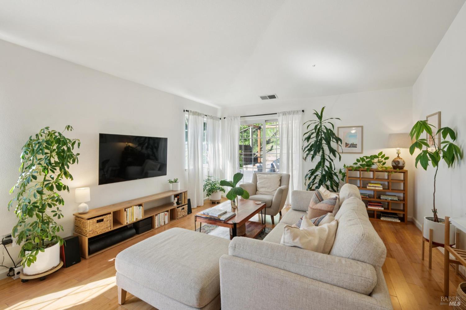 Charming 3-bedroom, 2-bath home in Cloverdale's Jefferson Springs neighborhood with stucco exterior and tiled roofs giving a Tuscan vibe. The updated kitchen features full appliances, granite counters and a bright breakfast nook. Vaulted ceilings enhance the open living area and the primary suite, which includes a walk-in closet and an en-suite bath. Sliding glass doors from both the living room and primary bedroom open to a wooden deck beneath a new shaded pergolaideal for entertaining. The large, sloped yard rises up the hill, offering a private setting and a short walk up to enjoy expansive views. Gardeners will appreciate tiered planting beds and established apple, orange, lemon and olive trees. Minutes from downtown shops, farmers markets, dining and coffeehouses, with easy access to Hwy 101, Lake Sonoma, wineries and hiking trails.