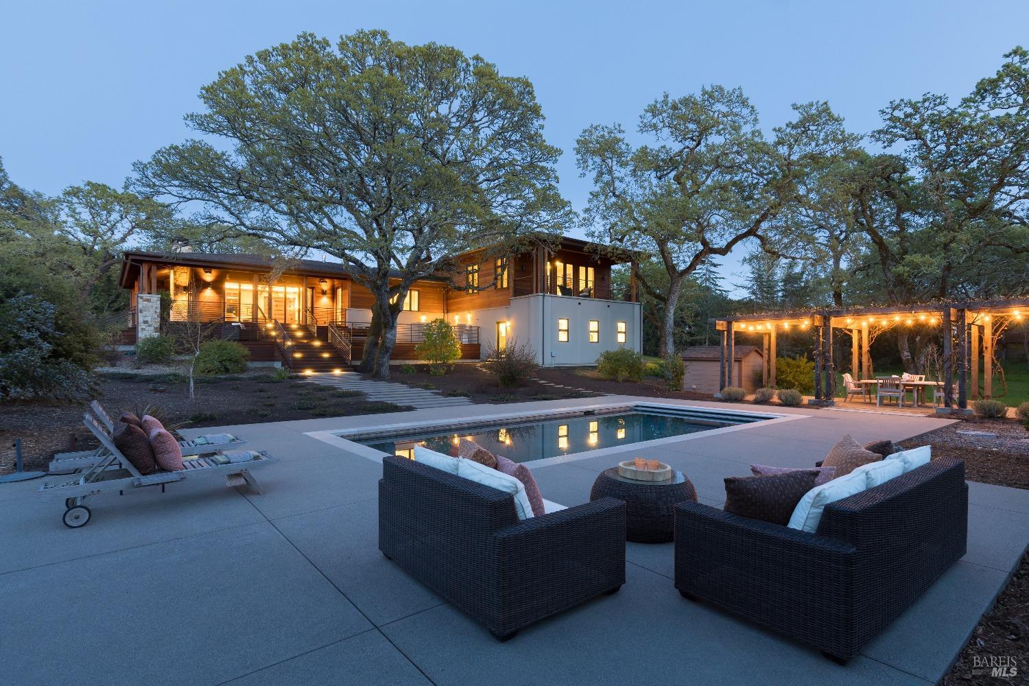 3525 Wood Valley Road is a picturesque property located just minutes from world-class wineries and the Historic Sonoma Plaza. The main house features a great room with vaulted ceilings and a disappearing glass door opening onto the wrap-around hardwood deck. Two spacious guest rooms and two bathrooms are located on the main level. The kitchen was chef designed with premium appliances, a walk-in pantry and a large island with barstool seating. The primary suite is a tranquil retreat on the upper level of the home. This space boasts a private deck, cozy seating area, walk-in closet and a spa-like bathroom. An updated farmhouse with two bedrooms and two bathrooms provides a private residence for guests. The outdoor entertaining areas are remarkable with a well-equipped outdoor kitchen, in-ground pool, and expansive decks. Open meadows, seasonal creek and flourishing gardens combine to provides an extraordinary Wine Country haven.