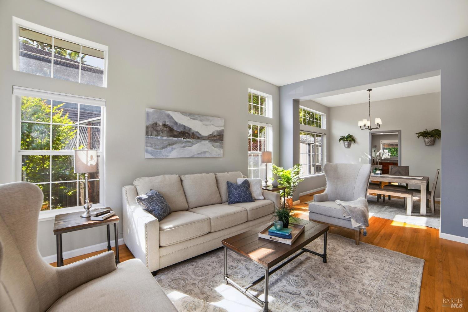 Located on a quiet cul-de-sac in one of Windsor's most desirable neighborhoods, this stunning single-story 3 bedroom, 2.5 bath home perfectly captures the relaxed elegance of Sonoma County living. Single-story living at its finest, no stairs, no compromise-just seamless, comfortable flow throughout every room. From the moment you arrive, the pride of ownership is evident in every detail of this thoughtfully maintained property. Inside, the smart floor plan offers a formal living and dining combination ideal for hosting, alongside a great room that flows seamlessly to the covered patio blurring the line between indoor and outdoor living. The expansive kitchen is a chef's dream, featuring rich maple cabinetry, premium Miele double ovens, with a coffee and bar peninsula perfect for morning routines or evening gatherings. The primary bedroom offers direct pool access giving it a true retreat feel while the newly updated ensuite showcases designer finishes and dual shower heads offering a rare and luxurious touch that sets this home apart. Two additional bedrooms share a well-appointed full bath, with a convenient half bath rounding out the interior. Step outside and experience a backyard designed for the best of California living. The sparkling in-ground pool and covered patio create an exceptional entertaining space, while lush, mature landscaping provides beauty and privacy in equal measure. Whether you have a green thumb or simply appreciate a gorgeous outdoor setting, the grounds offer plenty of space for the avid gardener. Two large storage sheds keep everything organized, and a charming backyard playhouse makes this property a true haven for the little ones. Windsor's walkable town center, acclaimed farm-to-table restaurants, boutique wineries, and community events are just minutes away offering that rare small-town charm with everything you need close at hand. This one is not to be missed.
