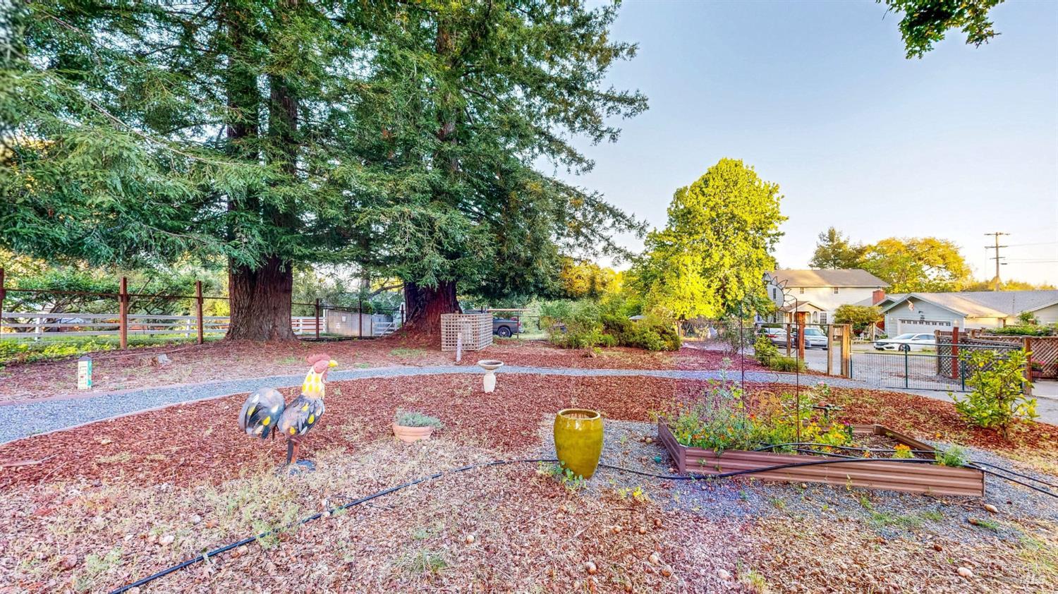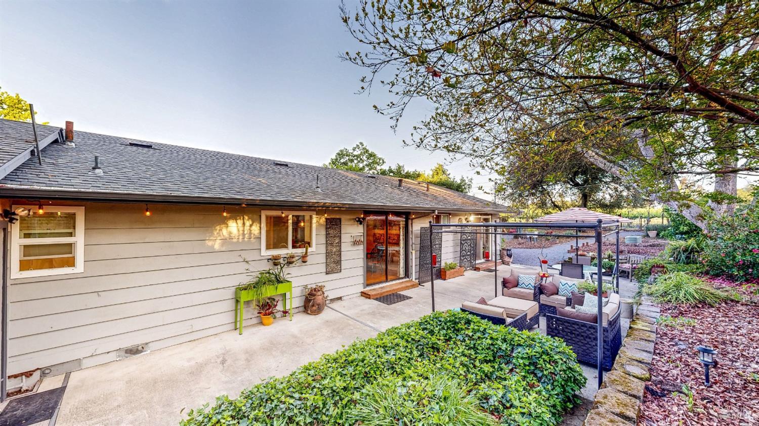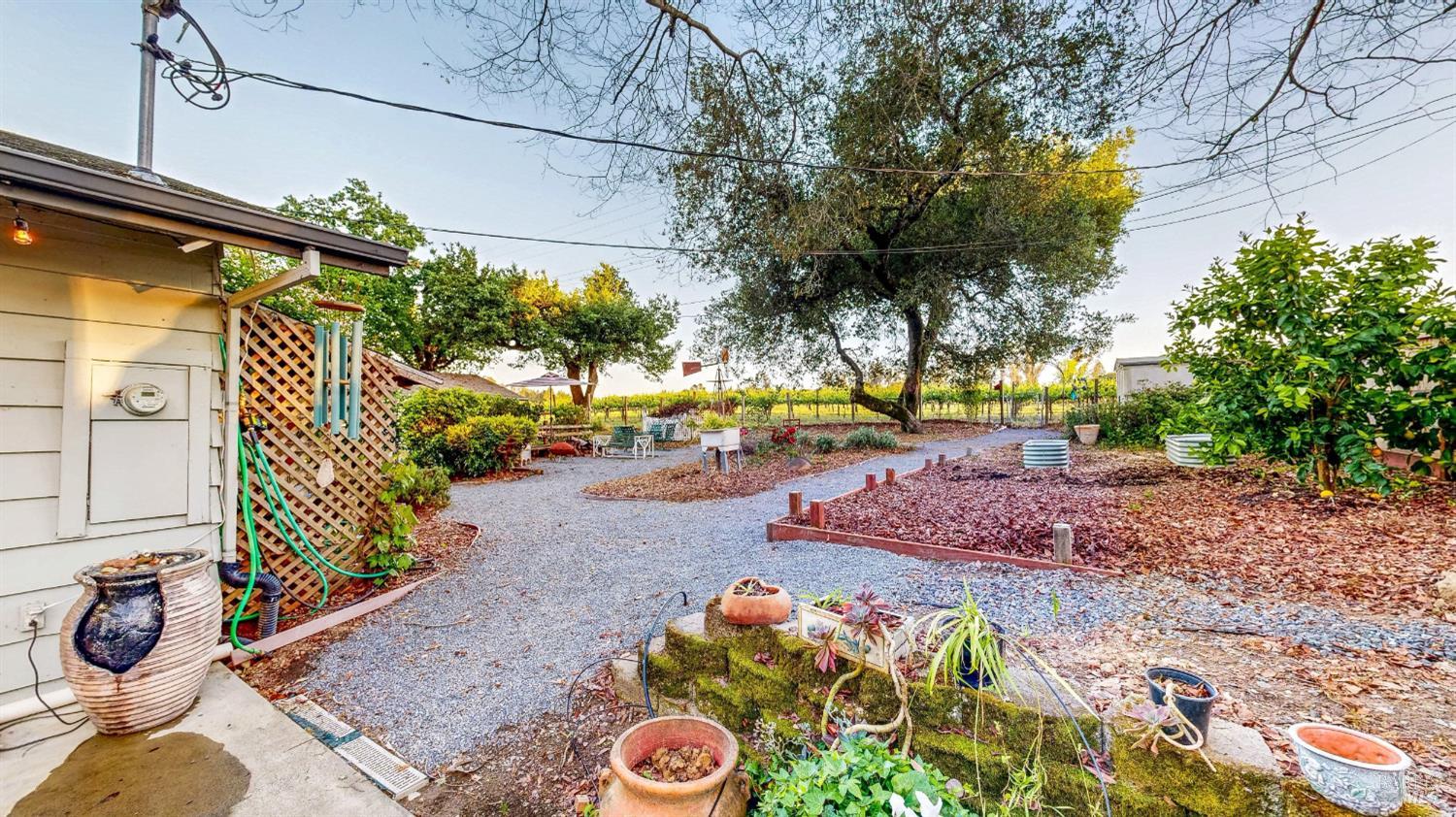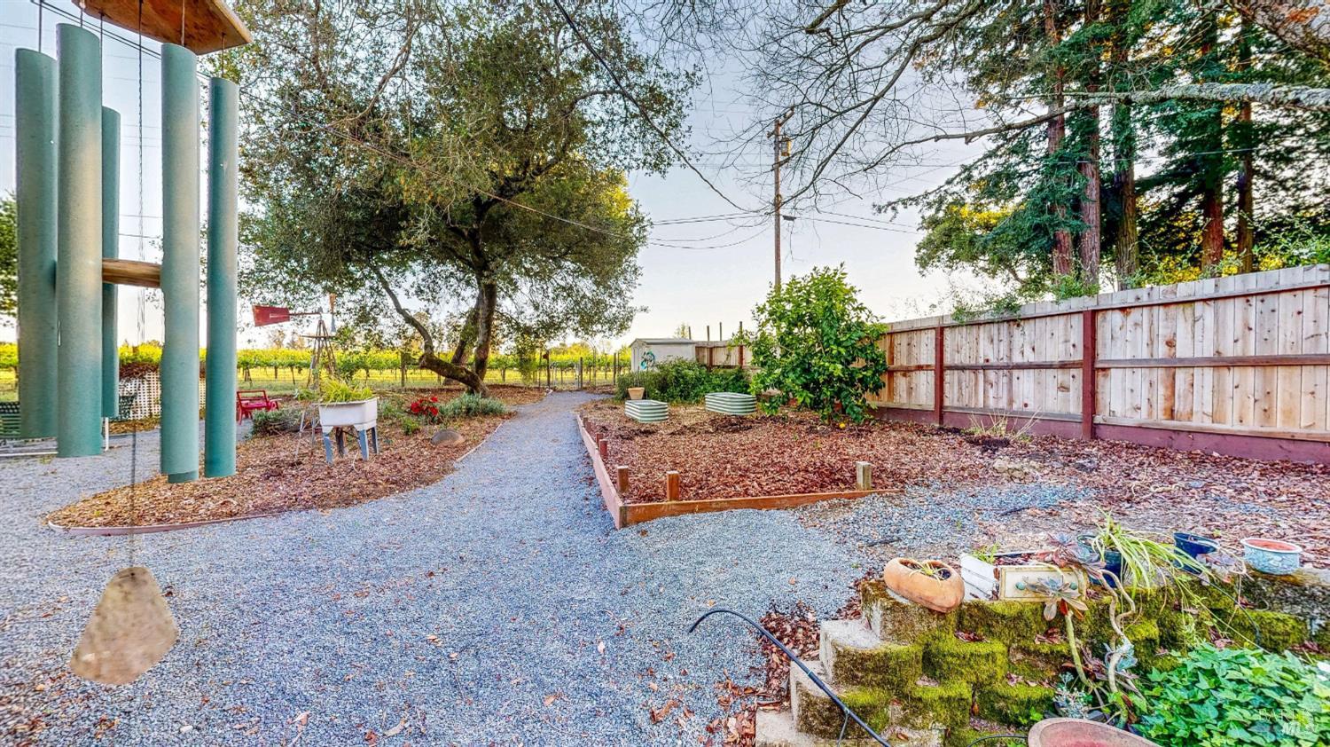 Amazing country feel with amazing vineyard views! This one of a kind, single level home features a large formal living room with a wood burning stove, a generous formal dining room with brick fireplace hearth, a remodeled oversized eat-in kitchen with pantry and breakfast area, dual pane windows, hardwood flooring, ceiling fans, updated fixtures, and plenty of natural light. Sitting on just about 1/2 an acre, enjoy a morning cup of coffee under your own redwoods and an evening glass of your favorite wine while relaxing with views of the adjacent 40 acre vineyard right off your back fence. Additional property features include a detached 2 car garage, an attached carport, gated RV and boat parking, multiple storage sheds, planter garden boxes, and a private patio with cafe lighting. Just a short distance to downtown Santa Rosa as well as several local wineries and restaurants.