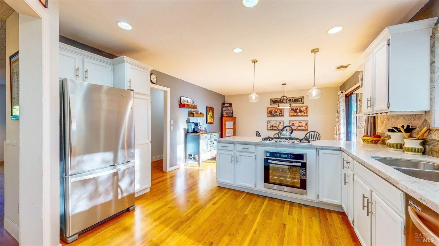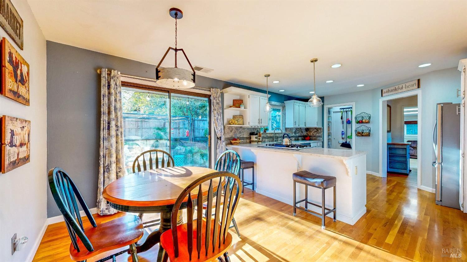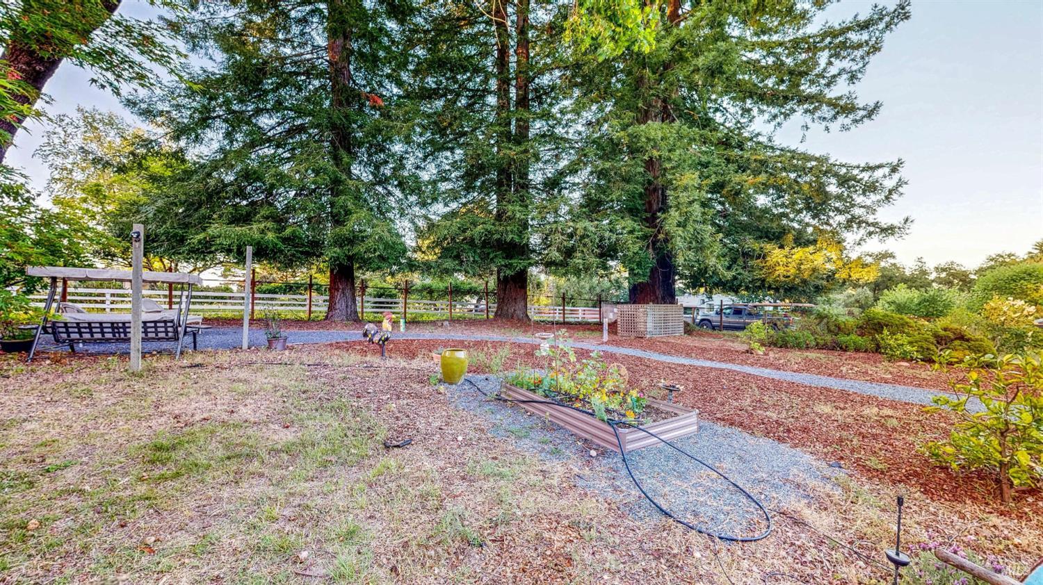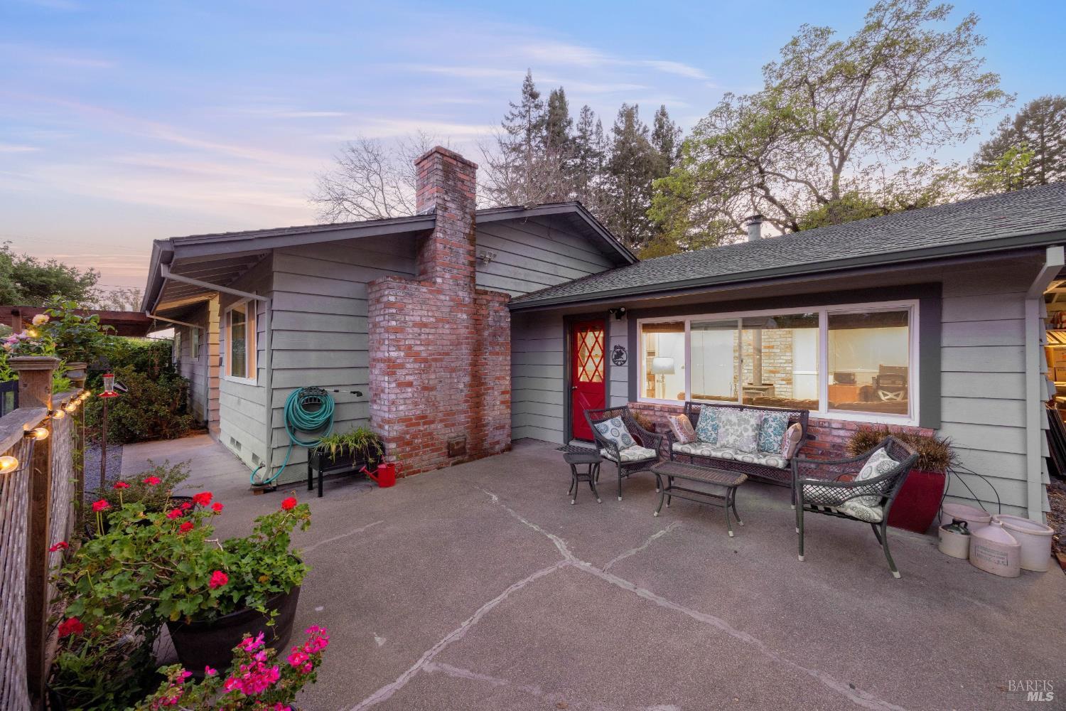 Amazing country feel with amazing vineyard views! This one of a kind, single level home features a large formal living room with a wood burning stove, a generous formal dining room with brick fireplace hearth, a remodeled oversized eat-in kitchen with pantry and breakfast area, dual pane windows, hardwood flooring, ceiling fans, updated fixtures, and plenty of natural light. Sitting on just about 1/2 an acre, enjoy a morning cup of coffee under your own redwoods and an evening glass of your favorite wine while relaxing with views of the adjacent 40 acre vineyard right off your back fence. Additional property features include a detached 2 car garage, an attached carport, gated RV and boat parking, multiple storage sheds, planter garden boxes, and a private patio with cafe lighting. Just a short distance to downtown Santa Rosa as well as several local wineries and restaurants.