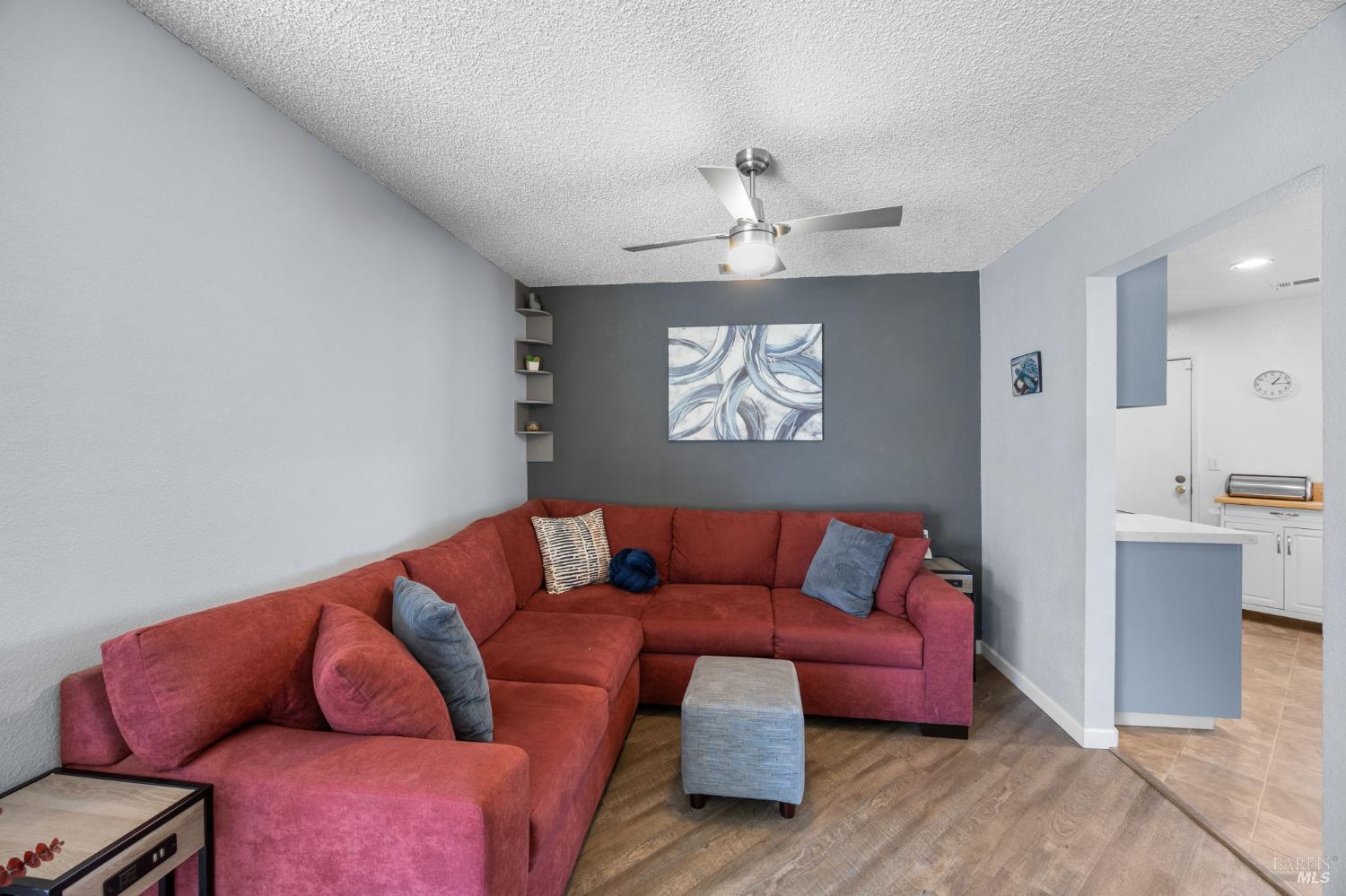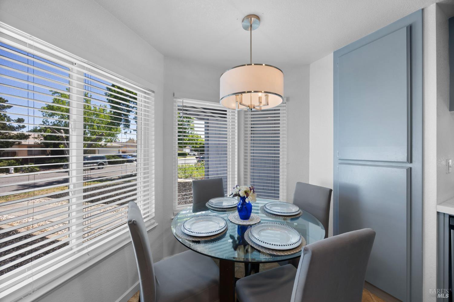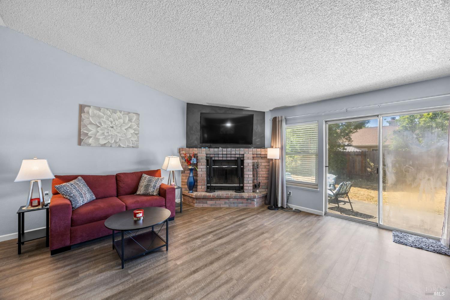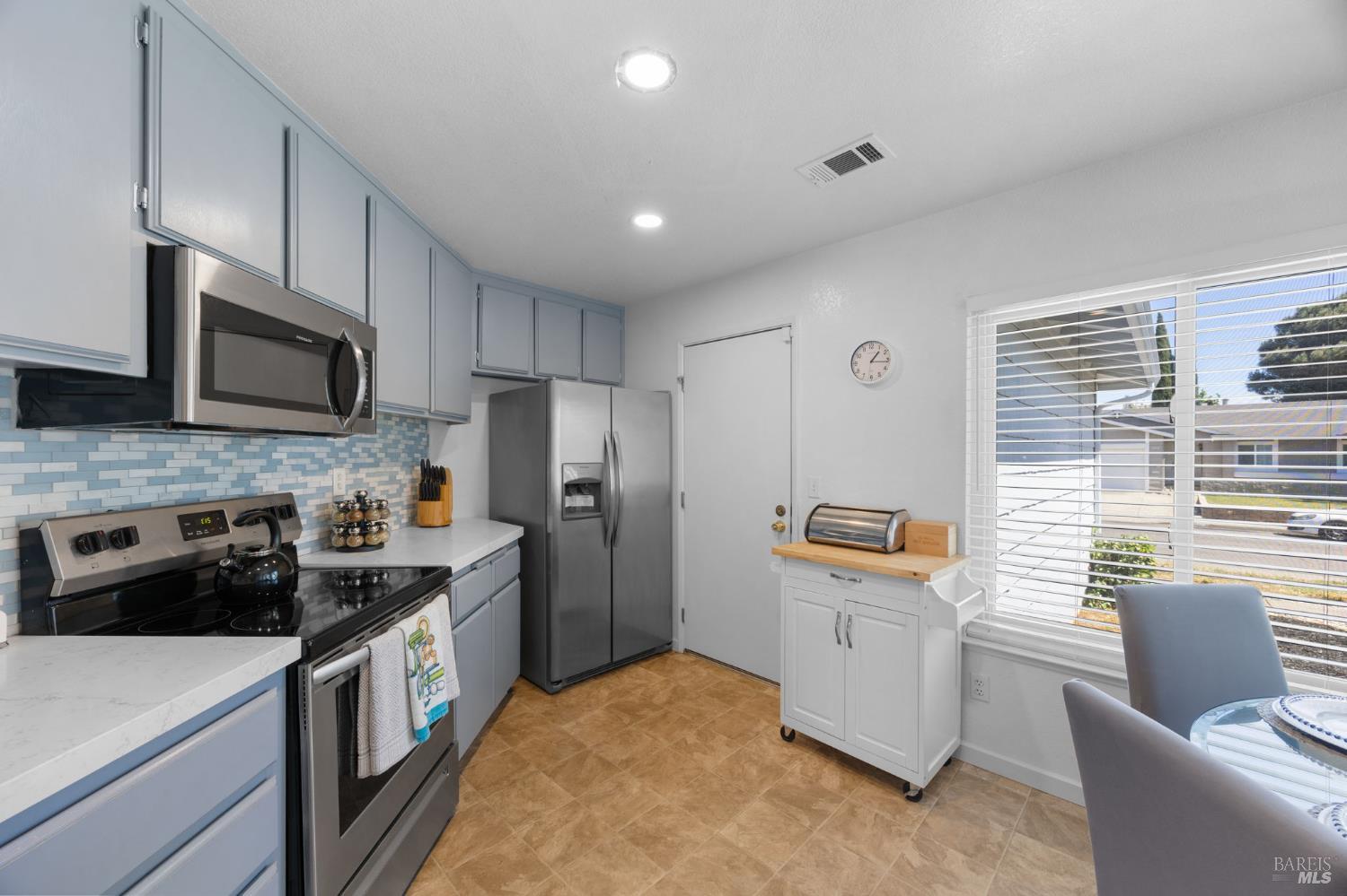 Step inside this beautifully updated 3-bedroom, 2-bathroom single-story home offering 1,327 sq ft of thoughtfully designed living space on a generous 6,098 sq ft lot. From the moment you walk through the door, vaulted ceilings and an open-concept layout create an inviting atmosphere that's perfect for everyday living and effortless entertaining. The heart of this home is a stunning kitchen featuring soft blue cabinetry, quartz countertops, a coordinating glass tile backsplash, stainless steel appliances, and a pass-through bar overlooking the spacious living room. A charming eat-in dining nook with abundant natural light makes morning coffee feel like a retreat. The generous living room showcases a classic brick fireplace, modern ceiling fan, and sliding glass doors that open to the backyard seamlessly connecting indoor and outdoor spaces. The primary suite offers room to relax with a ceiling fan and an ensuite bath featuring dual vanities and a glass-enclosed shower. Outside, a spacious backyard with mature trees and a concrete patio provides the perfect canvas for your dream outdoor oasis whether that's a garden, play area, or future ADU (buyer to verify with the city). A detached storage structure adds convenient functionality, and the wide driveway with attached 2-car garage provides ample parking. Recent updates include a newer roof and central heating and cooling giving you peace of mind from day one. Located in a quiet, established neighborhood with easy access to Suisun City's waterfront, dining, parks, and commuter routes, this home checks every box. Your next chapter starts here.