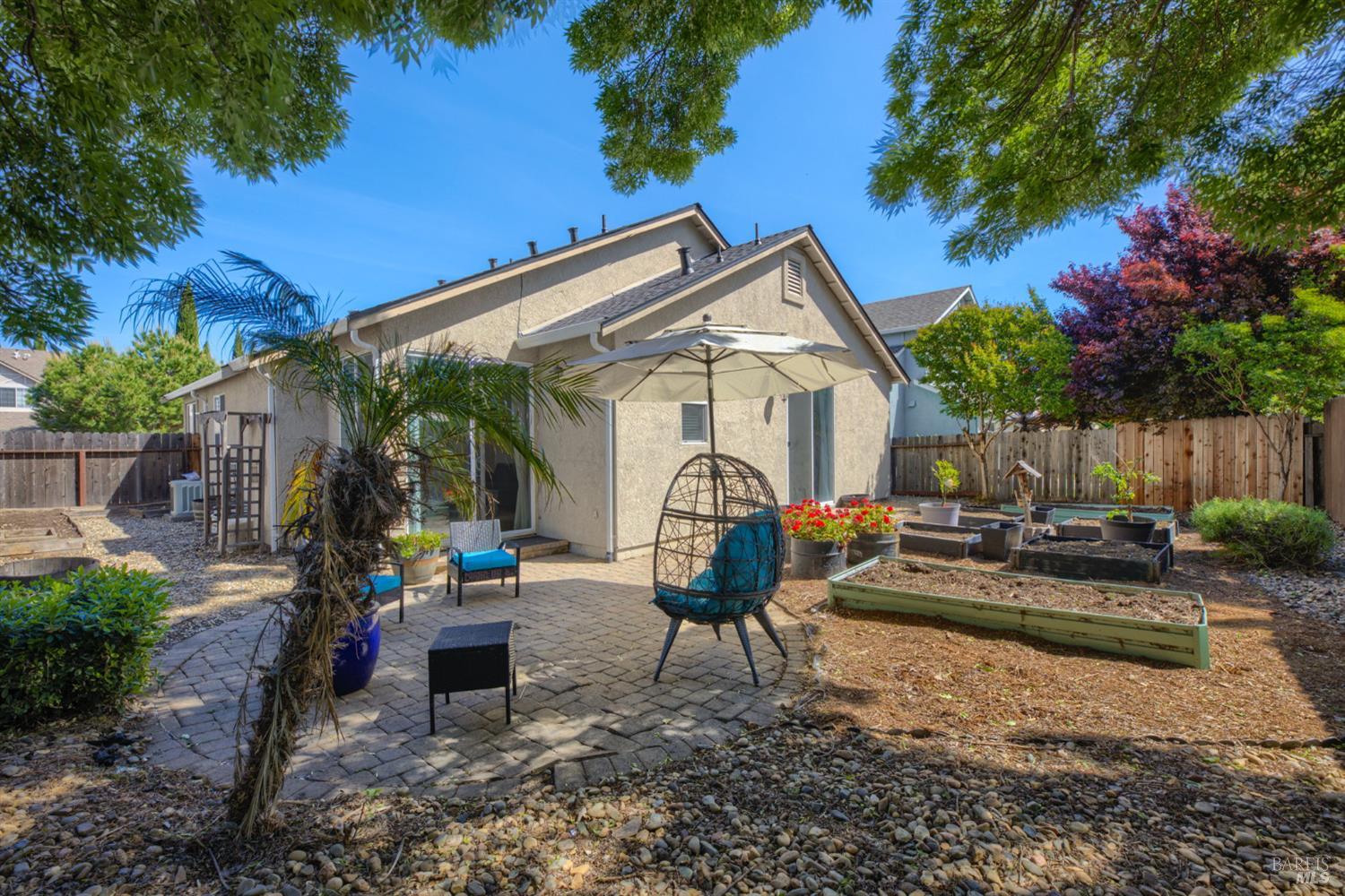 Welcome to 244 Somerville Drive in Vacaville! This move-in ready single-story home offers 3 bedrooms, 2 full bathrooms, and approximately 1,305 square feet of thoughtfully updated living space. Inside, you'll find charming accents throughout, an updated kitchen with ample storage, and a comfortable layout designed for everyday living. The primary bedroom features direct access to the backyard, creating a seamless indoor-outdoor feel. Step outside to a gardener's dream, or a blank canvas ready for your personal touch, with no rear neighbors and a peaceful walking path just behind. Conveniently located near Cambridge Elementary School, this home combines comfort, updates, and a great location, and is topped off with a brand new roof for added peace of mind and long-term value.