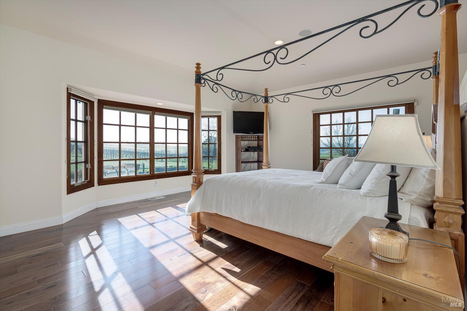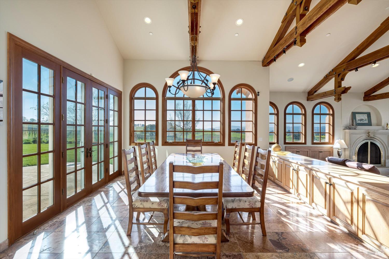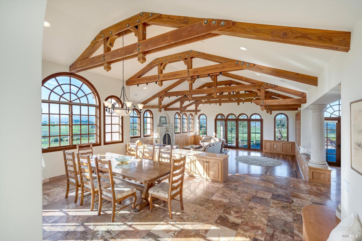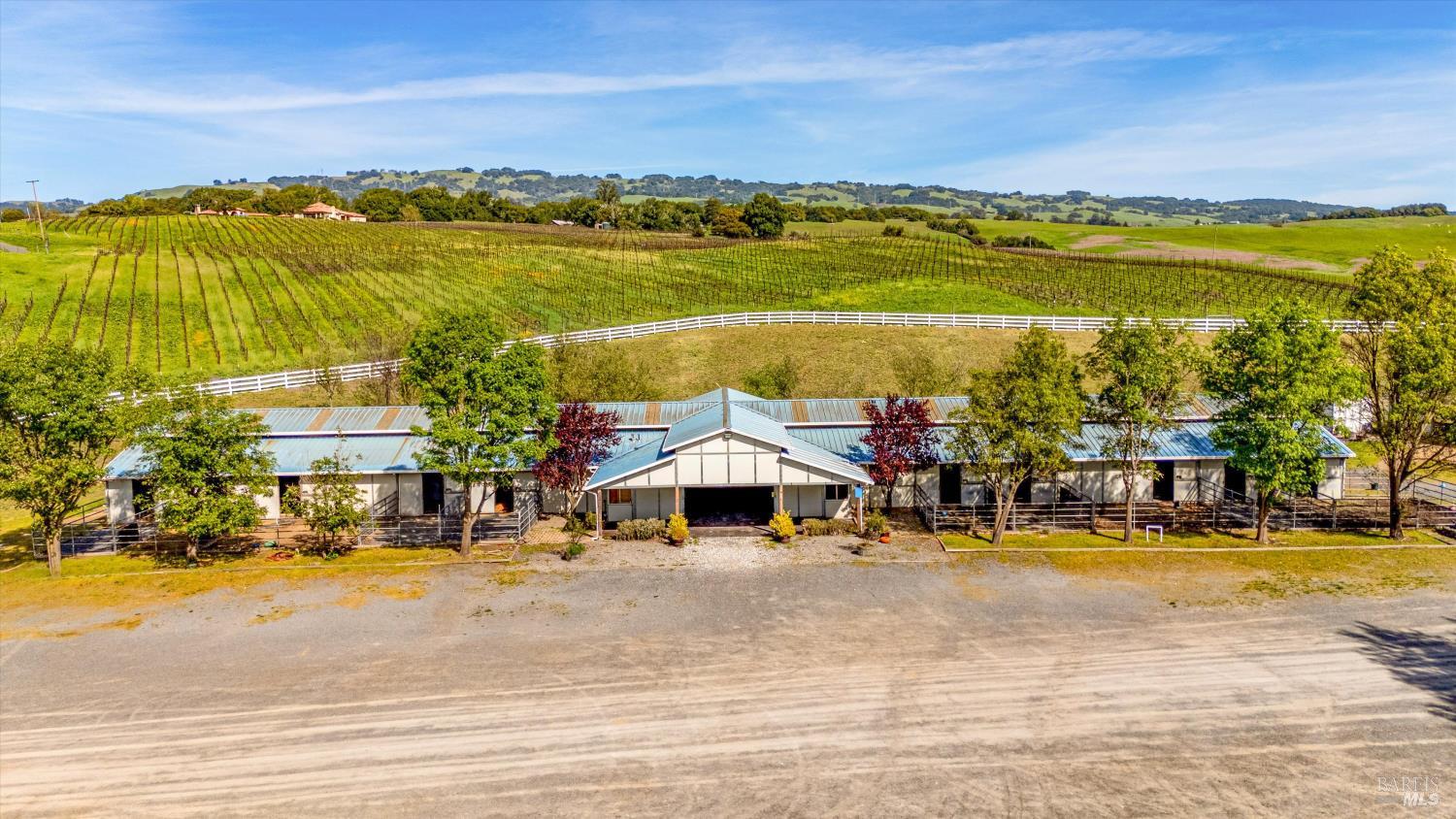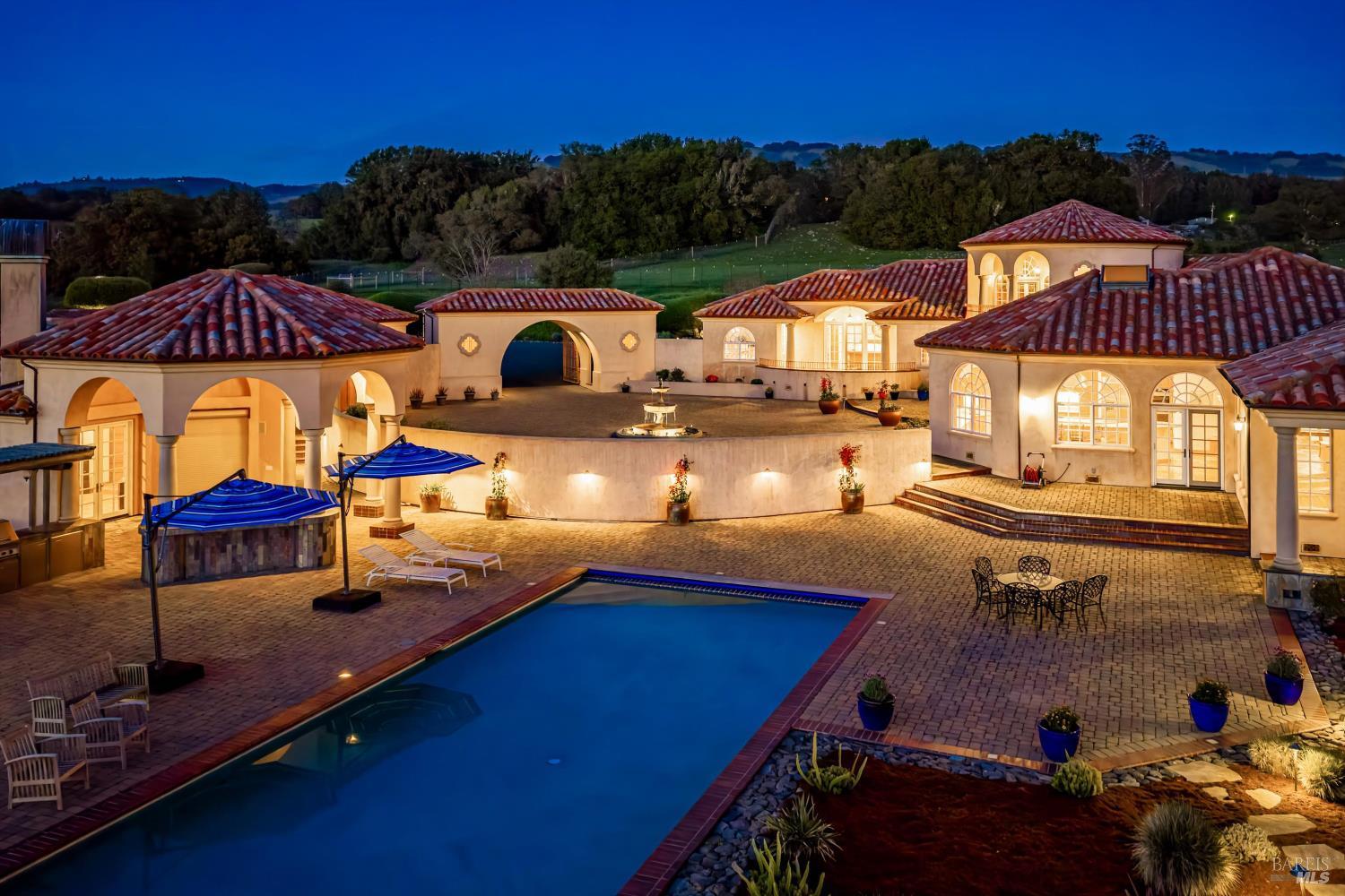 The EqWine Estate is a rare harmony of land, legacy, and lifestylewhere the art of world-class winemaking meets the grace of elite equestrian sport. Set across 42 rolling acres in the celebrated Petaluma Gap AVA, the estate's 16 acres of Pinot Noir vines thrive in the coastal air, producing consistently acclaimed 90+ point wines. At the heart of the property lies a premier equestrian facility of remarkable scale and sophistication, offering 68 stalls, indoor and outdoor arenas, and an array of refined training amenities. Thoughtfully integrated living quarters for trainers and staff ensure seamless daily operations. The contemporary hacienda-style residence unfolds across more than 5600+-square feet plus a 466 sq ft 3000 bottle wine cellar. Across the courtyard is a private 1350+-sq ft two-bedroom three bath guest house, blending understated elegance with effortless comfort. Beyond the home, a resort-style pool and terrace invite long afternoons and unforgettable evenings, as the sun melts into the horizon and paints the sky in the golden hues of Wine Country.