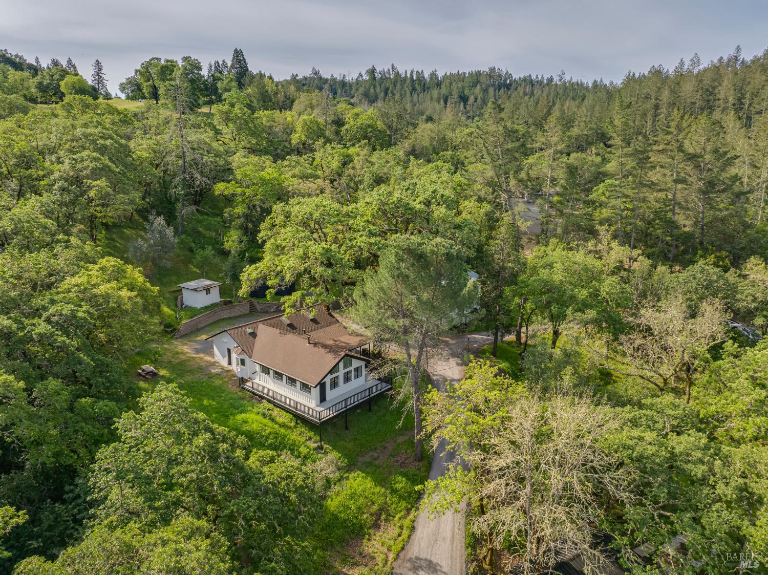 3700 Calistoga Road, Santa Rosa, Ca 95404 (16 acres, APN: 120-210-044-000). 3944 Porter Creek Road, Santa Rosa, Ca 95404 (6 acres, APN: 120-210-043-000). 22 acres total. 2 parcels sold together. 1 shared septic system for both homes. Main Home (single-story 1,715 square feet of living space - see iGuide floorplan): remodeled w/2 bedrooms, 1 bathroom w/custom tile. Chef's gourmet kitchen w/stainless-steel appliances w/hood, granite slab countertops, custom shaker-style cabinets and hammered copper sinks and copper faucets. Three heat sources: Mini-split, gas fireplace, electric fireplace (heat & A/C). Primary bedroom has large walk-in closet and electric fireplace. Wrap-around deck on three sides of home w/beautiful views. Recessed and custom lighting, skylights, open beam cathedral ceilings. Interior and exterior recently re-painted. Second home (two-story 1,092 square feet of living space - see iGuide floorplan): 1 bedroom, 1 bathroom w/downstairs room plus laundry in unfinished area on lower level. Newer furnace plus mini split. Interior and exterior recently re-painted. Stainless-steel appliances, cherry cabinets, laminate floors, spiral staircase, French glass doors, recessed lighting and wood stove. Houses 1 & 2 share 200-amp electrical service (100 amps each). Additional 200-amp electrical service on Porter Creek parcel w/cement slab. 4,500 square foot shop w/400-amp power plus water. 800 amps total for entire property. Two wells (both on Porter Creek parcel). 10,000-gallon water storage tank on top of hill where second well is located (lower production well). Gravel road to top of hill to access second well and 10,000-gallon water storage tanks. Two 5,000-gallon water storage tanks near homes (one 5,000-gallon water tank is treated reverse osmosis). Additional 1,000-gallon water tank near well #1 at bottom of property (pumped up hill w/booster pump into 10,000-gallon water tank is located near well #2 at top of hill. Then water is gravity fed down to 5,000-gallon water tank w/reverse osmosis treatment). Two storage sheds (1 fully enclosed). Two propane tanks (owned). Verizon for service (Internet from main house to 4,500 sq ft shop via Ethernet cable in conduit). Additional building w/water, gas, electricity and insulation.