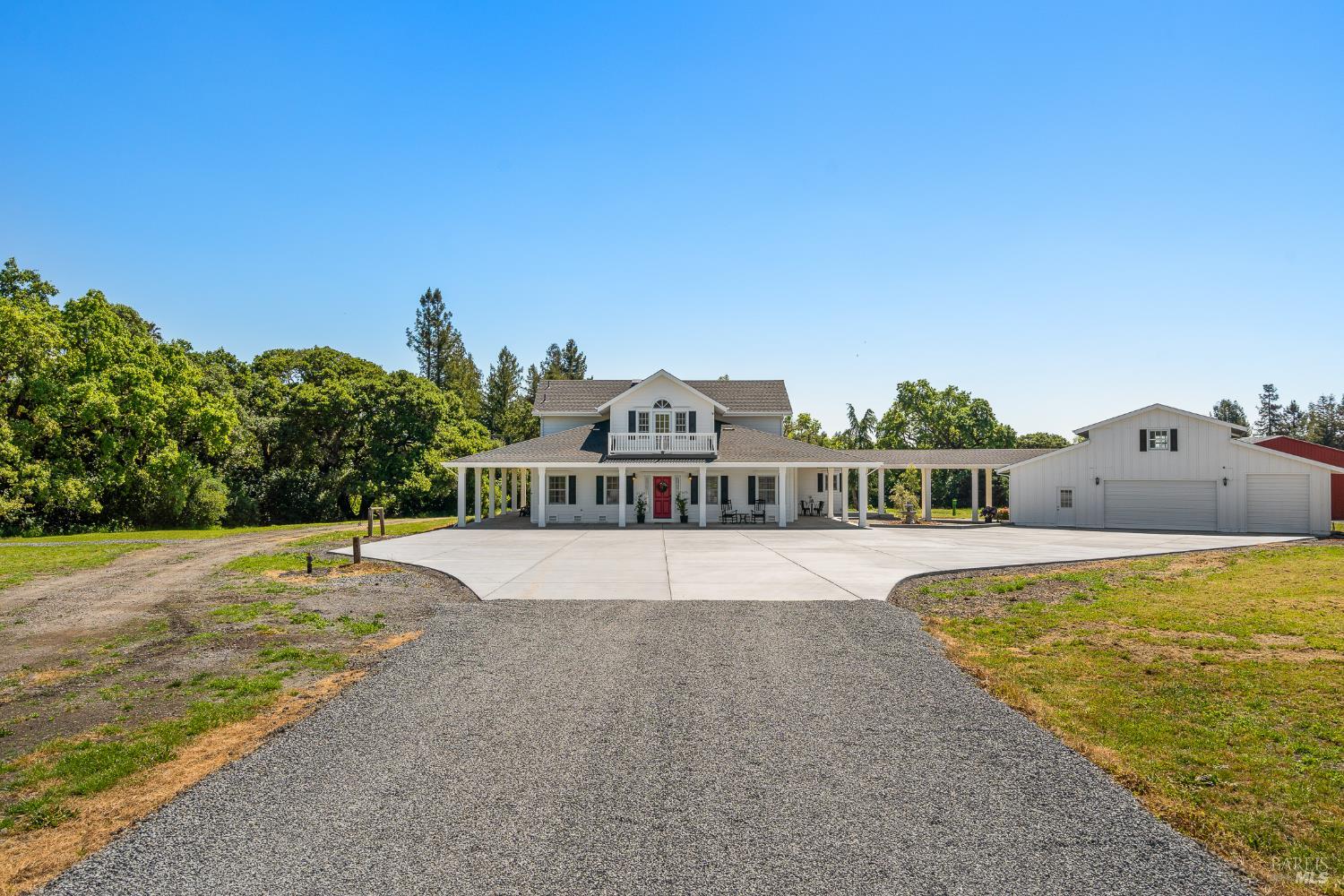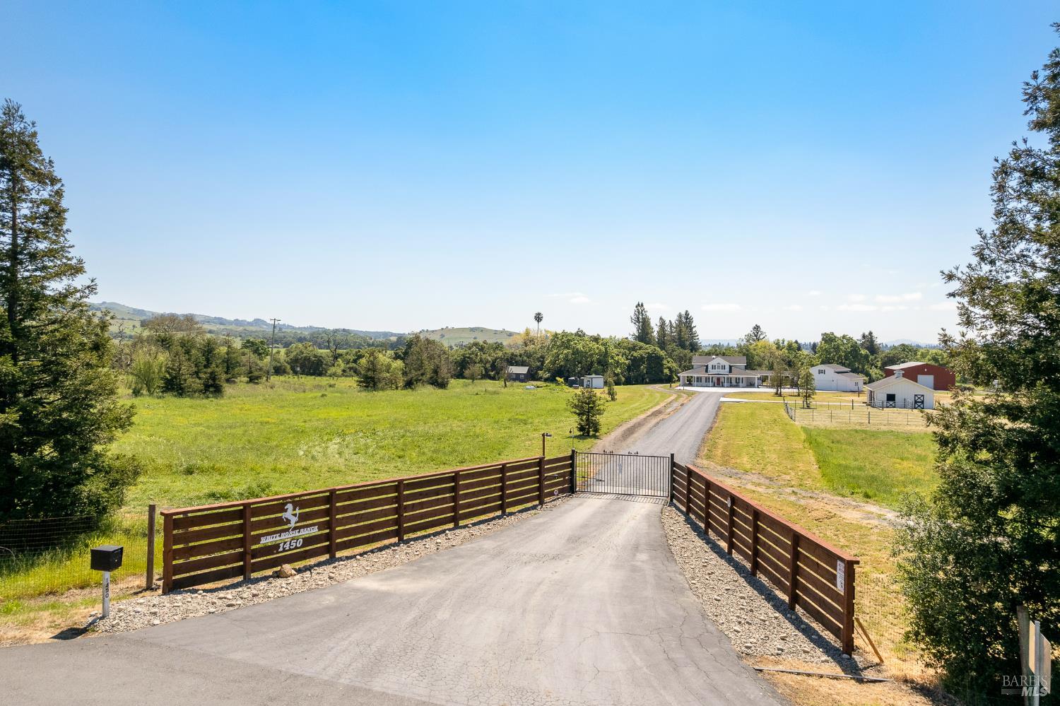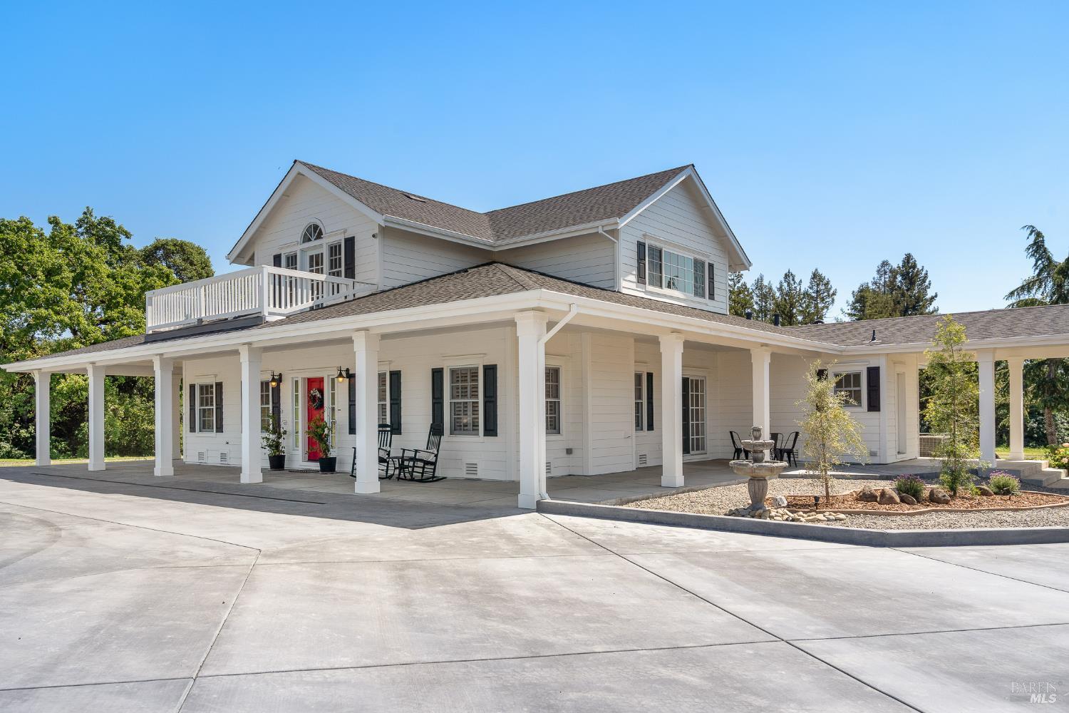 Welcome to White Horse Ranch, a beautiful country property situated on over 10+ usable acres in a sought-after Sonoma County setting. Blending timeless farmhouse charm with modern efficiency, this gated retreat offers space, versatility, and a lifestyle that feels both elevated and grounded. Extensively renovated, the home is thoughtfully designed for comfort and functionality. A main-level primary suite offers ease of living, while a second upstairs suite with a private balcony creates a peaceful escape. The updated kitchen features Viking appliances and new suede quartz countertops with a full backsplash. Hardwood floors, plenty of natural light and a fireplace add warmth to the living spaces. Enjoy the wrap-around porch, perfect for taking in the view of the hills, backdrop of trees and perimeter landscaping with a nearby water fountain adding to the ambiance. The grounds are equally compelling. A classic white barn with three stalls and tack room serves as the focal point for equestrians, surrounded by expansive, level land ideal for horses, a hobby vineyard, or an orchard. A pond, fruit trees, and garden beds enhance the natural beauty and sense of tranquility, creating an environment that invites both relaxation and outdoor activities. Additional highlights include a 3-car garage, a massive 3,000-square-foot shop, and a detached cottage well-suited for guests, a studio, or an office. All recent home improvements are complemented by energy-efficient upgrades including a new roof, insulation, whole-house fan, and a newly installed well system with 12.5 GPM, 5,000-gallon storage tank, UV filtration, and water softener. A full list of features and additional property details are outlined in the property brochure, including information regarding insurability outside of the California Fair Plan. While the location offers a rural feel, you're still just a short distance from local shops, dining, and everyday conveniences.