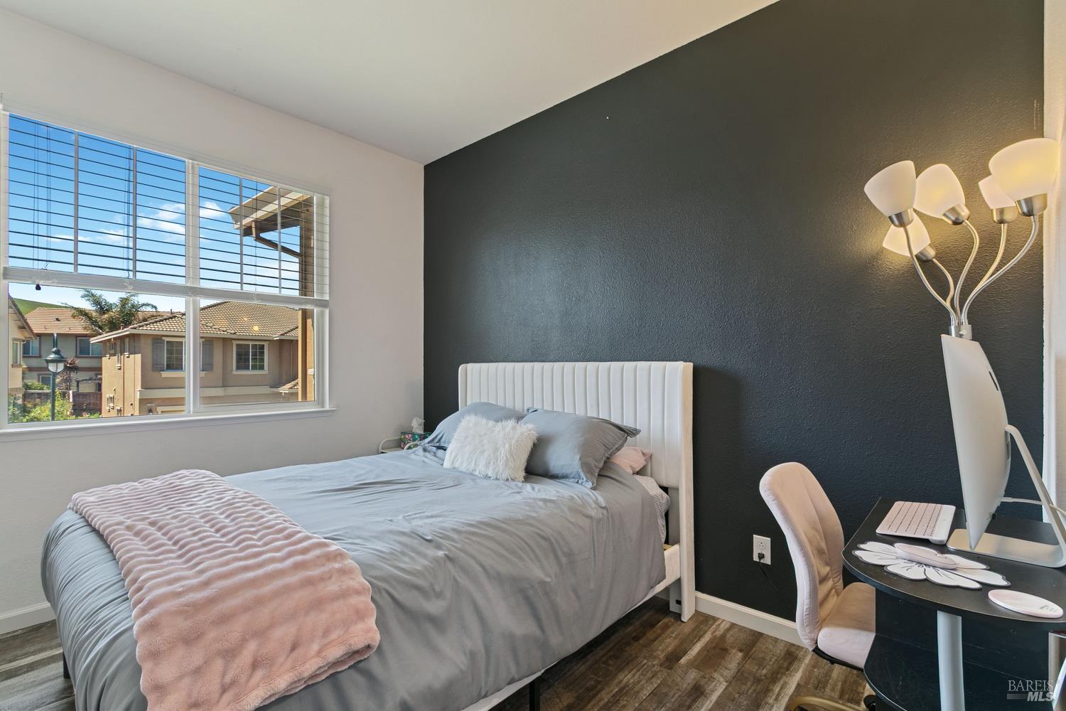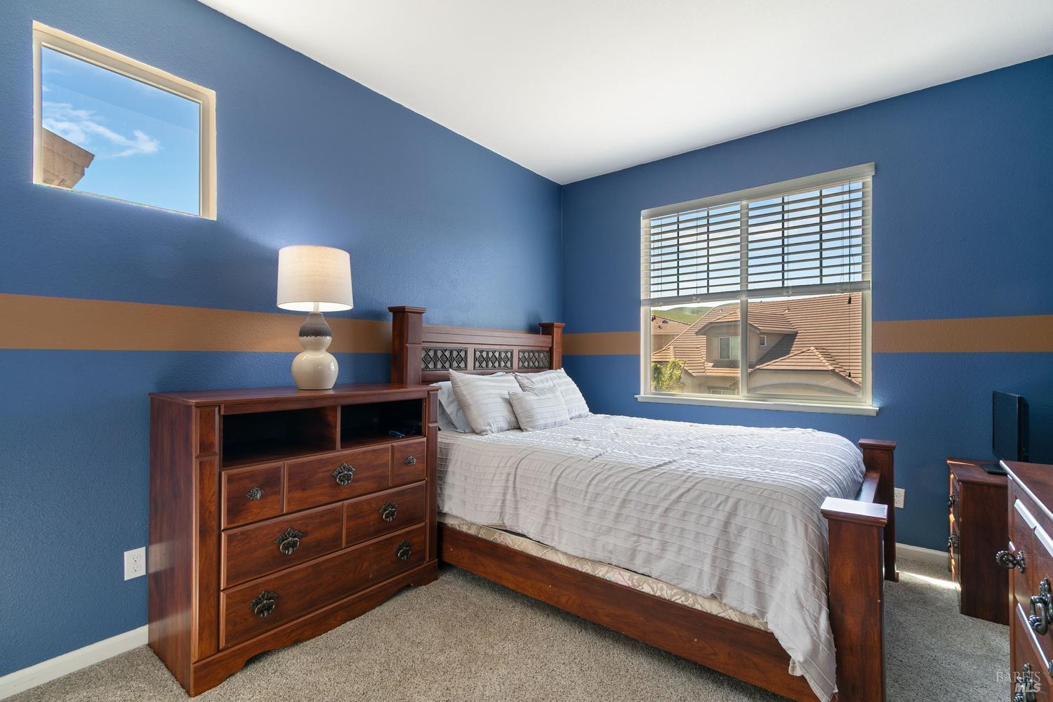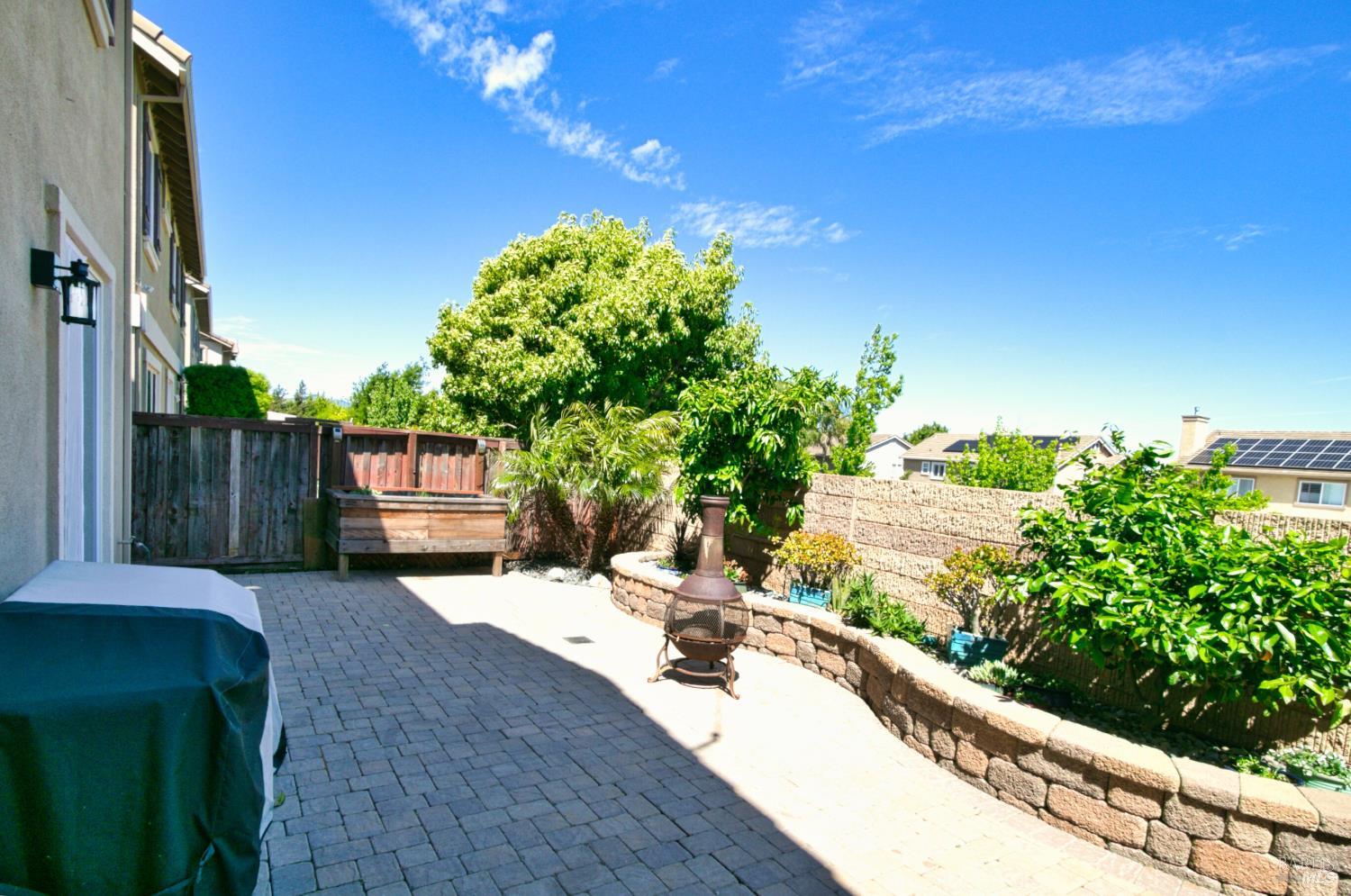 Welcome to 2126 Yellow Rose Circle, a spacious and thoughtfully designed Fairfield home offering comfort, flexibility, and modern convenience in one of Cordelia's desirable commuter-friendly locations. Built in 2015, this 5-bedroom, 3-bath residence features approximately 2,951 square feet of living space with an open, airy layout and vaulted ceilings that create an immediate sense of scale and light. Inside, newer flooring adds a fresh, updated feel throughout the home, while the versatile floor plan is designed to adapt to the way people live today. A main-level bedroom and full bathroom provide excellent flexibility for guests, extended family, or a private home office setup. Upstairs, the expansive loft offers even more room to spread out, making it ideal for a second living area, media room, game room, study zone, or creative workspace. The generously sized primary suite serves as a true retreat, complete with a spacious en-suite bath and a large soaking tub designed for everyday comfort and relaxation. The home also includes central heat and air, a family room fireplace, luxury vinyl plank flooring, dishwasher, hookups for laundry, and a 2-car garage. Owned solar adds energy efficiency and long-term value, helping support more sustainable living and lower utility costs. Step outside to a low-maintenance backyard designed for easy enjoyment. With no rear neighbors, the outdoor space offers added privacy, while the hot tub creates a relaxing place to unwind at the end of the day or enjoy quiet evenings at home. This is a property that balances indoor comfort with outdoor ease, giving homeowners a practical and inviting place to live, gather, and recharge. Located in Fairfield's Cordelia area, this home is positioned near parks, walking trails, schools, and major commuter routes, making it especially appealing for those who want both neighborhood convenience and quick highway access. Cordelia is known for its strategic location between the Bay Area and Sacramento region, giving residents the benefit of accessibility while still enjoying a more residential setting.