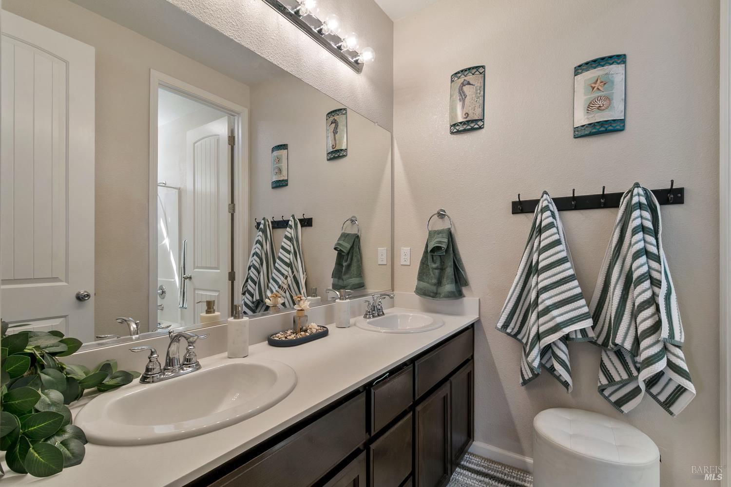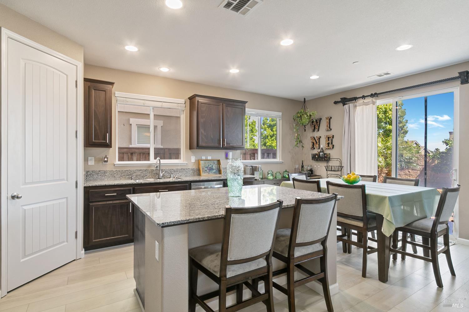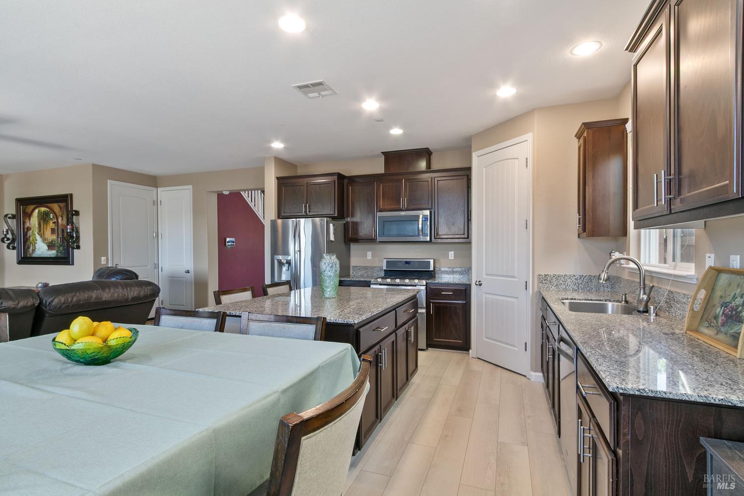 Welcome to 2126 Yellow Rose Circle, a spacious and thoughtfully designed Fairfield home offering comfort, flexibility, and modern convenience in one of Cordelia's desirable commuter-friendly locations. Built in 2015, this 5-bedroom, 3-bath residence features approximately 2,951 square feet of living space with an open, airy layout and vaulted ceilings that create an immediate sense of scale and light. Inside, newer flooring adds a fresh, updated feel throughout the home, while the versatile floor plan is designed to adapt to the way people live today. A main-level bedroom and full bathroom provide excellent flexibility for guests, extended family, or a private home office setup. Upstairs, the expansive loft offers even more room to spread out, making it ideal for a second living area, media room, game room, study zone, or creative workspace. The generously sized primary suite serves as a true retreat, complete with a spacious en-suite bath and a large soaking tub designed for everyday comfort and relaxation. The home also includes central heat and air, a family room fireplace, luxury vinyl plank flooring, dishwasher, hookups for laundry, and a 2-car garage. Owned solar adds energy efficiency and long-term value, helping support more sustainable living and lower utility costs. Step outside to a low-maintenance backyard designed for easy enjoyment. With no rear neighbors, the outdoor space offers added privacy, while the hot tub creates a relaxing place to unwind at the end of the day or enjoy quiet evenings at home. This is a property that balances indoor comfort with outdoor ease, giving homeowners a practical and inviting place to live, gather, and recharge. Located in Fairfield's Cordelia area, this home is positioned near parks, walking trails, schools, and major commuter routes, making it especially appealing for those who want both neighborhood convenience and quick highway access. Cordelia is known for its strategic location between the Bay Area and Sacramento region, giving residents the benefit of accessibility while still enjoying a more residential setting.