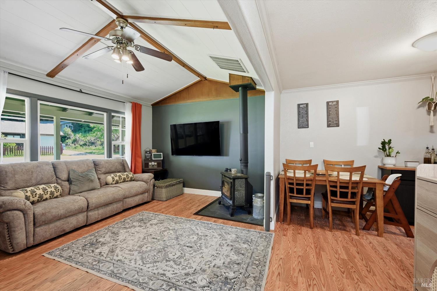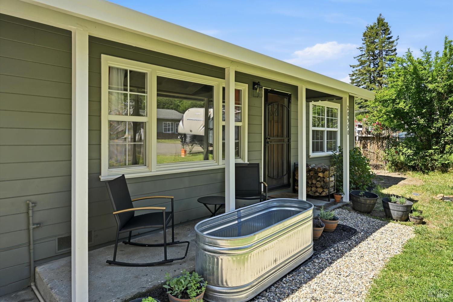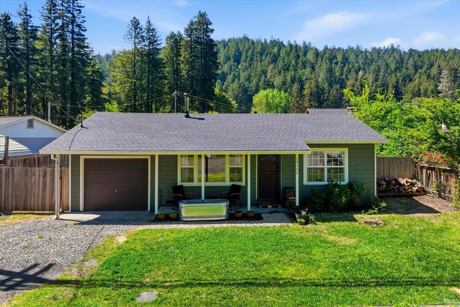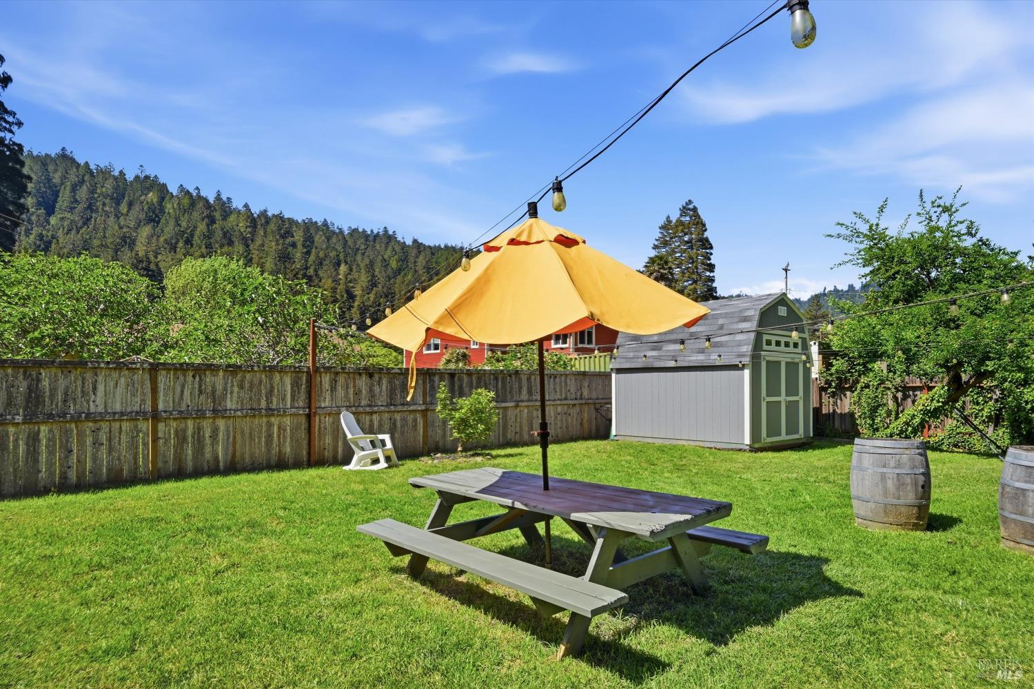 This sunny and immaculate 2-bedroom home captures the essence of the West County lifestyle while offering modern peace of mind. Recent upgrades include a brand-new roof and fresh exterior paint, enhancing the home's strong curb appeal. Set on a rare, level, sun-filled lot, the property features a spacious, wood-fenced backyard designed for entertaining, complete with fruit trees, outdoor lighting and a large storage shed. Inside, the welcoming living room is highlighted by a large picture window and a cozy wood stove. The dining area flows into a generously sized kitchen with abundant cabinetry and counter space, along with a convenient adjacent laundry area. The well-designed floor plan includes a primary suite with direct access to the backyard and a bright, charming second bedroom filled with natural light. The bathroom offers a shower-over-tub and ample storage. Additional amenities include an attached one-car garage with interior access, a gravel driveway for extra parking, and plentiful street parking. Ideally located with proximity to Sonoma County's outdoor recreation, this home is just 0.3 miles from Monte Rio Beach along the Russian River for kayaking, fishing and other beach activities, and approximately 4 miles from Guerneville for shopping and restaurants, and Armstrong Woods for hiking and scenery. Come see the incredible lifestyle that this home has to offer.