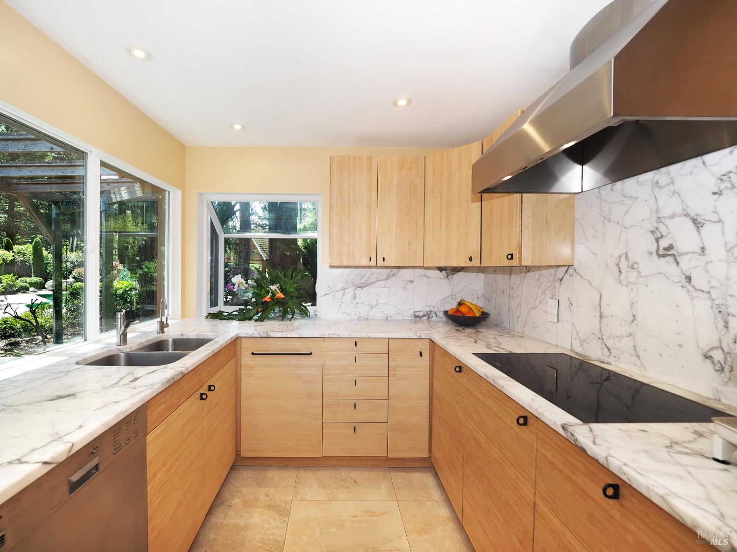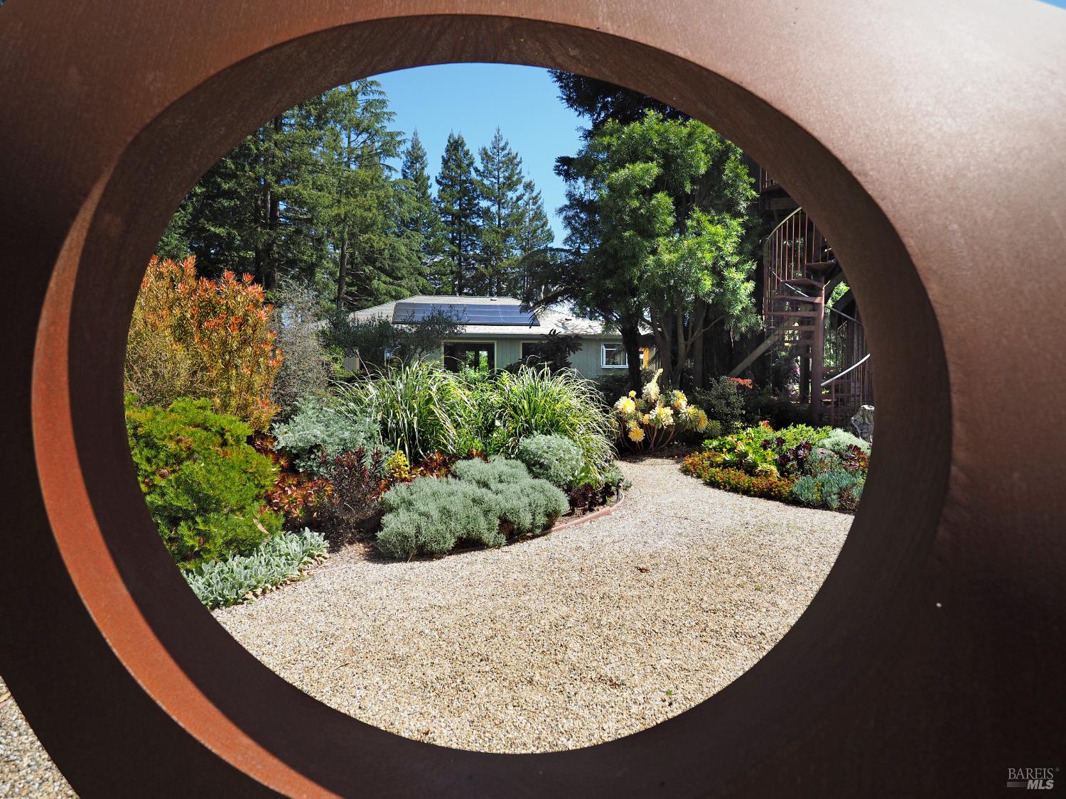 Design Sustainability and Nature converge. Brilliance is an appropriate place to begin when describing this intentionally designed Single level home, ideally situated in the highly regarded Banana Belt atop Gold Ridge Road. Every improvement has been carefully evaluated, researched, and selected to meet exacting standards for quality, sustainability, environmental responsibility, and everyday practicality. The home is designed to maximize electrification and productivity, supported by 20 high efficiency SunPower solar panels and 12 Tesla solar panels. Three Tesla Powerwall battery backups provide piece of mind for power outages plus reliable energy for the Gaggenau electric range, Miele induction cooktop, dishwasher, and even the commercial-grade washer and counter rotating, reverse drying, dryer. The kitchen is further enhanced by a Sub Zero refrigerator, artisan crafted custom bamboo cabinetry, and Calacatta marble countertops. The primary bathroom redefines luxury through thoughtful design, featuring Carrera marble, custom bamboo cabinetry, and premium fixtures and appliances sourced from France, Germany, and Switzerland. While the interior reflects a refined balance of sophistication and responsible living, the true centerpiece of the property is the extraordinary Garden. Spanning approximately 0.82 acres, the landscape showcases hundreds of plant species from around the world, thoughtfully arranged in curated collections. Surrounded by redwoods and cedars, the setting offers exceptional privacy and tranquility. At day's end, the solar heated saltwater pool, maintained by a robotic cleaning system provides an ideal place to unwind. With multiple outdoor spaces, complimented by a poolside patio, expansive rear deck, and a 15 foot lookout tower, there are numerous vantage points from which to settle, enjoy the sunsets, and a glass of fine wine on the ridge at Gold Ridge. This is more than a home, it is a refined lifestyle, blending innovation, sustainability, and timeless elegance in one of the ridge's most desirable settings.
