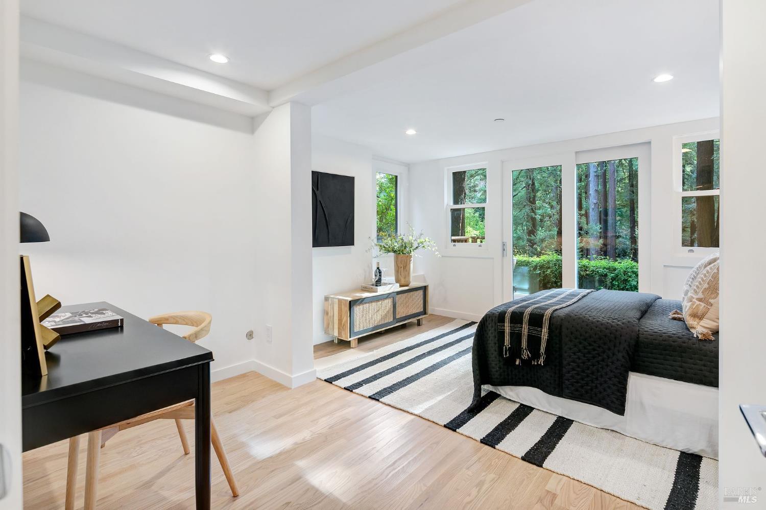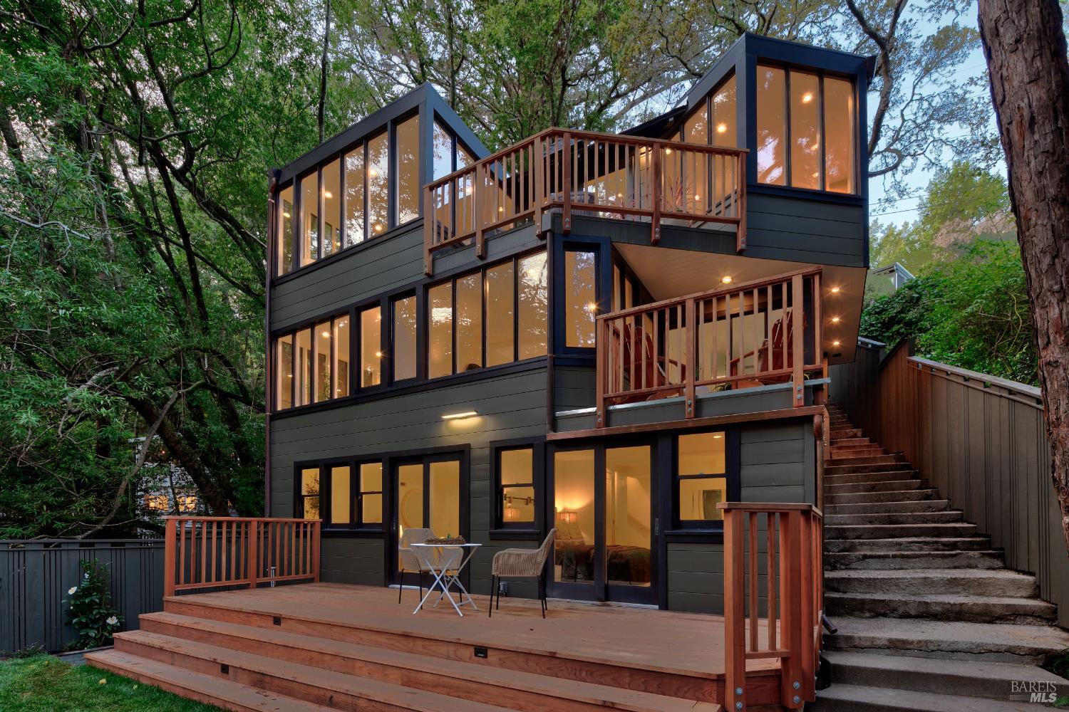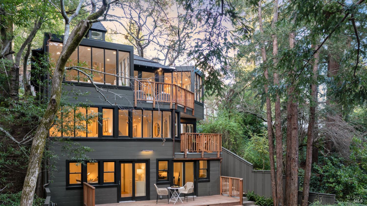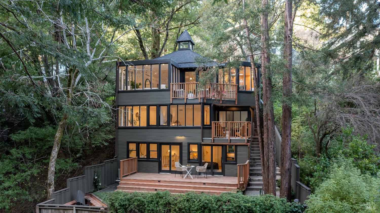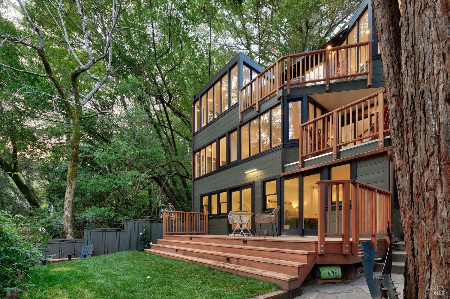 This stunning modern home, originally designed as renowned architect Jared Polsky's personal residence, is fully remodeled inside and out and set among the towering redwoods of Lower Madrone Canyon. The open floor plan seamlessly blends the living, dining, and kitchen areas, making it ideal for entertaining or relaxing. Spacious bedrooms provide comfort and privacy, while spa-inspired bathrooms offer a serene retreat. Step onto expansive decks from multiple levels to enjoy the fresh air, or explore the lush landscaping surrounding the home. The private flat grass yard is perfect for kids or pets to play. With its desirable location, impeccable craftsmanship, tranquil natural setting, and architectural pedigree, this home offers a rare and compelling lifestyle that must be experienced in person. Property images from 2024 listing. Currently tenant occupied.