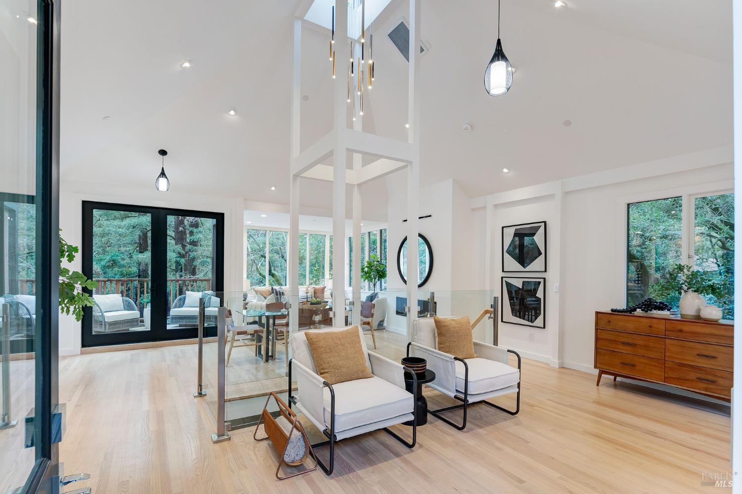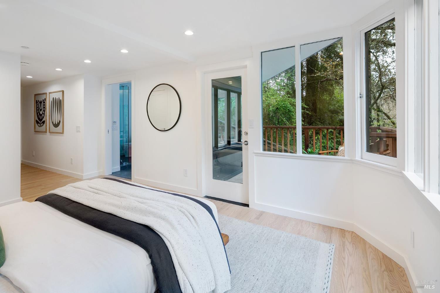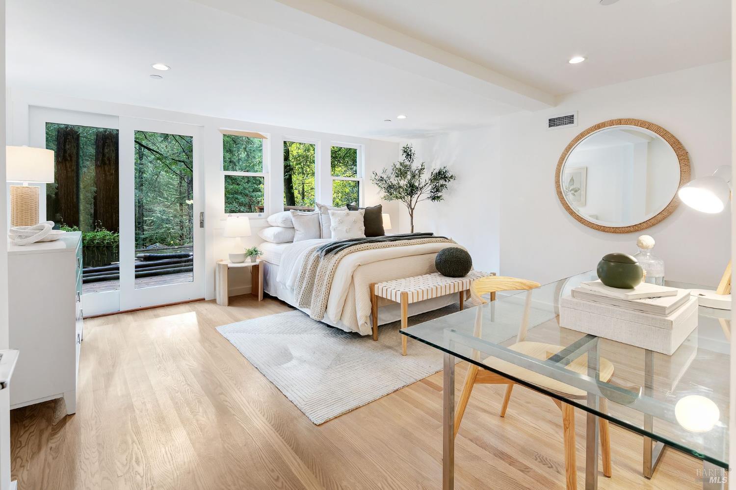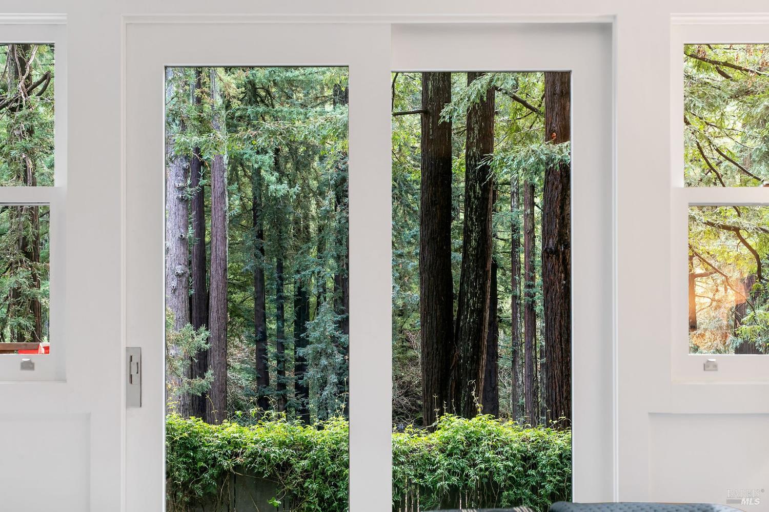 This stunning modern home, originally designed as renowned architect Jared Polsky's personal residence, is fully remodeled inside and out and set among the towering redwoods of Lower Madrone Canyon. The open floor plan seamlessly blends the living, dining, and kitchen areas, making it ideal for entertaining or relaxing. Spacious bedrooms provide comfort and privacy, while spa-inspired bathrooms offer a serene retreat. Step onto expansive decks from multiple levels to enjoy the fresh air, or explore the lush landscaping surrounding the home. The private flat grass yard is perfect for kids or pets to play. With its desirable location, impeccable craftsmanship, tranquil natural setting, and architectural pedigree, this home offers a rare and compelling lifestyle that must be experienced in person. Property images from 2024 listing. Currently tenant occupied.
