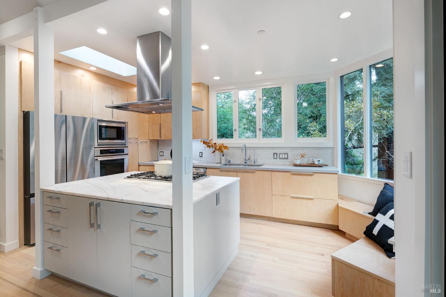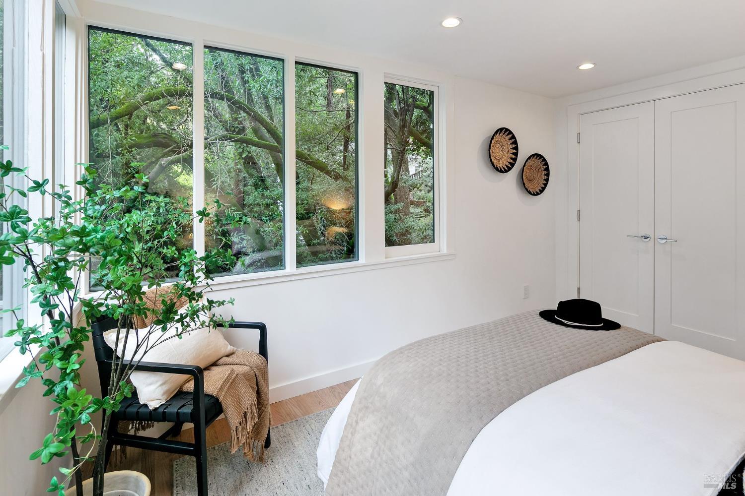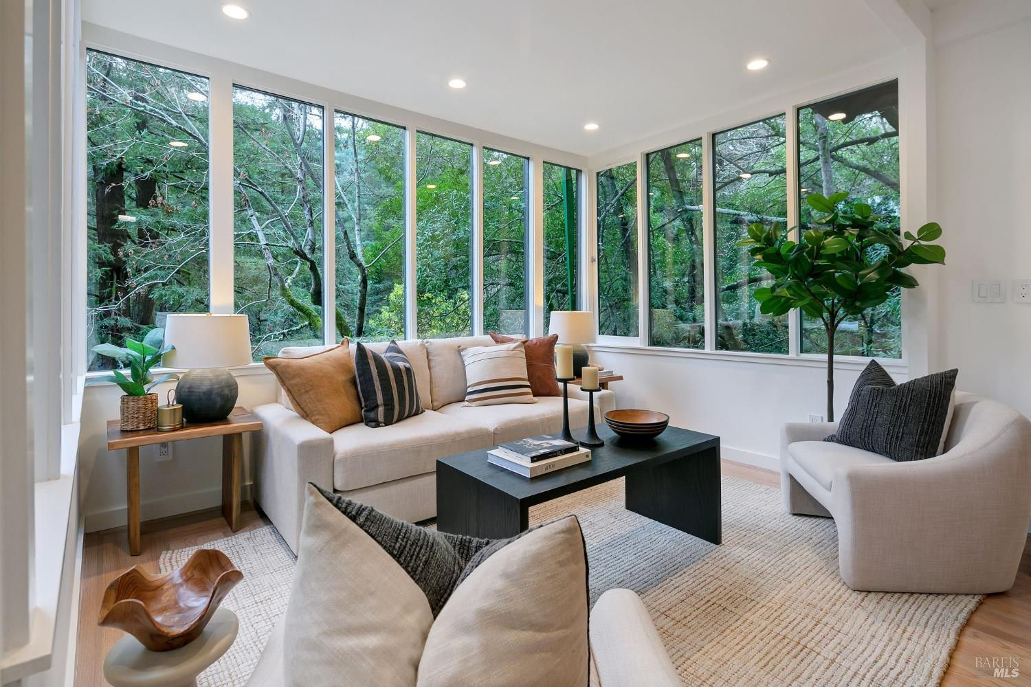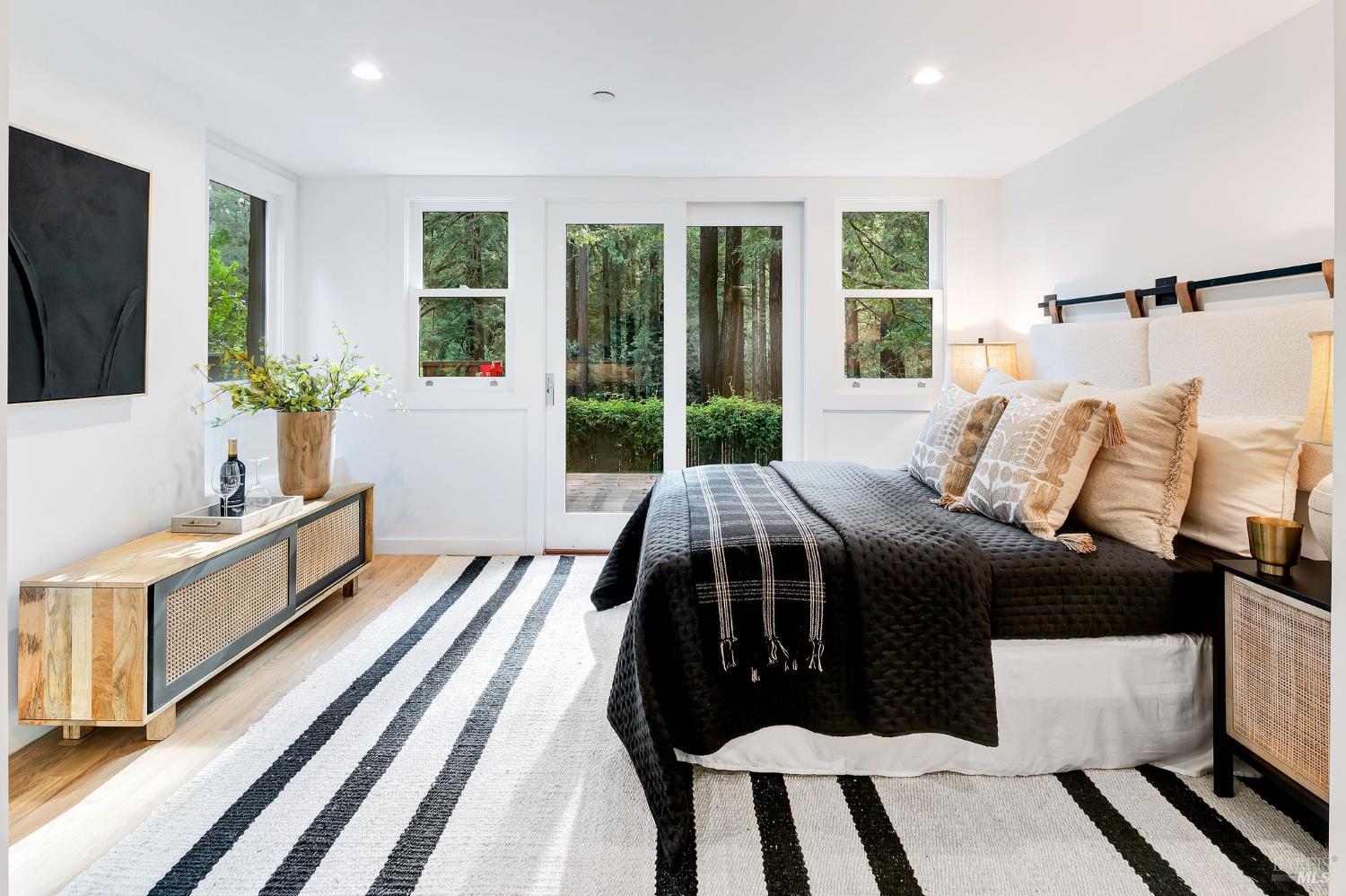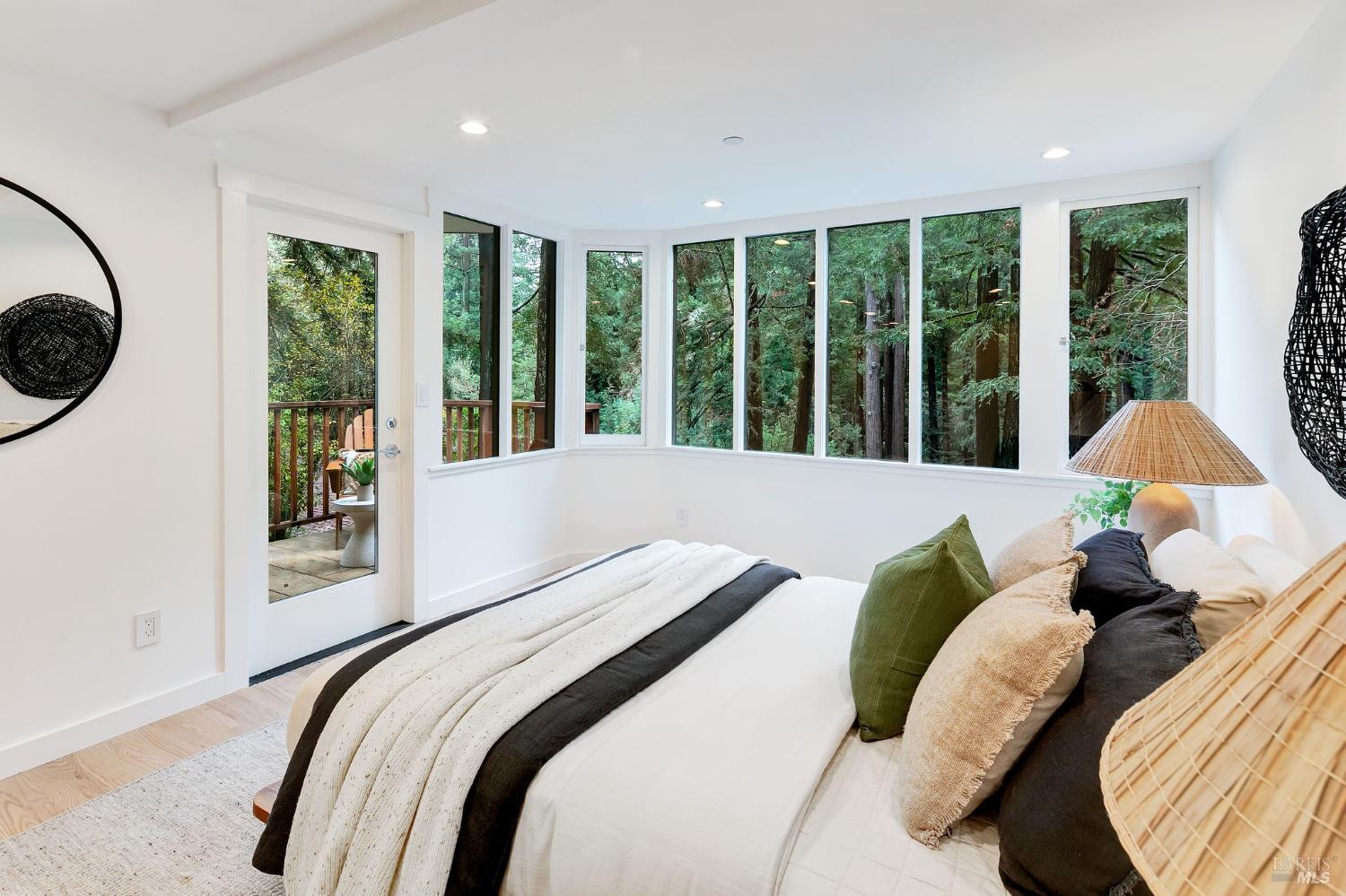 This stunning modern home, originally designed as renowned architect Jared Polsky's personal residence, is fully remodeled inside and out and set among the towering redwoods of Lower Madrone Canyon. The open floor plan seamlessly blends the living, dining, and kitchen areas, making it ideal for entertaining or relaxing. Spacious bedrooms provide comfort and privacy, while spa-inspired bathrooms offer a serene retreat. Step onto expansive decks from multiple levels to enjoy the fresh air, or explore the lush landscaping surrounding the home. The private flat grass yard is perfect for kids or pets to play. With its desirable location, impeccable craftsmanship, tranquil natural setting, and architectural pedigree, this home offers a rare and compelling lifestyle that must be experienced in person. Property images from 2024 listing. Currently tenant occupied.