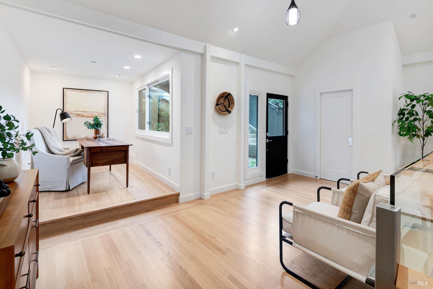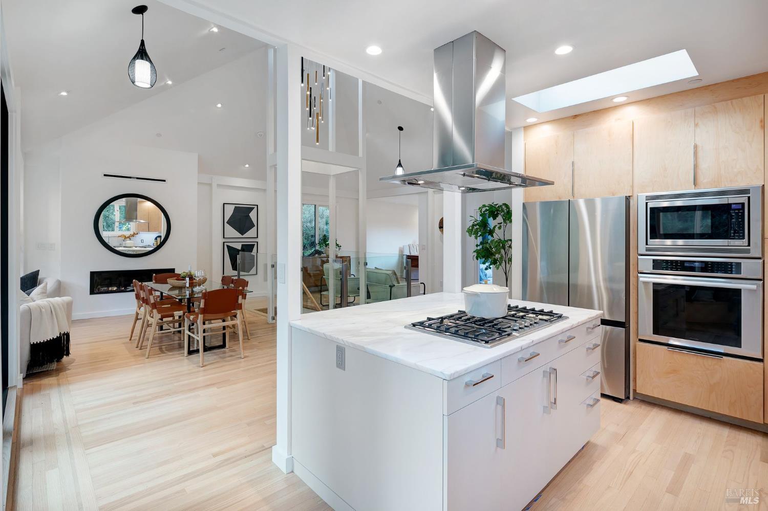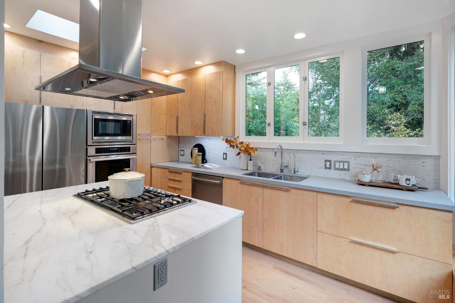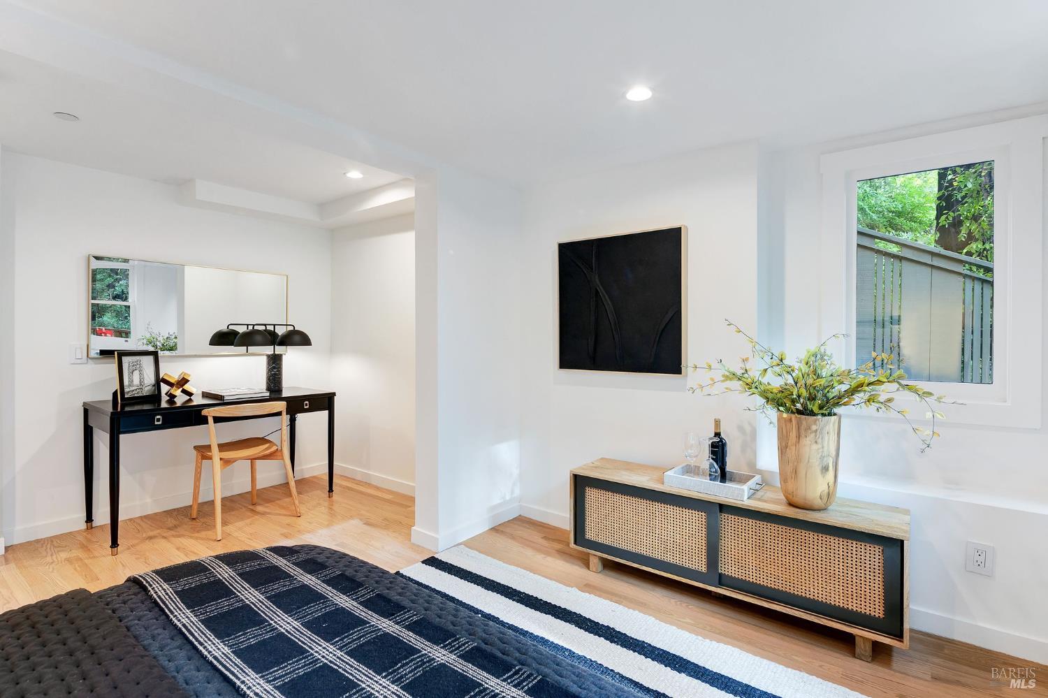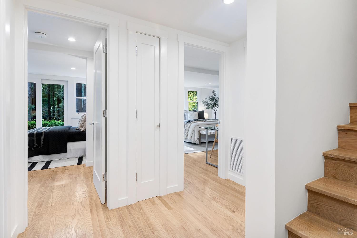 This stunning modern home, originally designed as renowned architect Jared Polsky's personal residence, is fully remodeled inside and out and set among the towering redwoods of Lower Madrone Canyon. The open floor plan seamlessly blends the living, dining, and kitchen areas, making it ideal for entertaining or relaxing. Spacious bedrooms provide comfort and privacy, while spa-inspired bathrooms offer a serene retreat. Step onto expansive decks from multiple levels to enjoy the fresh air, or explore the lush landscaping surrounding the home. The private flat grass yard is perfect for kids or pets to play. With its desirable location, impeccable craftsmanship, tranquil natural setting, and architectural pedigree, this home offers a rare and compelling lifestyle that must be experienced in person. Property images from 2024 listing. Currently tenant occupied.