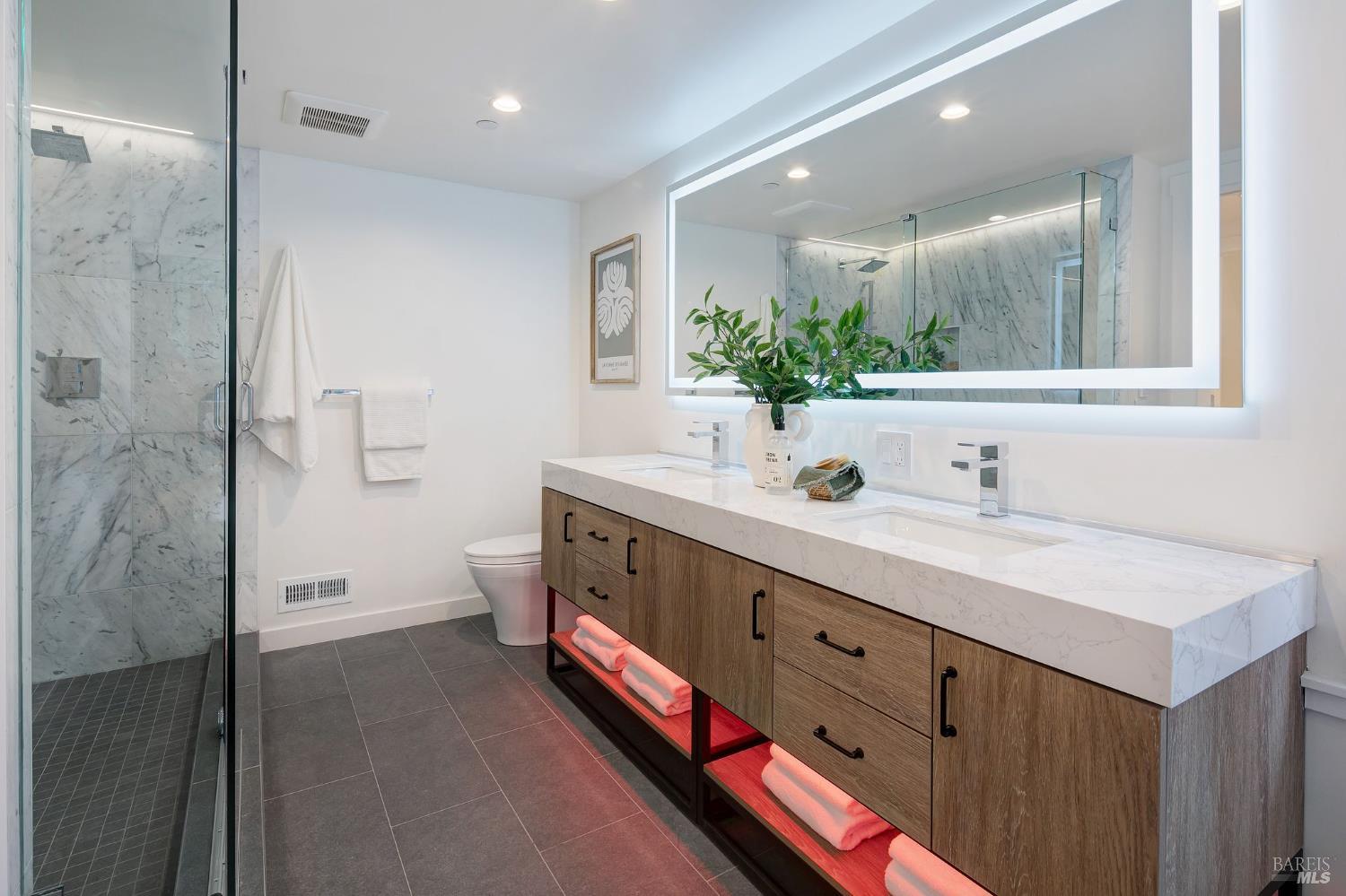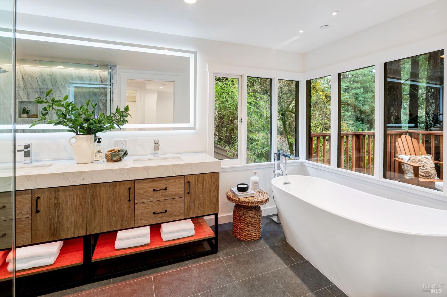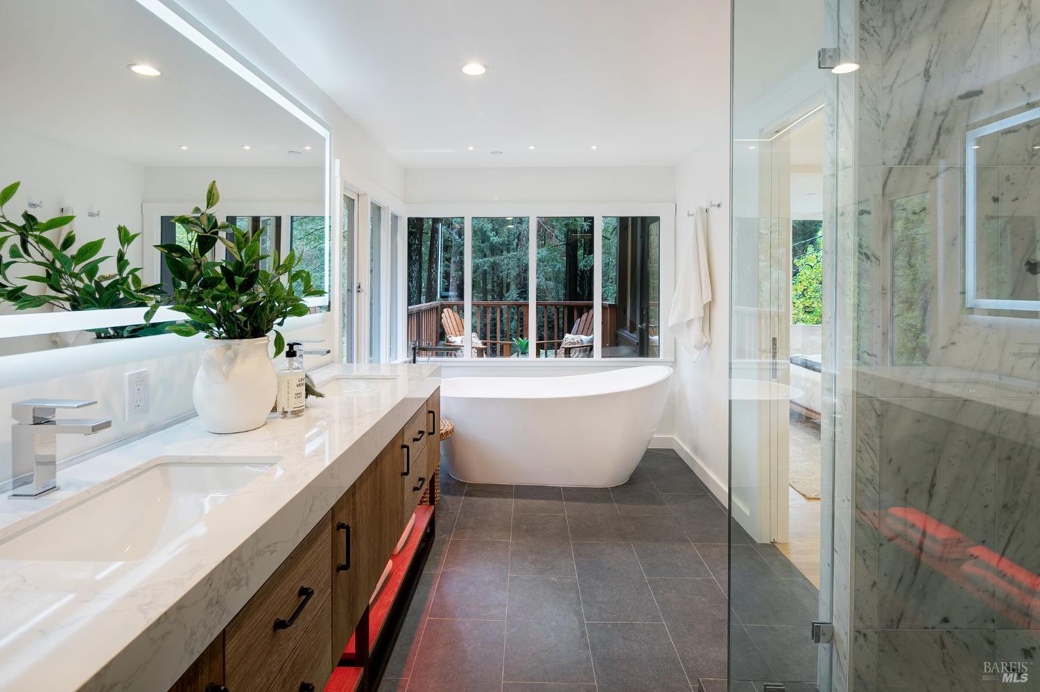 • Primary Bathroom Features Double Sinks,Shower Stall(s),Soaking Tub,Tile