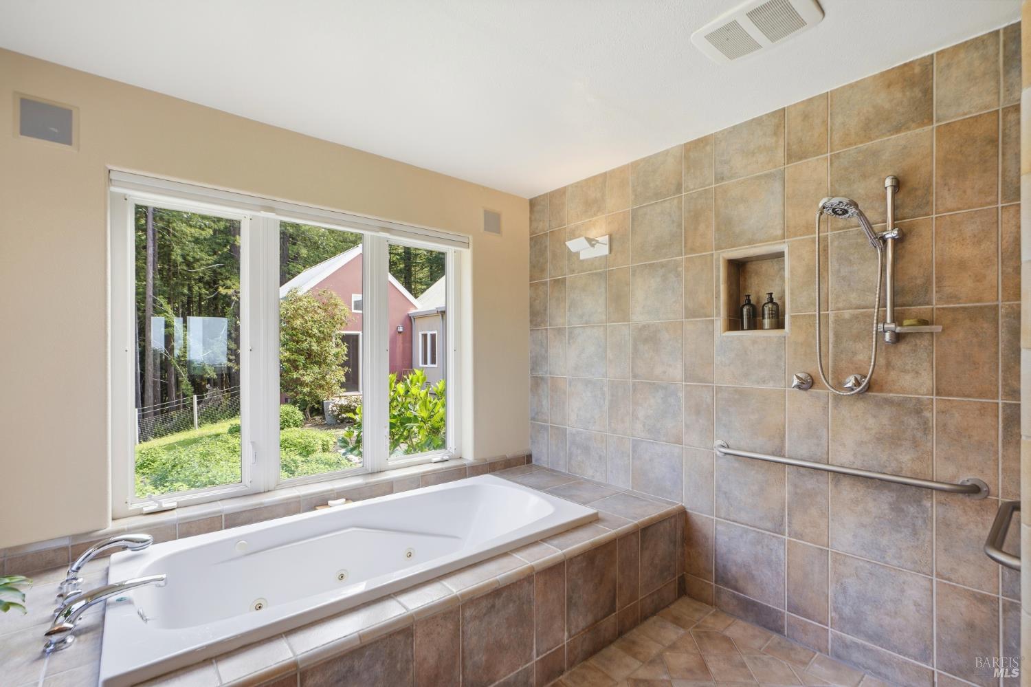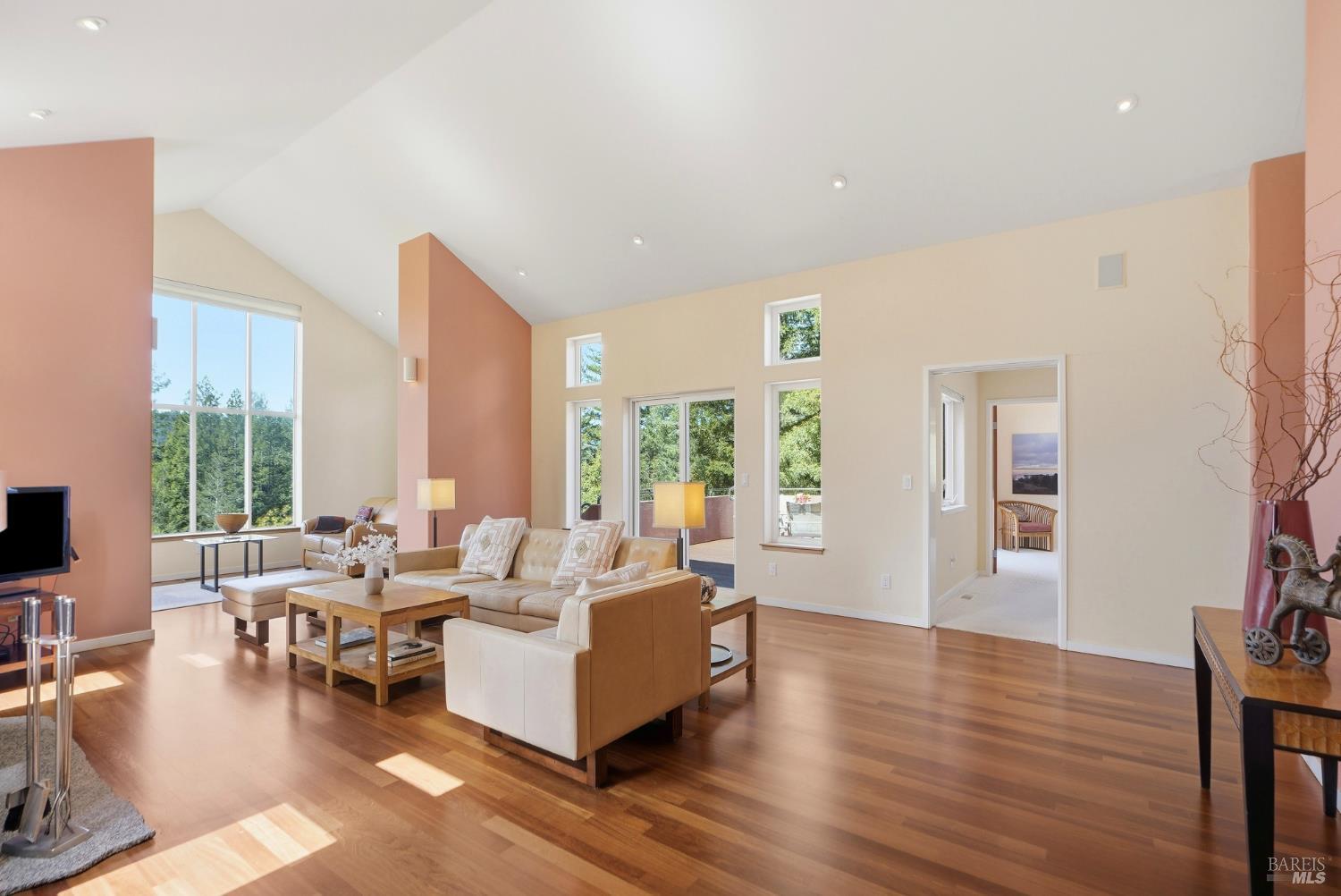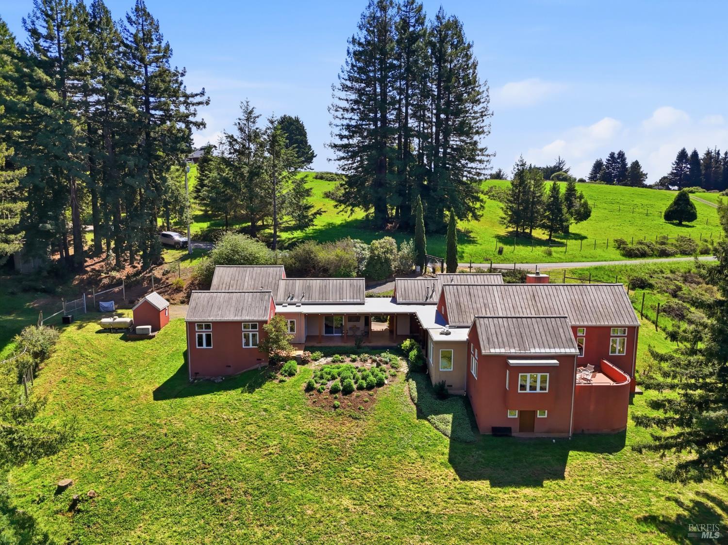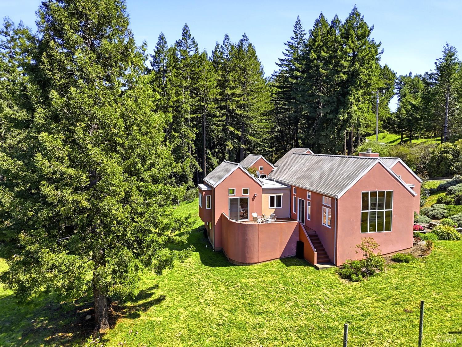 Deep Springs Ranch embodies the finest aspects of coastal living: set upon over 11 tranquil acres, with ocean, meadow and redwood forest views, is this gorgeous single-story home designed by architect Thomas Ballard. Impressive wooden double doors open to a garden oasis and a covered breezeway connecting the generous and private 2-bedroom guest suite with the main house and its spacious kitchen, dining room, living room and well laid out primary bedroom suite. The home has been meticulously maintained and is graced with beautiful details such as dramatic vaulted ceilings and flooring of exquisite Brazilian cherry wood and Italian terra cotta tiles. Large windows and glass doors throughout frame incredible views of nature, and starry skies at night. The living room, kitchen, primary bedroom, and outdoor deck all face west for spectacular sunsets over the ocean. At a more than 700-foot elevation, the home enjoys a wonderful temperate climate, often above any fog that might linger along the ocean. This remarkable property is part of the Muniz Ranches, a collection of multiacre parcels created in the 1970s. Muniz Ranches adjoins, and has private access to, the 5,600-acre Jenner Headlands Preserve with its miles and miles of hiking trails. One of many local beaches, Russian Gulch Beach, is conveniently located near the gated entrance at Highway 1. This rare and extraordinary getaway or permanent home is less than 18-miles to downtown Guerneville, less than 35-miles to Santa Rosa, and only 80-miles north of the Golden Gate.