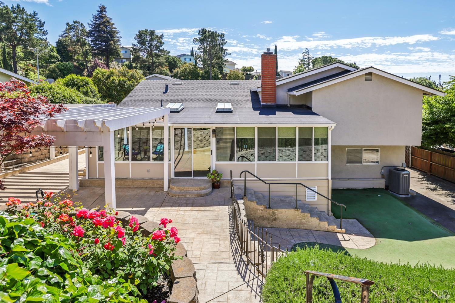 Set on a quiet court, this home has been loved and cared for by the same family for over 30 years and you can feel it the moment you walk in. The oversized lot offers a range of possibilities, including space for multi-generational living or potential ADU development (buyer to verify). The backyard is really the heart of it all. And with spring here, this is exactly the kind of space you'll want to be in! There's a putting green, a huge yard with tons of space to garden, play, or host friends, and even a peek of the Carquinez Bridge to enjoy. There's also electrical already set up for a hot tub, so if that's been on your wish list you're halfway there. The interior offers a functional layout with bright living spaces and a natural flow between main areas. Solar is installed for energy efficiency. Conveniently located near parks, schools, and just minutes to downtown Benicia, known for its waterfront, local dining, and historic charm. Come check it out and smell the roses!