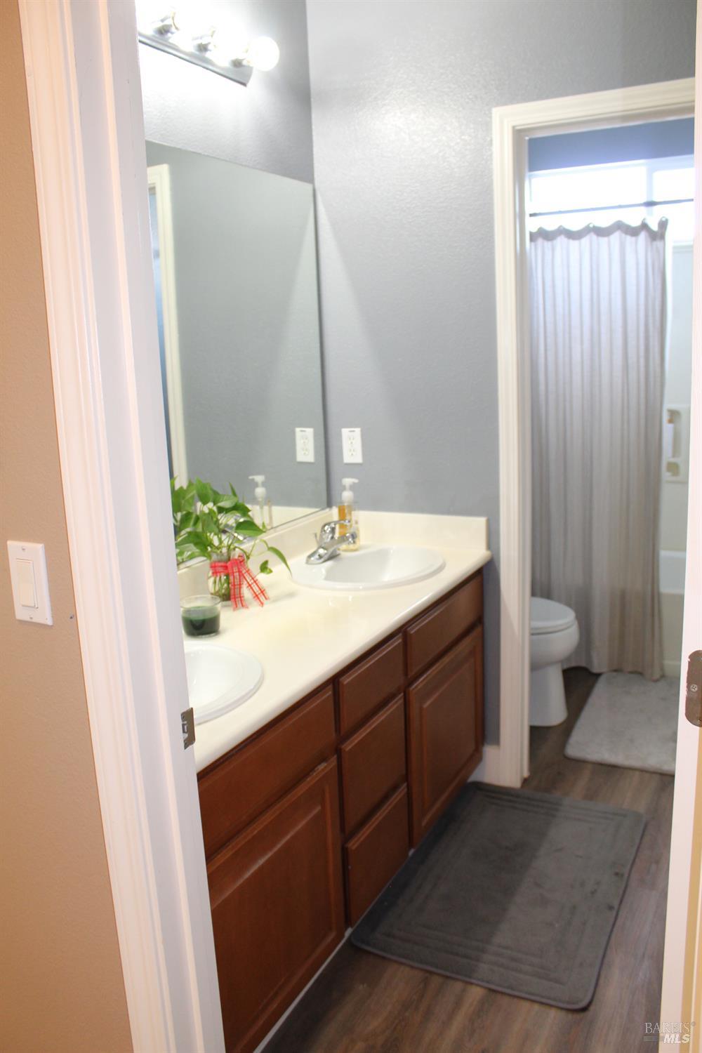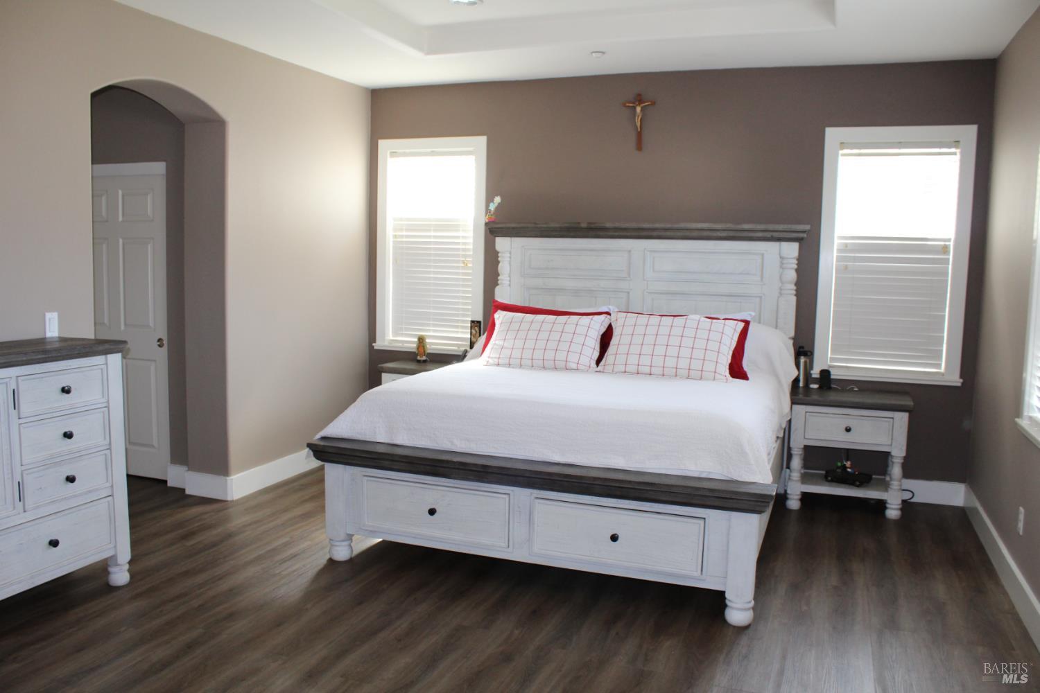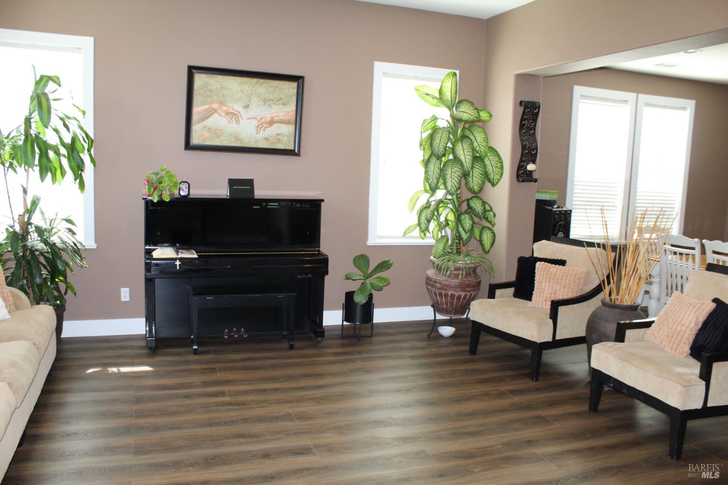 Six bedroom/three full bath beautiful, well-maintained family home in desirable location in American Canyon. Home features open lighting and open floor plan for family entertaining. There is a living room, family room w/fireplace, a formal dining area and family dining. Near kitchen area, there is a specific space for an office area. There is a section of the downstairs portion of the home, which has been sectioned off by a wood panel which can easily be removed. The private sectioned-off area includes a separate and private entrance from the outside, a kitchenette, full bathroom, and a bedroom. Main home includes the remaining four bedrooms, which are all upstairs. The primary bedroom is open and includes two walk-in closets, a sunken tub and shower. The laundry room is also located upstairs and is spacious. Home has PVC flooring throughout. The back yard features a full outside kitchen/barbeque area. There is a shed for storage and a child's playhouse. This home is in a ready-to-move-in condition.