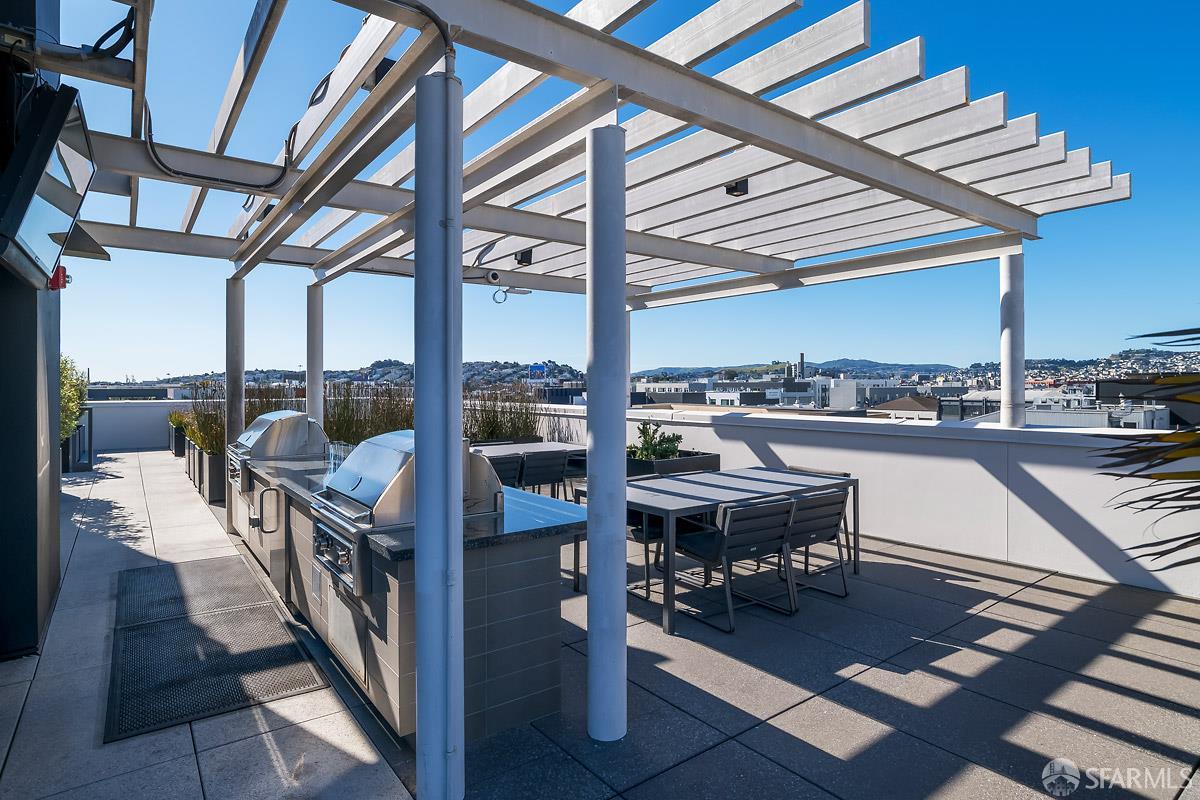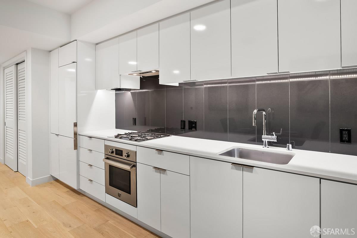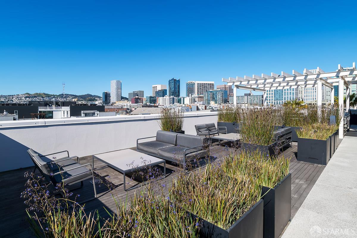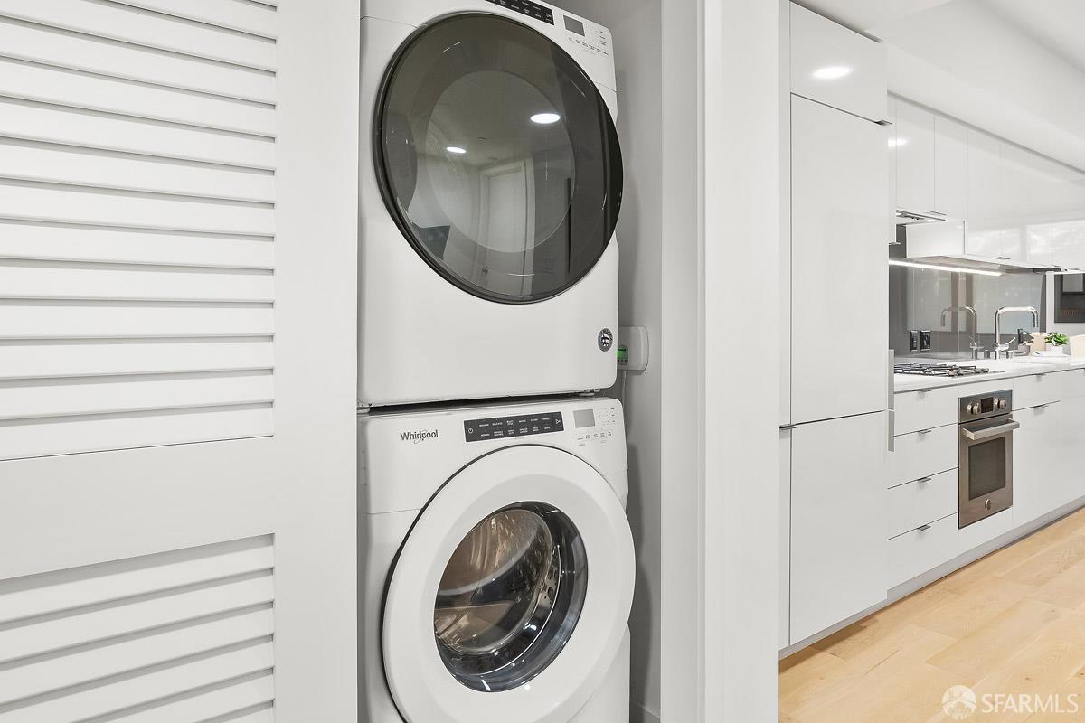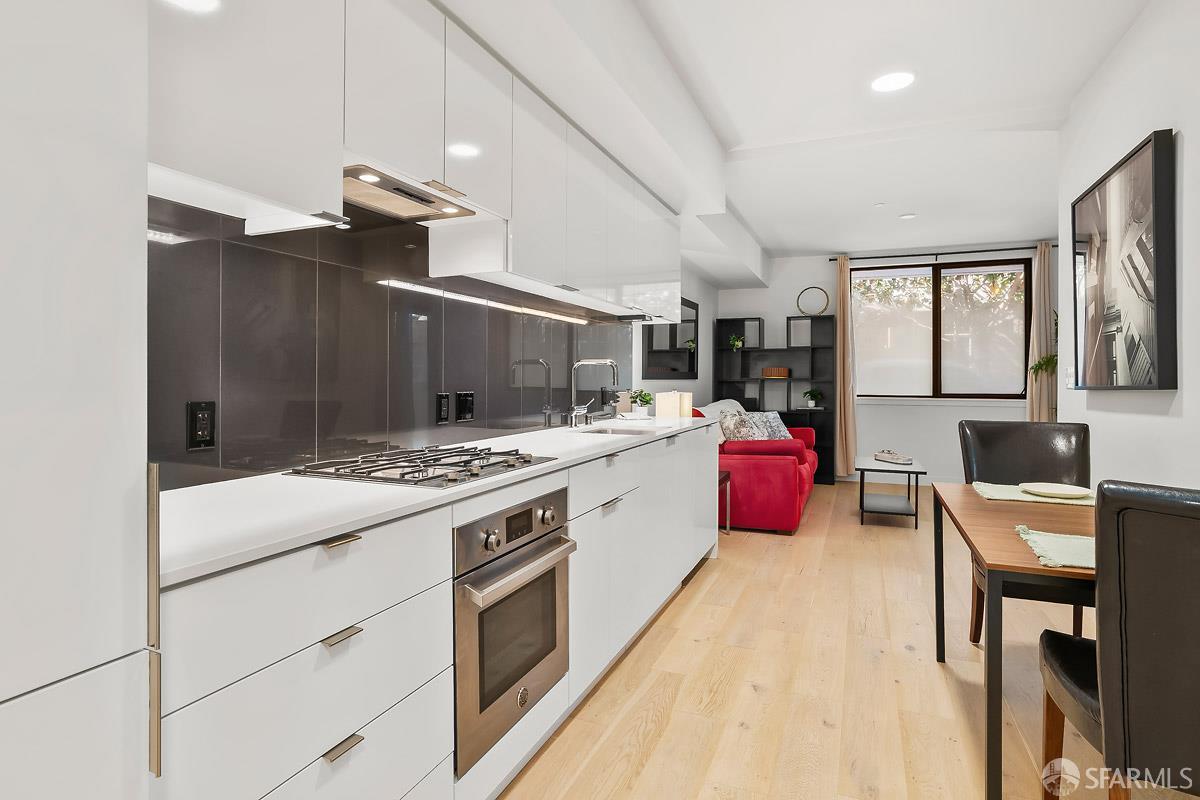 Experience modern urban luxury at 99 Rausch, one of SoMa's most coveted boutique residential communities. Unit #108 offers the perfect blend of high-end design and effortless lock-and-go convenience. As a ground-floor residence, this home provides seamless access ideal for pet owners or those who value skipping the elevator for morning coffee runs and daily commutes. Step into a thoughtfully designed 1-bedroom, 1-bathroom floor plan that maximizes every inch of square footage. The interior is defined by clean lines and premium finishes that reflect San Francisco's contemporary aesthetic. Outfitted with sleek Barbosa cabinetry, honed quartz countertops, and a high-performance appliance suite. Wide-plank oak flooring flows throughout the main living space with obscured windows offering ample privacy. Stay comfortable year-round with a Nest thermostat, central heating, and air conditioning. The added convenience of an in-unit washer/dryer along with a spacious walk-in closet add to the ease of living you'll find at 99 Rausch. Renowned for an amenity package that rivals much larger luxury towers, 99 Rausch provides a private sanctuary amidst the bustling city. An expansive rooftop deck features panoramic views from the Downtown skyline across to Twin Peaks, equipped with fire pits, two BBQ grills, an outdoor media area, and a refrigerator. A state-of-the-art fitness center flows effortlessly into a large outdoor space with quiet corners offering relaxation opportunities in the middle of the city. 7-day-a-week lobby attendant, secure bike storage with a repair station, a dedicated dog wash station and a professional conference room/business center complete this well-thought-out community. Boasting a Walk Score of 98 and a Transit Score of 100, this location puts the best of San Francisco at your doorstep.