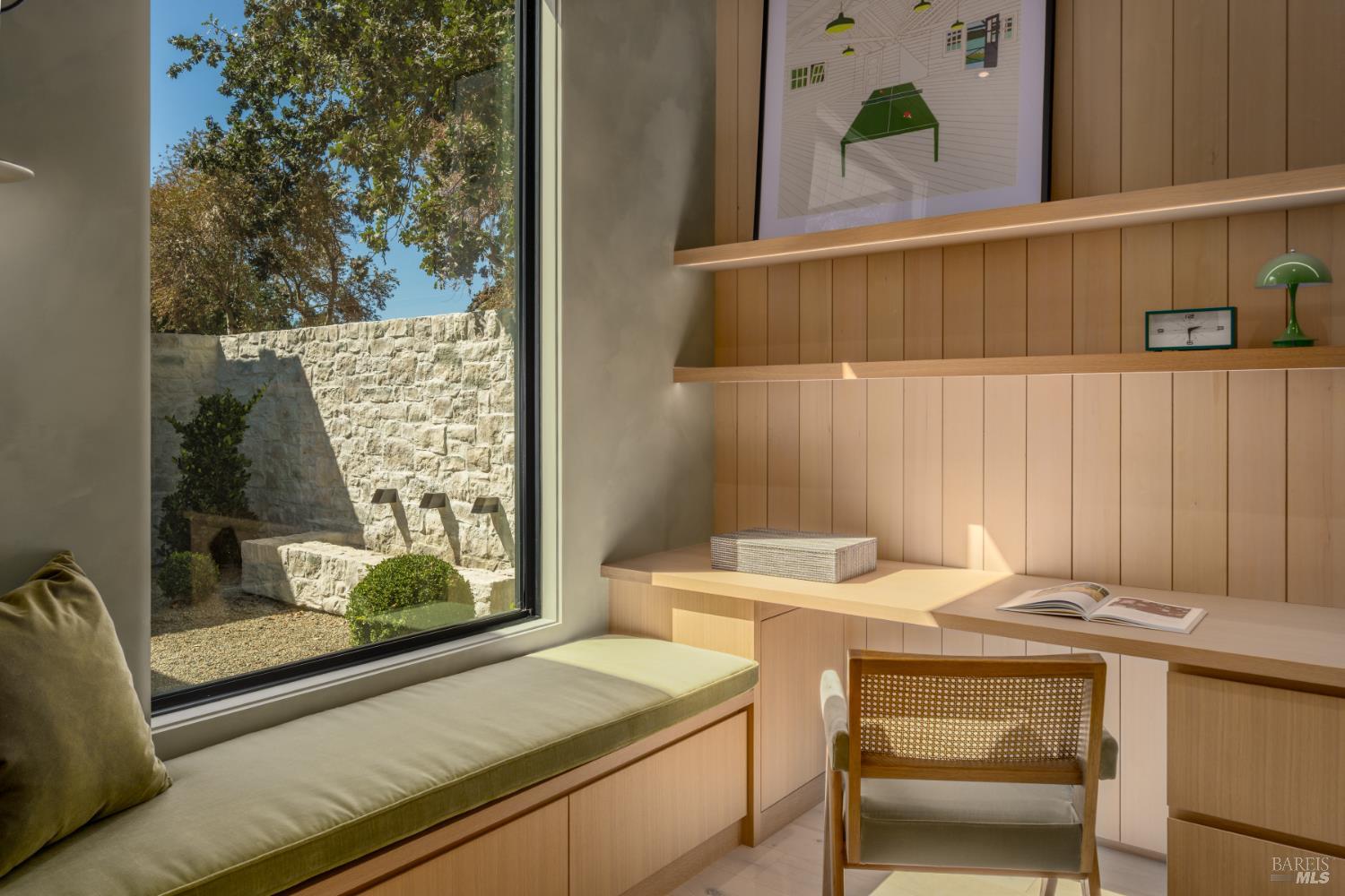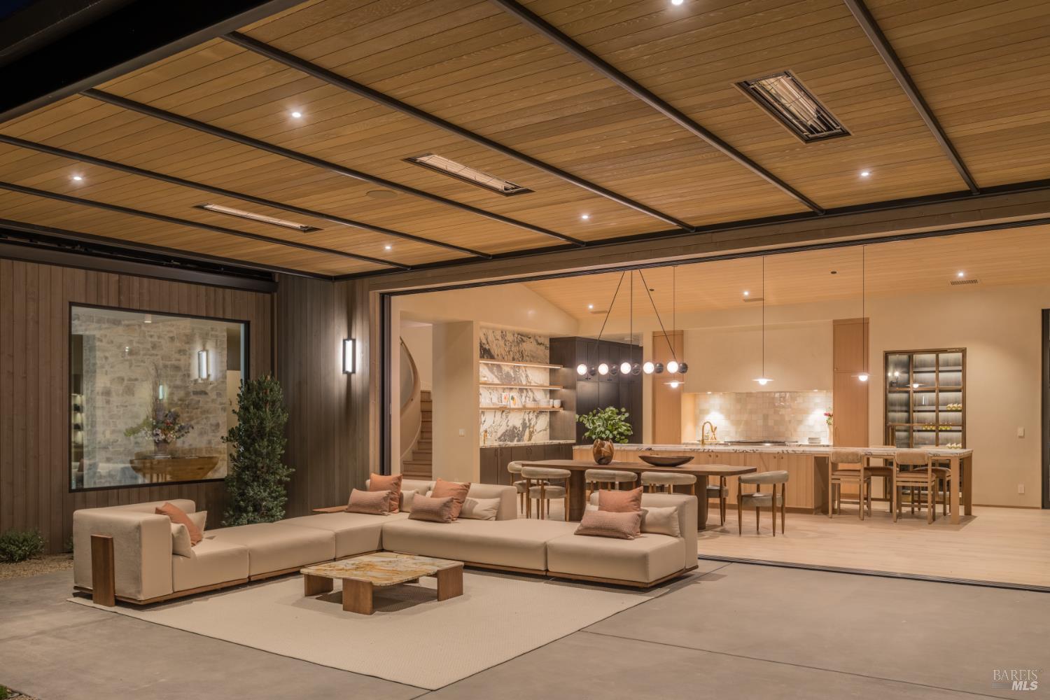 Tucked behind private gates on Sonoma's Eastside, Villa Verde is a newly completed modern compound by Ridge Design + Build. Spanning ~7,377 sq. ft. across the main home, guest house, and garage/gym pavilion, this 2 acre estate blends bold design with effortless wine country living. The 5BD/4.5BA main residence opens through a 41' Western slider to heated outdoor terraces, pool, and spa - ideal for sunset gatherings and year-round entertaining. Interiors showcase Atelier lime walls, Loire Valley stone, Breccia Capraia marble, and soaring cedar ceilings over white oak cabinetry. A chef's kitchen, bar, and climate-controlled wine room anchor open living spaces. The guest casita offers a full suite plus a flexible second room perfect for an office, media lounge, or additional bedroom when hosting. The 3-car garage includes a loft and gym opening directly to the pool. With solar, Lutron, and fire suppression, the grounds invite expansion with a barn, sport court, or tennis - an estate designed for both retreat and play.