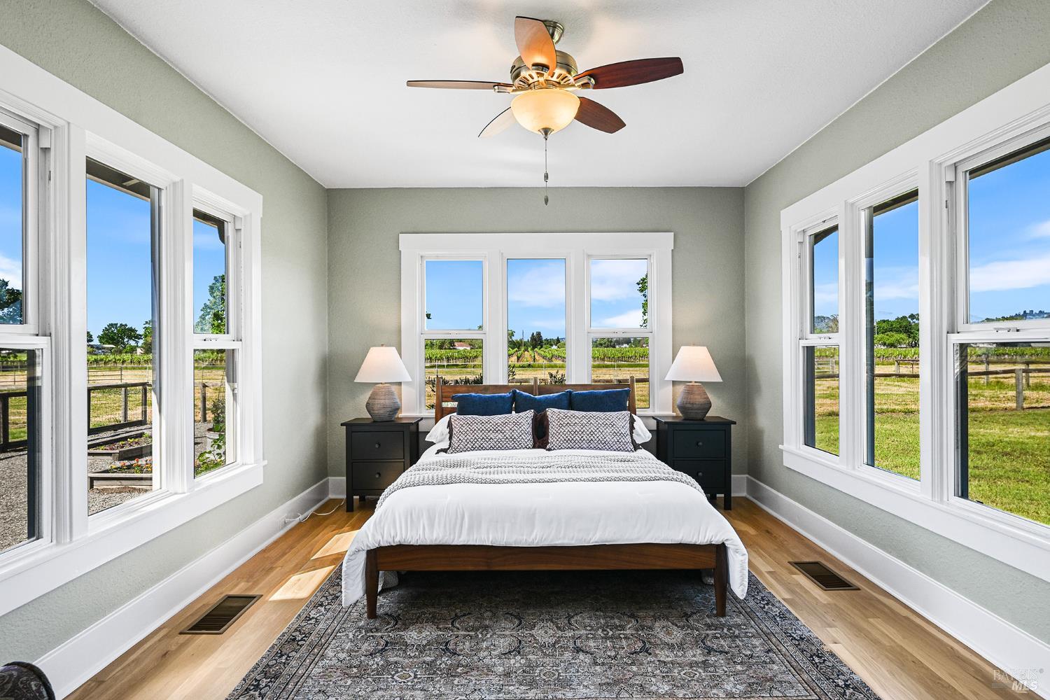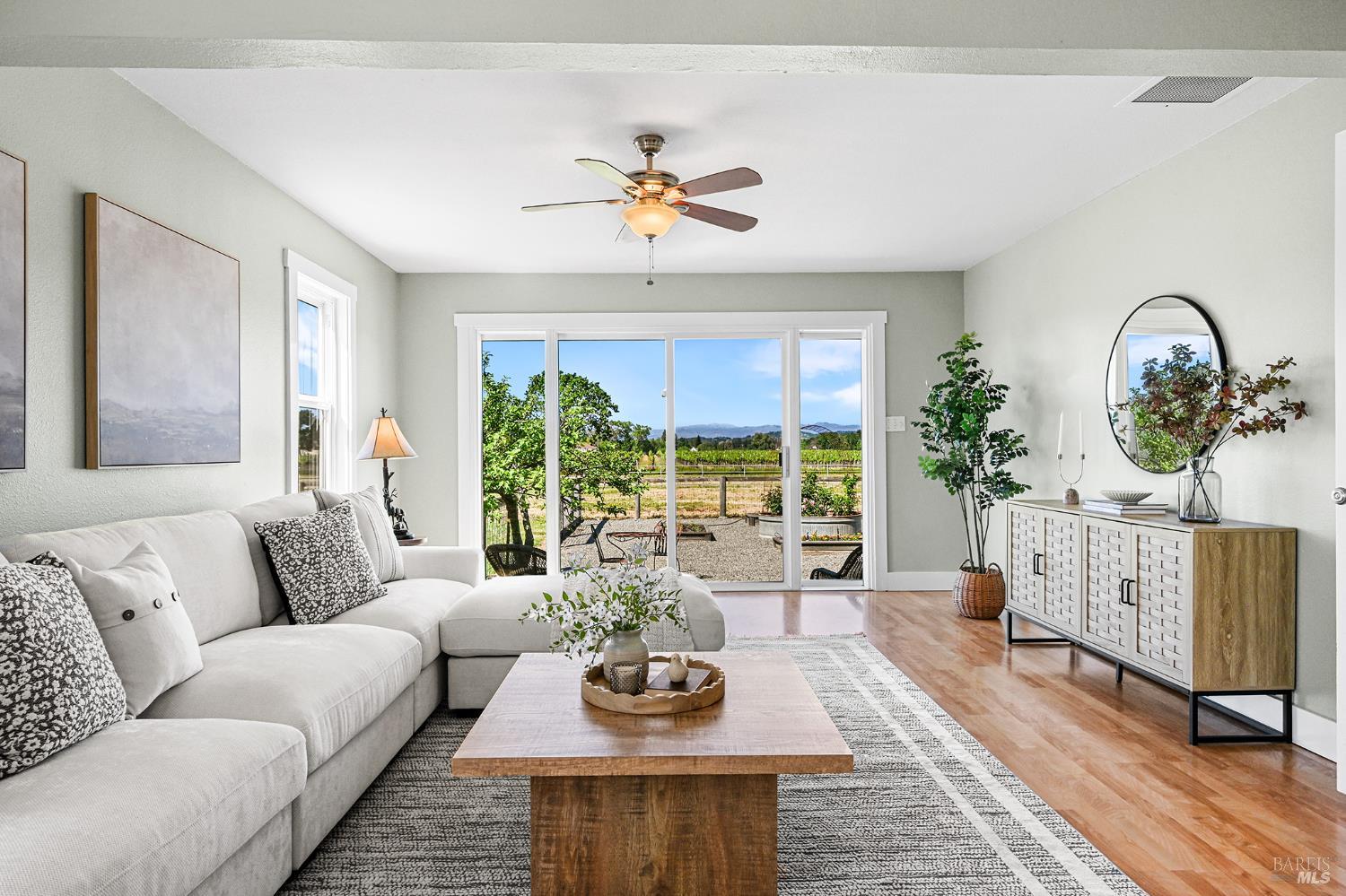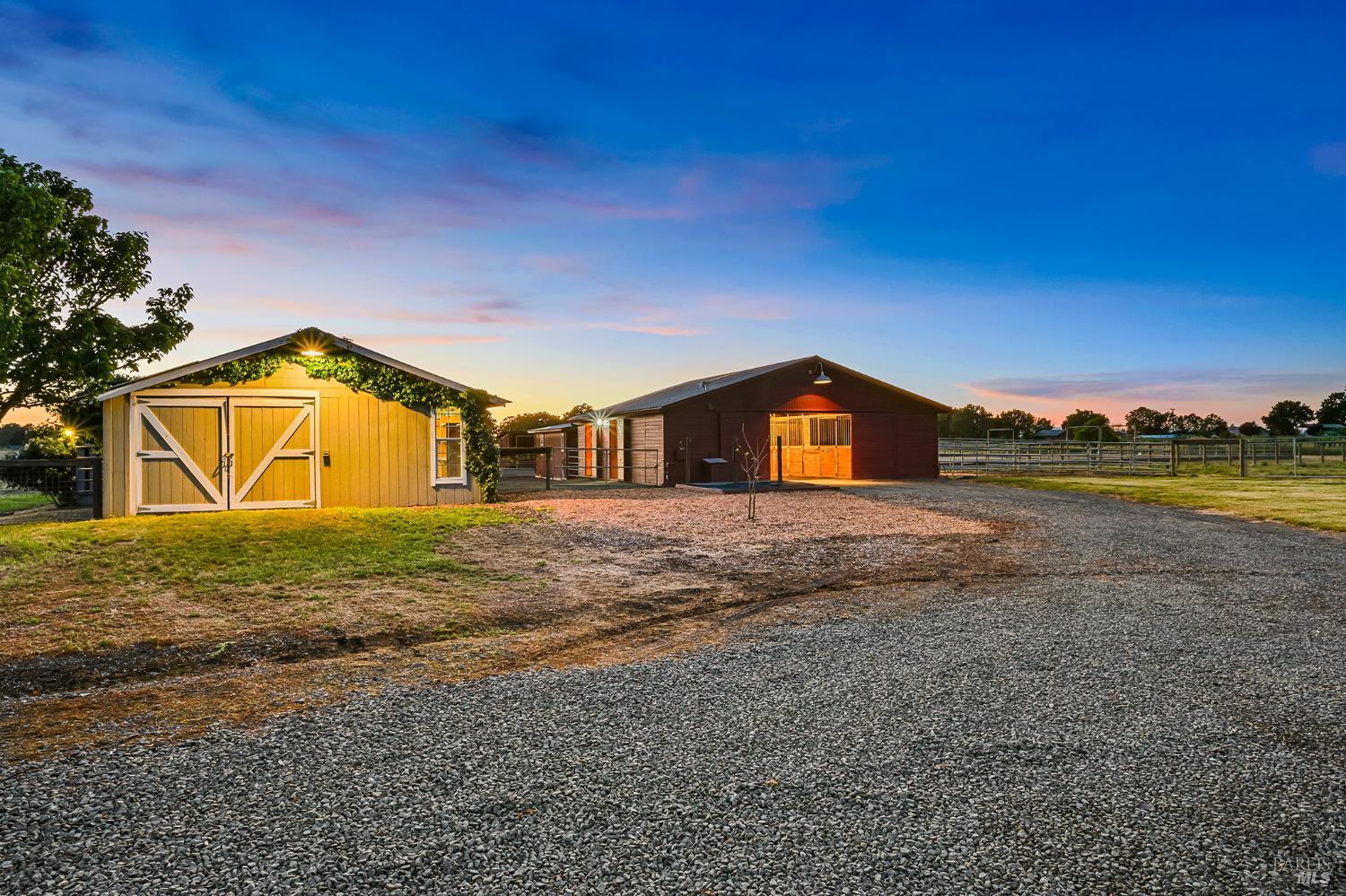 Welcome Equestrians! Don't let the address fool you, this property is situated well off Fulton Road. Charming and private turn-key 1924 Craftsman home on 5 secluded acres, with glorious sunsets and views as far as the eye can see. This unique horse property has it all: a 90x160 ft engineered all-weather arena, a 5-stall barn complete with 12x12 tackroom, center aisle, hot water and separate tractor and hay sheds. Numerous turn out areas and pastures for grazing. The 2000 +/- sq. ft home features newly refinished oak floors, 3 bedrooms, 2.5 bathrooms with vineyard and mountain views out every window. The open floor plan allows for a seamless flow between the living areas, creating a welcoming atmosphere. Additionally, there is a darling tiny house that is secluded to ensure privacy, and a Tuff Shed that is perfect for guests who need extra storage. Built in 2024, the detached well-lit 24x24 garage with 9ft walls is wired for a car charger, with the ability to connect water. The well is a hefty 15 gpm. The stunning natural surroundings and epic sunsets provide a serene and picturesque backdrop, making this property an incredible choice for those seeking a peaceful, private retreat.