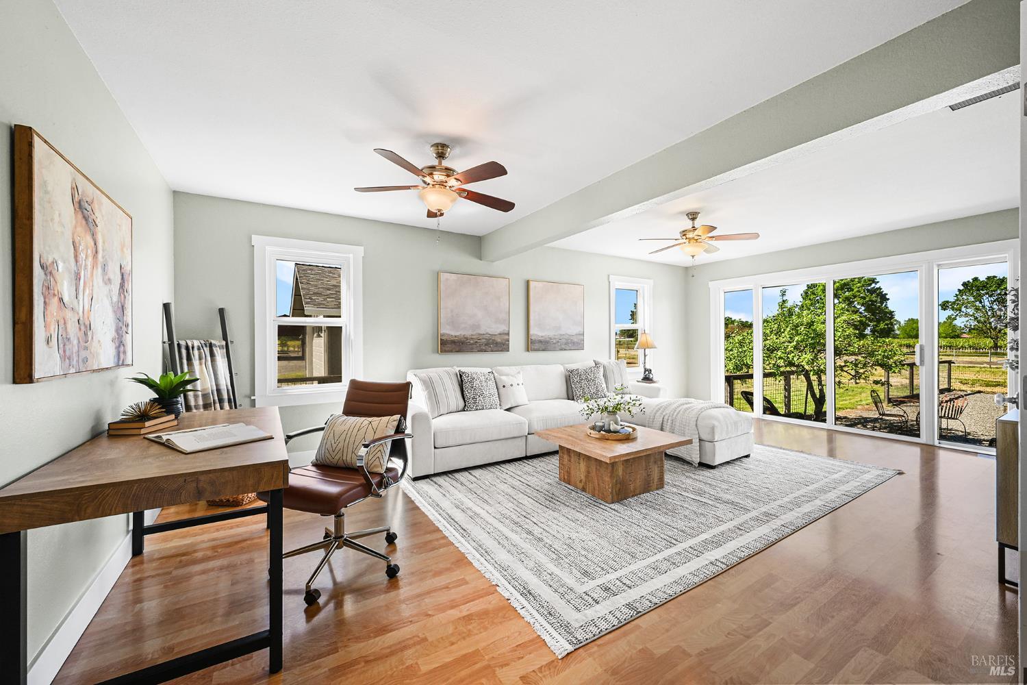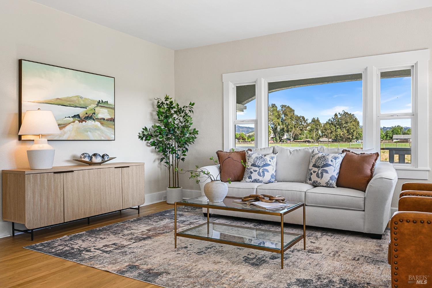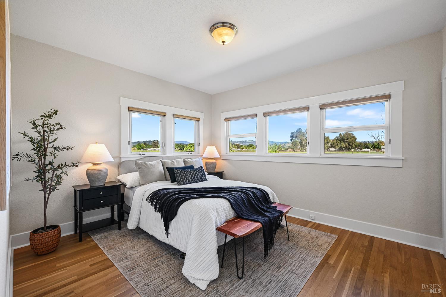 Welcome Equestrians! Don't let the address fool you, this property is situated well off Fulton Road. Charming and private turn-key 1924 Craftsman home on 5 secluded acres, with glorious sunsets and views as far as the eye can see. This unique horse property has it all: a 90x160 ft engineered all-weather arena, a 5-stall barn complete with 12x12 tackroom, center aisle, hot water and separate tractor and hay sheds. Numerous turn out areas and pastures for grazing. The 2000 +/- sq. ft home features newly refinished oak floors, 3 bedrooms, 2.5 bathrooms with vineyard and mountain views out every window. The open floor plan allows for a seamless flow between the living areas, creating a welcoming atmosphere. Additionally, there is a darling tiny house that is secluded to ensure privacy, and a Tuff Shed that is perfect for guests who need extra storage. Built in 2024, the detached well-lit 24x24 garage with 9ft walls is wired for a car charger, with the ability to connect water. The well is a hefty 15 gpm. The stunning natural surroundings and epic sunsets provide a serene and picturesque backdrop, making this property an incredible choice for those seeking a peaceful, private retreat.