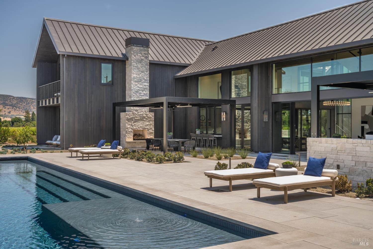 Just minutes from Yountville, this 6.7 acre Napa Valley compound is a masterclass in design, engineering, and quiet luxury. Conceived by acclaimed architect Holder Parlette and built by renowned building scientist Karim Allana, the 8,600 sq ft estate delivers 6 bedrooms, 7 full baths, and 3 half baths with a level of precision rarely seen in residential construction. Surrounded by 4 acres of professionally farmed vineyards and framed by sweeping 360-degree views of the Mayacamas and Vaca ranges, the setting is both dramatic and serene. A separate 2-bedroom, 2.5-bath guest house complements the main residence, while resort-caliber amenitiesincluding a 60x20 pool with spa and an outdoor kitchen and dining pavilioncreate a seamless indoor-outdoor lifestyle. Every detail is intentional. Designed with off-grid capability and commercial-grade systems, the home pairs advanced performance with elevated design. Two luxurious primary suites, European Reynaers sliding door systems, artisan finishes, and a 12.5kW solar array are integrated into a fully smart, future-forward residence. Rare, refined, and exceptionally engineered this is Napa Valley at its most sophisticated, where sustainability meets undeniable luxury.
