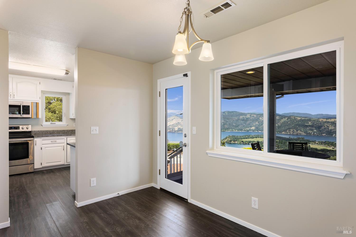 Enjoy breathtaking views from this beautifully updated single-level 3-bedroom, 2-bath home in Riviera Heights. Thoughtful upgrades include Wi-Fi-controlled lighting, a 16kW Generac whole-house generator, automatic transfer switch, and brand-new dual-pane windows. Inside, the home offers a seamless layout with a sun-filled sunroom, sleek stainless steel appliances, elegant granite countertops, two guest bedrooms, a home office, and a generously sized primary suite complete with a soaking tub and separate walk-in shower. Set on a spacious lot in one of the community's premier locations, you'll take in unobstructed Clear Lake views from both the picture windows and the expansive wraparound deck--ideal for relaxing evenings with a glass of local wine. The property also features a large fenced yard, garden beds, and a storage shed ready for your outdoor projects. The attached garage includes a workshop and ample storage space. Residents enjoy access to HOA amenities such as a pool, clubhouse, picnic area, recreation room, dock, BBQ area, and boat ramp. As a Firewise Community, Riviera Heights also hosts biannual chipper days to help maintain a safe and beautiful environment.