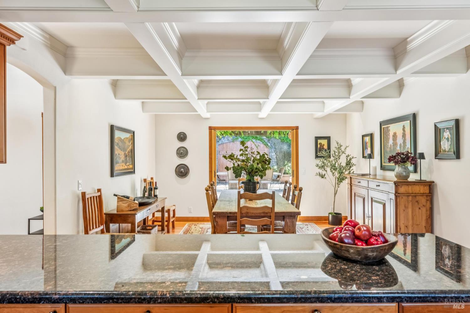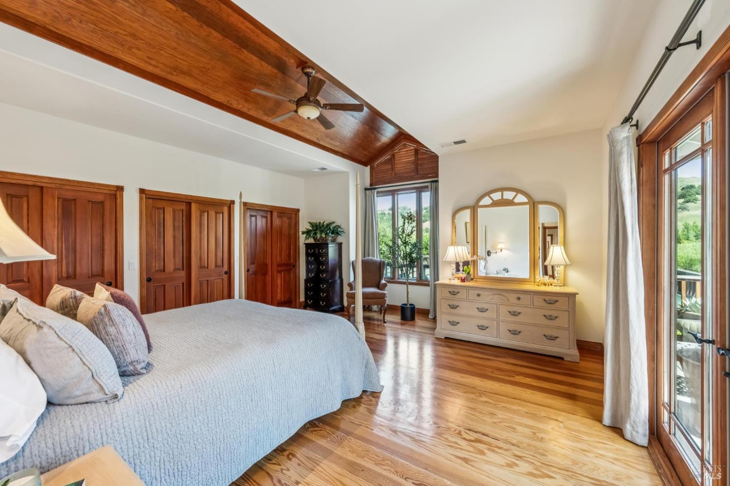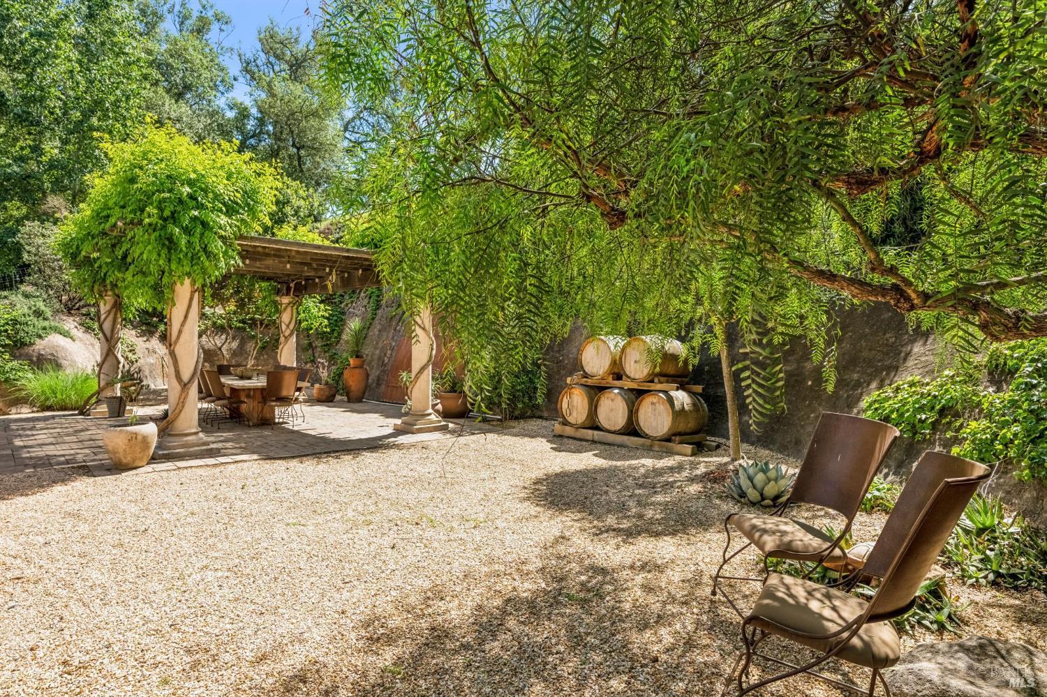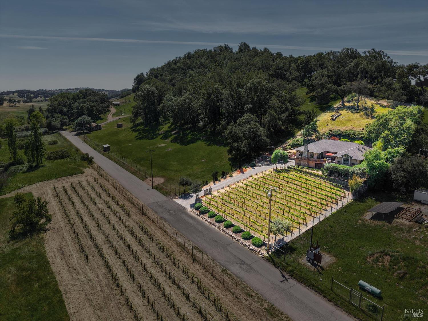 Perfectly located on coveted Lovall Valley, this property is situated on Sonoma's Eastside and showcases exceptional views of nearby vineyards and surrounding hillsides. A gated entry leads past stone walls and native landscaping to a hobby vineyard with approximately 300 mature Petit Verdot vines. Upon entering the residence, you are greeted by a spacious living room with cathedral ceilings and expansive windows designed to capture the dramatic landscape and natural light throughout the day. Gleaming fir floors and a gas fireplace create a warm, inviting atmosphere. The kitchen is equipped with a Wolf range, Sub-Zero refrigerator, generous storage, and connects seamlessly to the dining area, which features coffered ceilings and French doors that open to the grounds. The outdoor areas are thoughtfully designed and include a pergola draped in trumpet vines, creating a natural extension of the living space and a perfect setting for entertaining friends and family. The single-level layout offers three bedrooms and two and one-half bathrooms, all with consistent wood flooring. The expansive primary bedroom features high ceilings and French doors that lead to a nearby deck. Enjoy all that Sonoma Valley has to offer in this inviting Wine Country retreat, centered around views, indoor-outdoor living, and a strong connection to Sonoma's natural beauty.