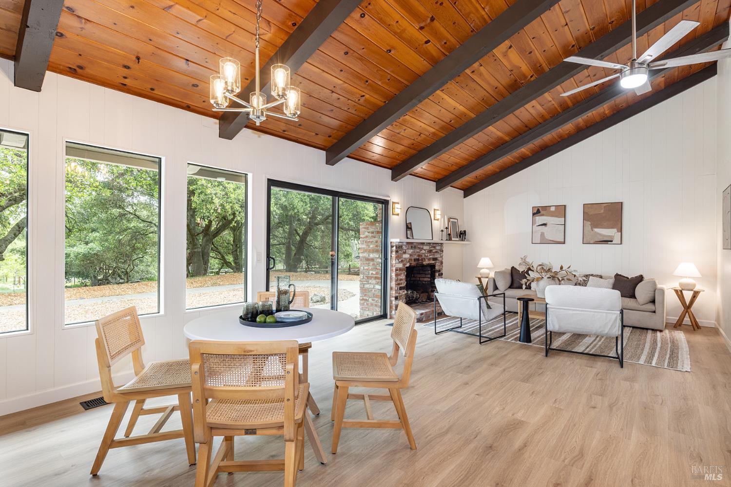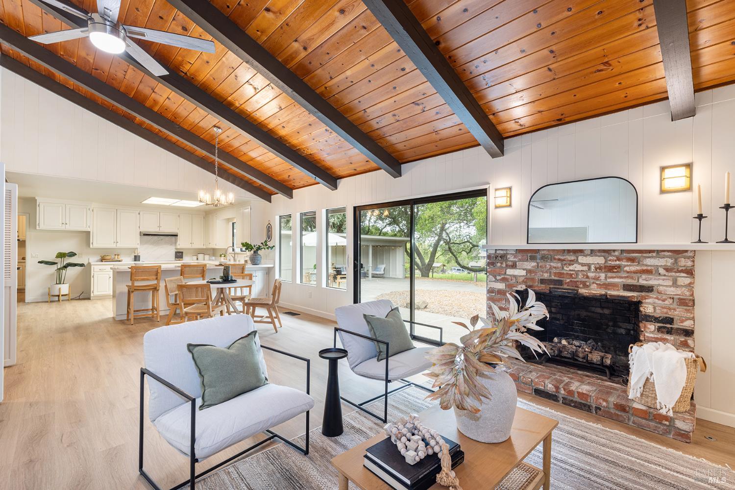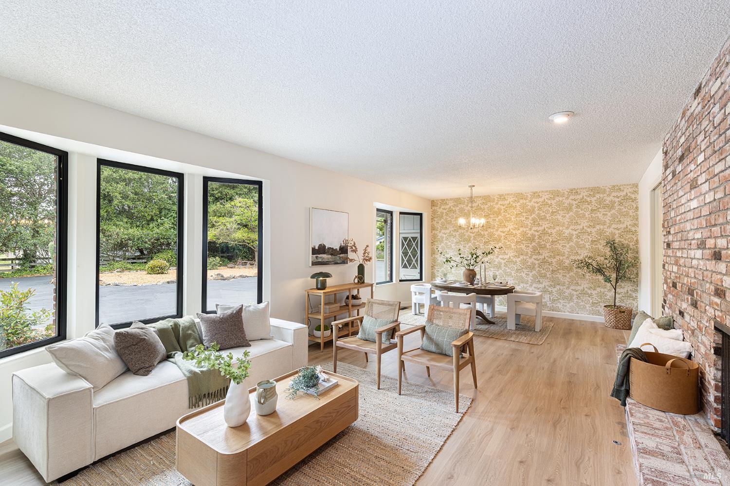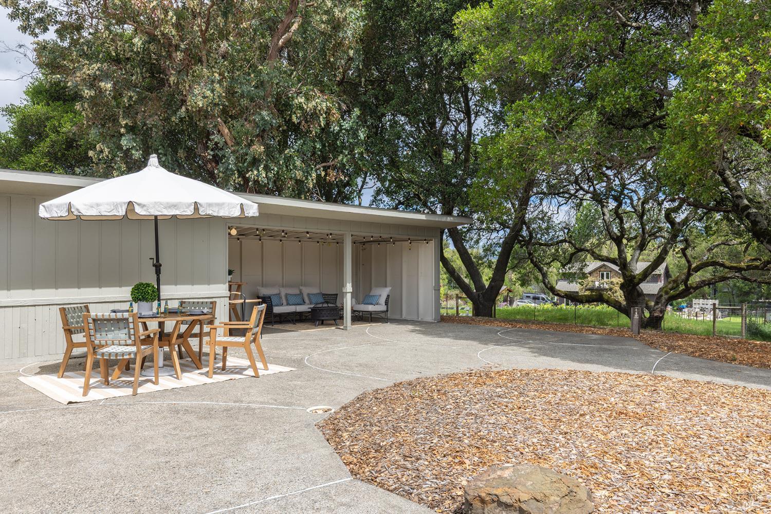 520 Fair Avenue - a truly rare West Petaluma country property, offered for the first time in over half a century. Privately sited on approximately 1.25 acres, on a secluded flag lot, this hidden retreat is set well back from the street, where a long drive opens to an impressive circular motor court and an expansive single-level residence. Encompassing over 2,300 sq. ft., the home offers 3 spacious bedrooms and 3 full bathrooms, with grand-scale living areas and a seamless, flowing floorplan designed for both refined entertaining and everyday comfort. Recently refreshed with wide-plank luxury vinyl flooring, fresh interior and exterior paint, and a brand-new heating and air conditioning system with updated ducting, the home blends timeless character with modern ease. At the heart of the home, the expansive kitchen is appointed with new quartz countertops, updated appliances, and a distinctive built-in brick BBQ, opening directly to a large family room with vaulted ceilings, a built-in wet bar, and sliding doors that lead to the backyard patio creating a natural connection to the outdoors and effortless indoor-outdoor living. Several bedrooms feature custom built-in cabinetry, adding both charm and functionality. Just beyond the kitchen, a generously sized mudroom and laundry space offers exceptional utility, with direct access to the oversized 3 car garage, a door to the backyard, and a conveniently located full bathroom. The grounds are nothing short of exceptional - over an acre of park-like privacy framed by majestic heritage oaks. A generous backyard patio and a charming cabana offer both covered and enclosed spaces for year-round enjoyment. The setting evokes a peaceful, country estate while remaining just minutes from the vibrancy of downtown Petaluma. A rare blend of scale, seclusion, and modern comfort in one of West Petaluma's most coveted settings.