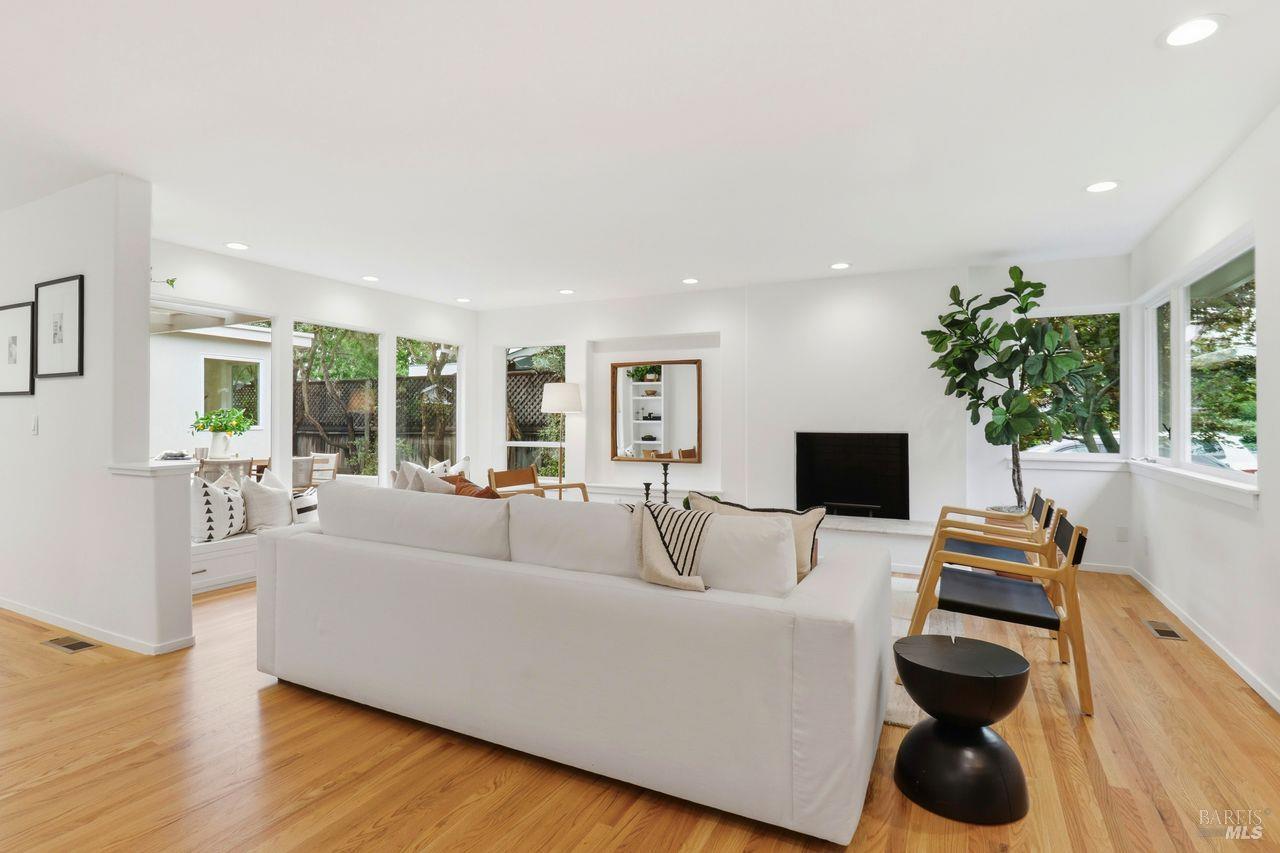 Welcome to 40 Corte Cayuga. Located in the sought after flats of Greenbrae on one of the most desirable streets. This warm and inviting single level home is flooded with natural light through-out and was thoughtfully designed for seamless indoor and outdoor living. The home features a private primary suite, three bedrooms, one full bath plus guest bath. Spacious light filled open living/dining room features beautiful hardwood floors, a stunning stone fireplace, a cozy window seat with built-ins and a wall of windows to enjoy looking at the charming garden and courtyard. Open Chefs kitchen has a generous center island, abundance of cabinetry, recessed lighting, skylight and opens to the spacious and inviting family room with sliding door leading to the expansive deck, garden and lawn area - ideal for hosting gatherings with family and friends. This home was designed with a functional floor plan for todays lifestyle. Enjoy the close proximity to Bon Air Shopping Center, The Mart, parks, bike path, Larkspur Ferry, and super easy access to 101. Located in the outstanding Kentfield School District. This home and location offers a wonderful Marin lifestyle!