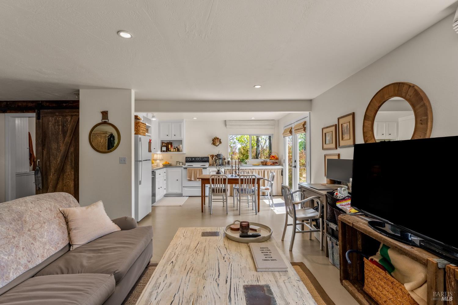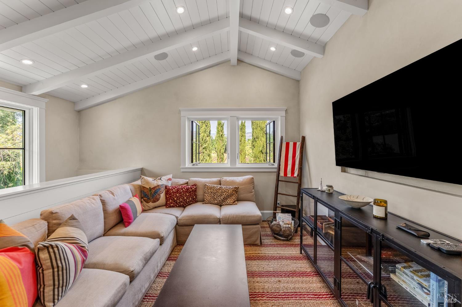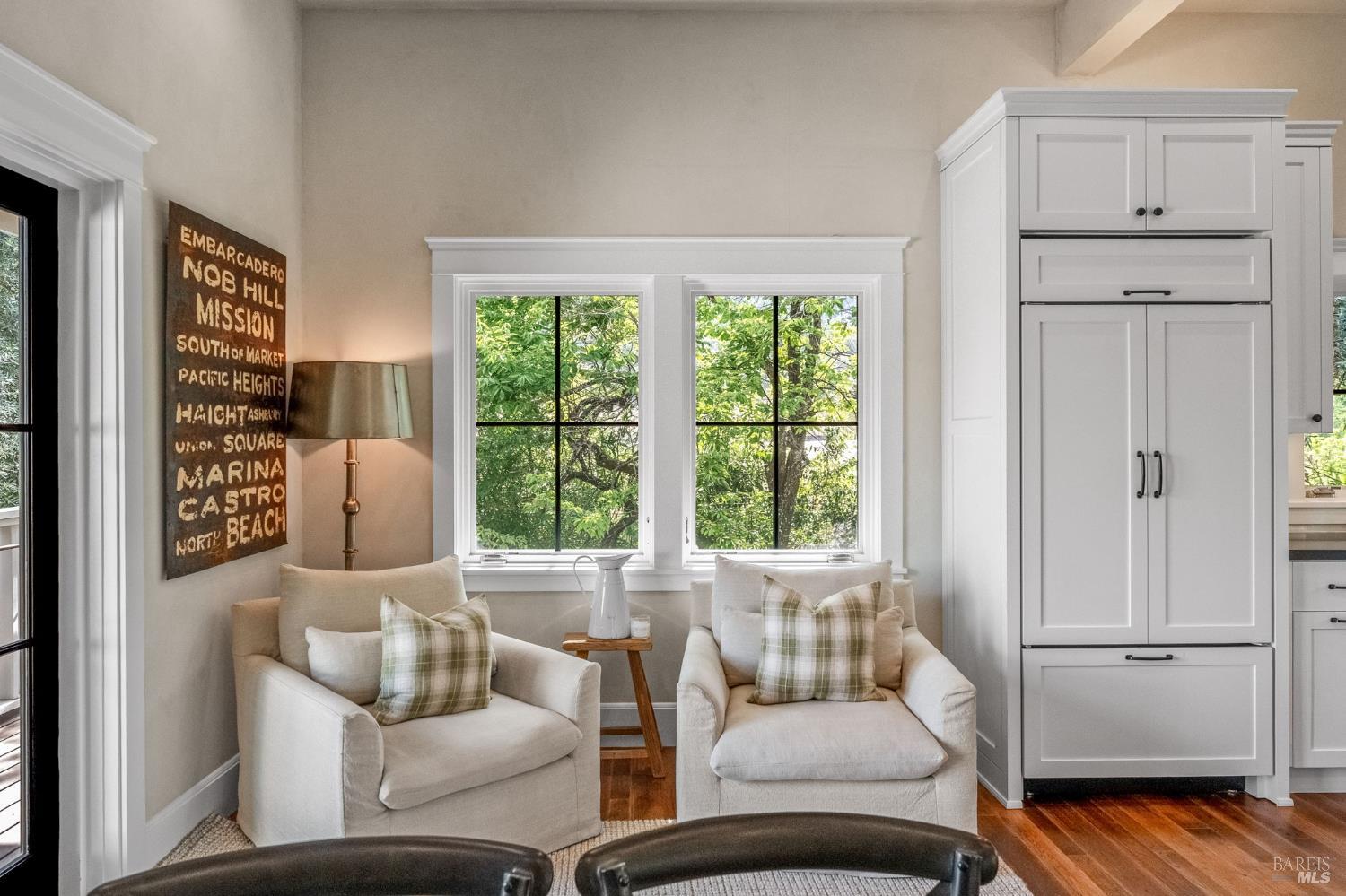 Set among vineyards just north of St. Helena, 1181 York Lane offers a private, four structure compound (main house, studio, cottage and office/gym) with a flexible layout and a relaxed valley-floor setting. The two-story main residence is thoughtfully arranged with two bedrooms on the lower level, while the upper floor is dedicated to daily livingan open kitchen, dining, and living room, along with the primary suite plus powder room. The kitchen features marble countertops, Sub-Zero refrigerator, and Viking gas range with hood. Interiors are oriented toward the property's landscaped grounds, creating a calm, private atmosphere. Detached guest and studio spaces capture vineyard and hillside views, providing separation for visitors, extended living, or creative use. A converted garage, currently used as an office, offers additional flexibility as a workspace, studio, or gym. Outdoor areas include deck spaces, mature landscaping, and a pool set naturally within the grounds. Located just off Highway 29, the property offers convenient access to St. Helena while maintaining a more private, country setting.