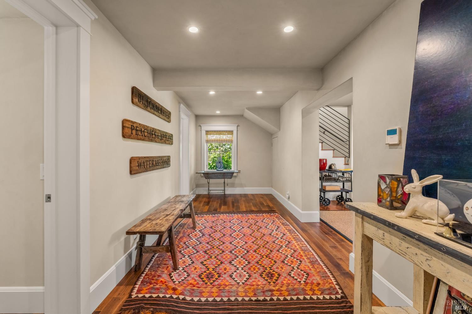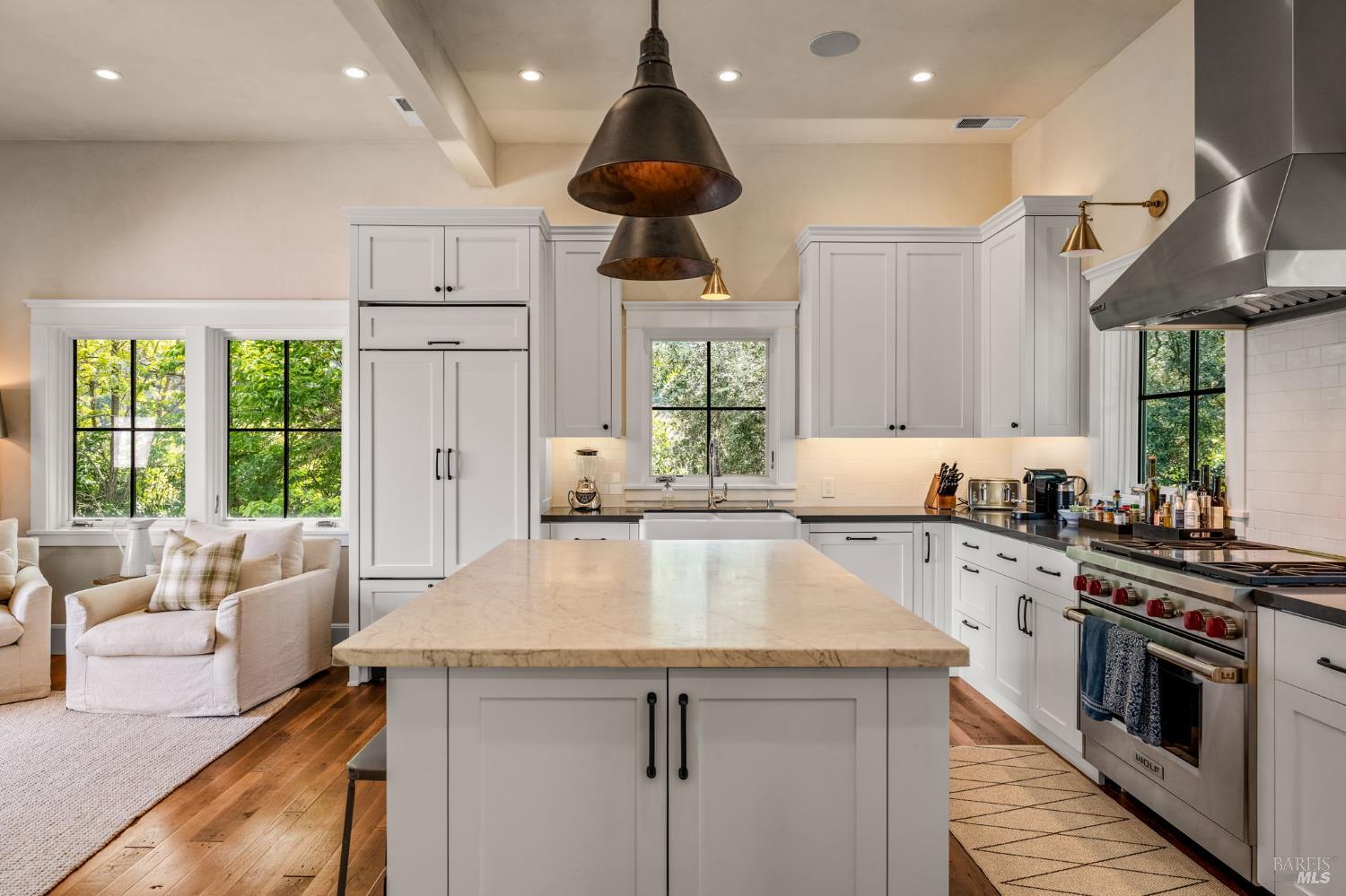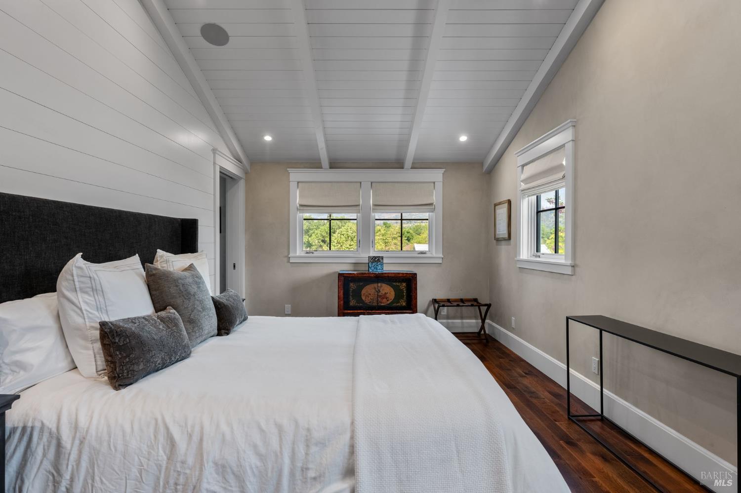 Set among vineyards just north of St. Helena, 1181 York Lane offers a private, four structure compound (main house, studio, cottage and office/gym) with a flexible layout and a relaxed valley-floor setting. The two-story main residence is thoughtfully arranged with two bedrooms on the lower level, while the upper floor is dedicated to daily livingan open kitchen, dining, and living room, along with the primary suite plus powder room. The kitchen features marble countertops, Sub-Zero refrigerator, and Viking gas range with hood. Interiors are oriented toward the property's landscaped grounds, creating a calm, private atmosphere. Detached guest and studio spaces capture vineyard and hillside views, providing separation for visitors, extended living, or creative use. A converted garage, currently used as an office, offers additional flexibility as a workspace, studio, or gym. Outdoor areas include deck spaces, mature landscaping, and a pool set naturally within the grounds. Located just off Highway 29, the property offers convenient access to St. Helena while maintaining a more private, country setting.