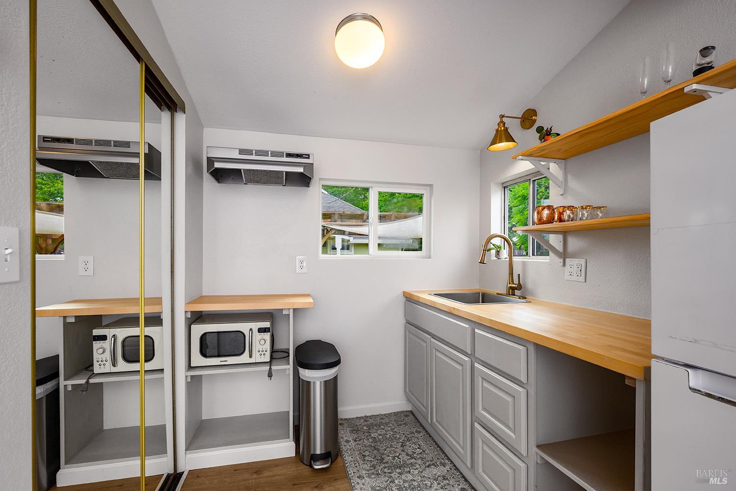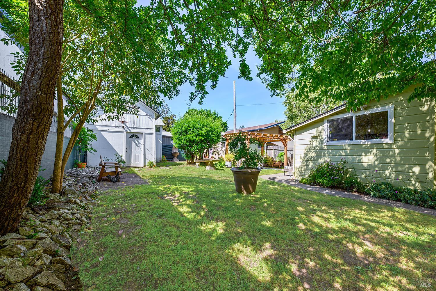 Downtown and Darling! Multi Unit property combines a dreamy vintage 2 bedrooms plus office with a detached and completely separate studio ADU, individually metered. Both are in pristine and meticulously cared for condition. Artful light fixtures dazzle the creative interior bright with fresh interior paint, a newly remodeled kitchen, refurbished bath, new laundry appliances and reconstructed front porch. The ADU is nearly all new and the back yard pergola setting is lovely for morning coffee moments and outdoor dining, private and surrounded by the gardens color. And there's room still to establish more gardens. Useful outbuilding. New redwood fence. Fully fenced for animals. Just across the street is the treasured Joe Rodota trail, miles of flat and scenic paths for bikers, runners and walkers alike. Easy proximity to Sunday's Farmers Market, Whole Foods, shopping, The Barlow, coffee houses. Sustainable living offers big impact on an efficient downtown footprint.