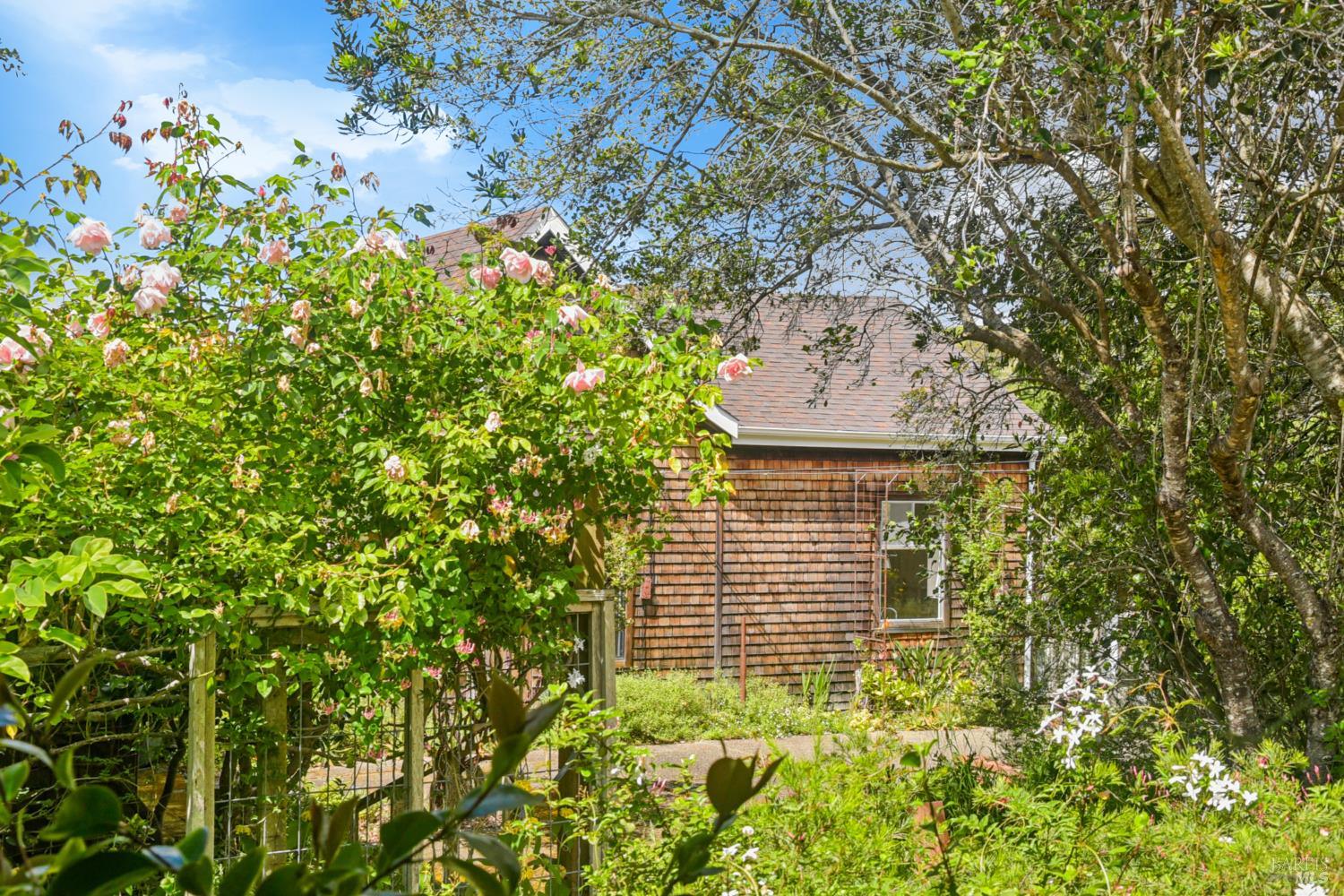 Set along the southern edge of the Olema Valley in Bolinas, within the historic hamlet of Dogtown once known as Woodville, this four-acre generational property is being offered for the first time in over six decades. Dating to the early 1900s, the farmhouse reflects the character of early West Marin ranch architecture with high ceilings, gabled roofs, porches, and a history of families connected to the land. Sunlit and bordered by a seasonal creek, the property is surrounded by the protected parklands of Point Reyes National Seashore and the Golden Gate National Recreation Area, with fantastic nearby access to the horse, hike and biking trail systems such as the Olema and McCurdy trails. Zoned Agricultural Residential and spanning approximately four acres, the property offers pastoral meadows, mature fruit trees, a vintage ranch windmill, and a collection of outbuildings that speak to its agricultural history. A 7,000 sq ft pole barn horse arena, once used for roping and sheltering horses, remains a defining feature of the landscape. The front porch leads into an inviting kitchen with a wood-burning fireplace, soaring ceilings, hardwood floors, tucked-away cabinetry, and a large window framing Inverness Ridge. A hallway extends from the kitchen and connects two bedrooms, a full bathroom, and a family room to an additional wing with another bedroom, full bathroom, laundry area, and a larger room lending to other possibilities.A separate structure on the property provides additional living space with one bedroom, one full bathroom, loft space, a wood-burning stove, and an open kitchen and living area. A large sliding glass door opens to a deck overlooking the surrounding pasture and beautiful landscape. Additional structures include a two-car carport, tool shed, workshop, paddock, a vintage windmill, and an abundant well with two water tanks; a notable advantage over many Bolinas properties that rely on metered water with use restrictions. Throughout the grounds, a mature canopy of oak, cedar, redwood, willow, eucalyptus, and fruit trees shapes the setting. Light moves across the land from morning through evening as deer, migratory birds, and Anna's hummingbirds pass through. Beyond the house, through a stand of willows, lies the Willow Kingdom, a place where generations explored. Rich in history, beauty, and possibility, this land carries the layered history of the Coast Miwok, early ranchers, and the generations who have called Dogtown home.