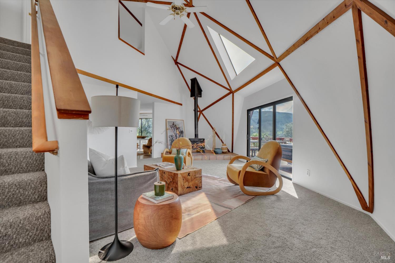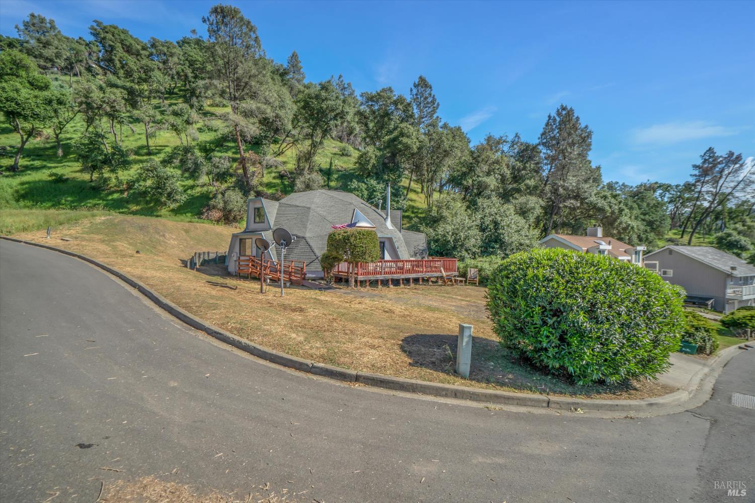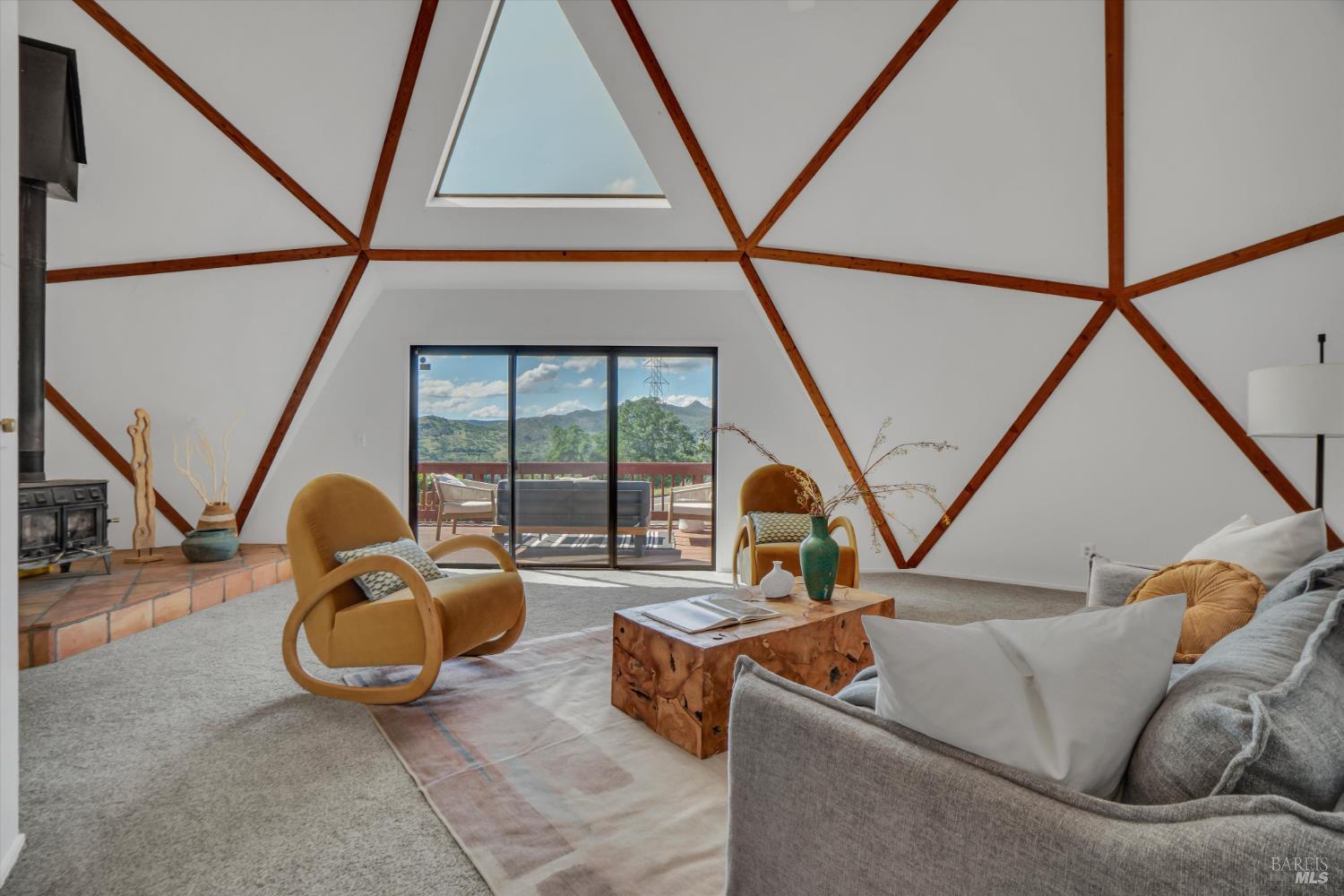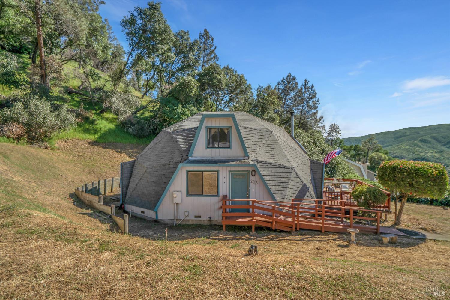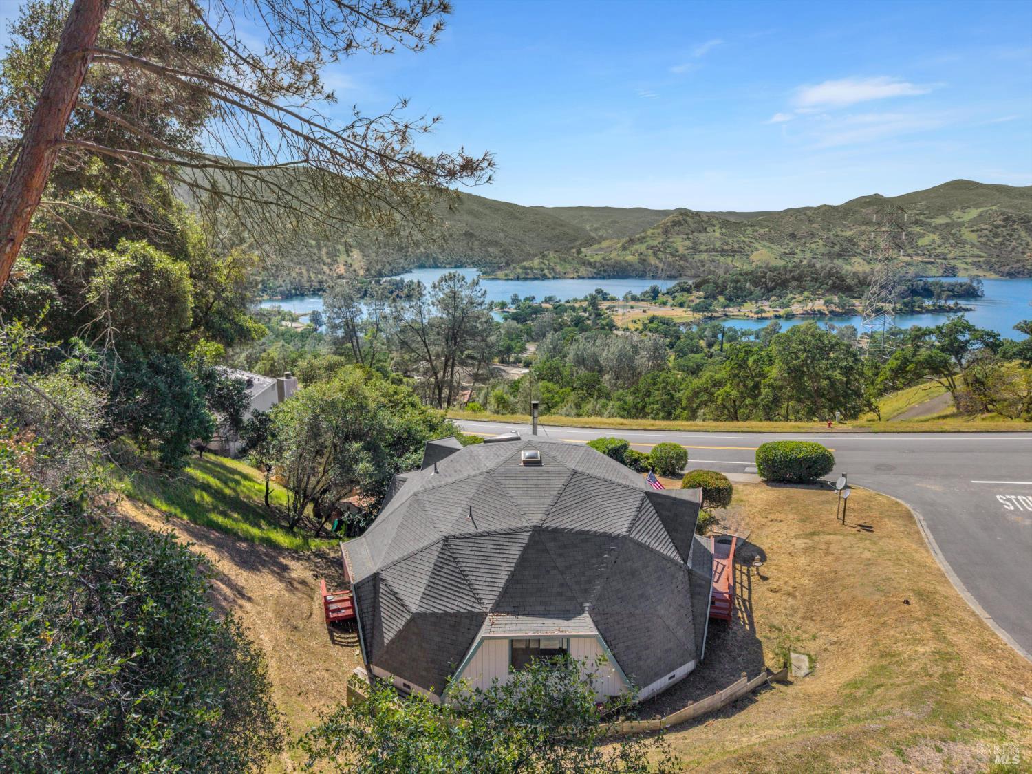 Rare Lake Berryessa geodesic dome with breathtaking water viewstruly one of a kind. This 4BD/2BA, ~2,500 sq ft home on over 1/3 acre is filled with natural light, soaring lines, and a flexible open layout with intimate spaces throughout. Recently remodeled with a cozy wood-burning stove and expansive view windows. Upstairs primary suite offers a private retreat with workout and meditation areas. Large deck for sunset views. Less than 5 minutes to a public boat launch. Ideal as a full-time home, weekend getaway, or vacation rental opportunity.