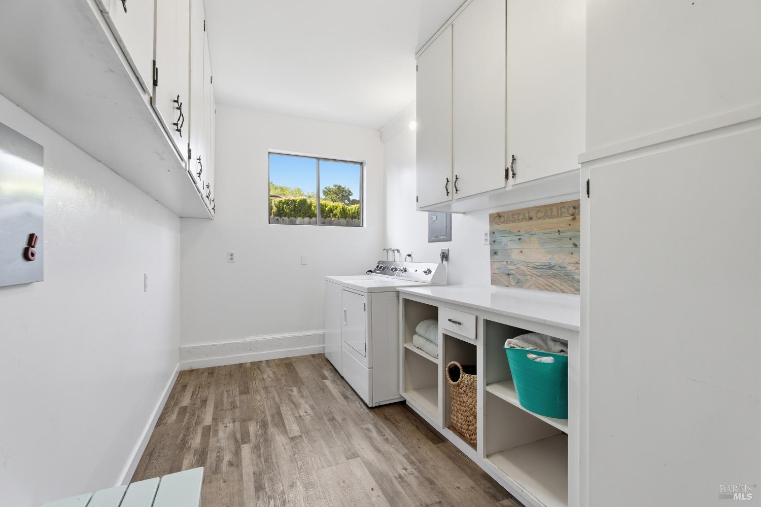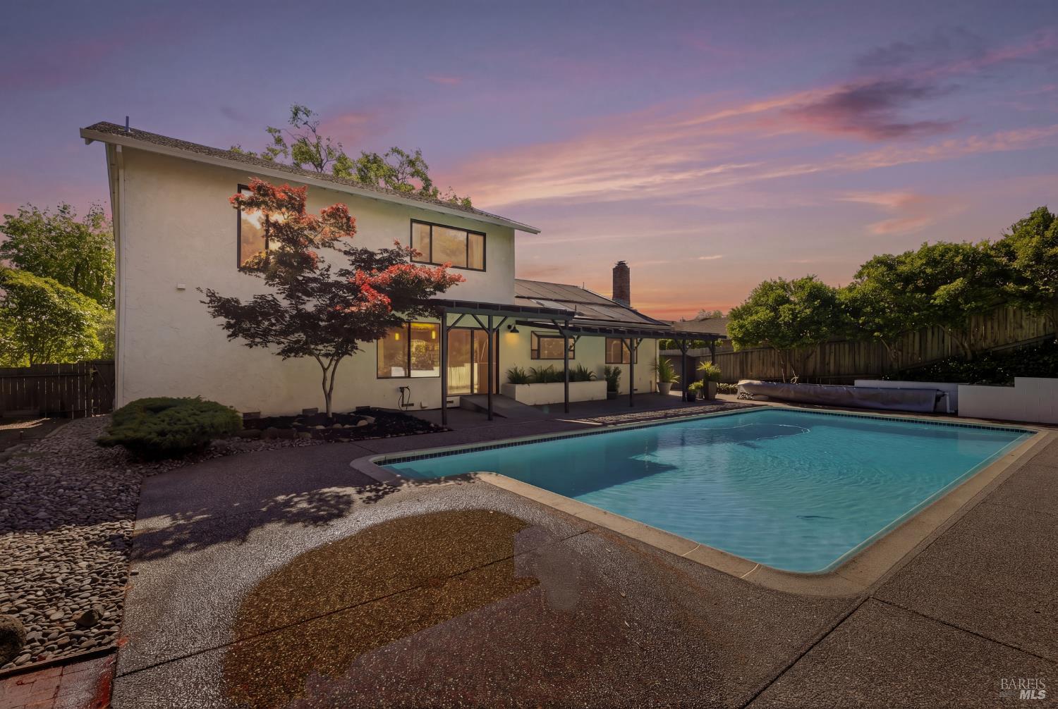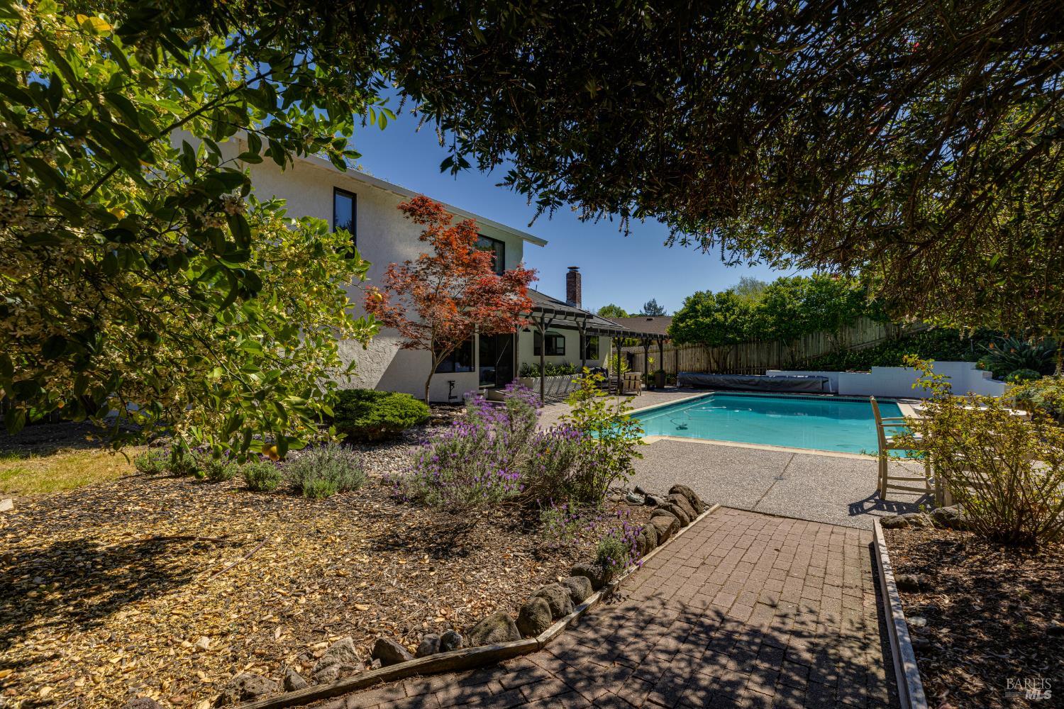 Tucked into the private, charming, beloved Cherry Valley neighborhood of West Petaluma, this home offers the kind of warmth and space that makes everyday living feel intentional and special. With welcoming and captivating curb appeal and an expansive 14,000 square foot lot, it's easy to picture life unfolding at 727 Cindy Lane. This four bedroom, two bathroom home offers a flexible and inviting layout designed for connection, gathering, and entertaining. On the main level which features stunning hardwood floors, a light-filled living room flows seamlessly into the dining area and beautifully sophisticated kitchen, with an additional family room that creates the perfect space to relax and be together. This level is completed by a nicely-sized bedroom with dual closets and an ensuite bathroom. Upstairs, you'll find three spacious guest bedrooms each with lots of storage, lovely natural light, and gorgeous views along with an additional updated full bathroom. Set on a generous, secluded and park-like lot, the outdoor space offers something for everyone. Featuring a pool and plenty of room to garden, play, spend time with family + friends, or simply unwind, this rarely available almost third of an acre property is one you won't want to miss. Out front, a sweet + endearing porch sets the tone, perfect for slow mornings with coffee or delightful evenings with a glass of wine, all while taking in the peaceful surroundings of this highly coveted neighborhood. Located just around the corner from the very desirable Mary Collins at Cherry Valley School, and in close proximity to the vibrant + fun downtown, parks, and local favorites, 727 Cindy Lane offers both convenience and that sweet sense of community that makes West Petaluma the wonderfully unique place that it is. Additional features include a separate laundry room with great storage, charming built-ins in the dining area, and fabulous mature landscaping.